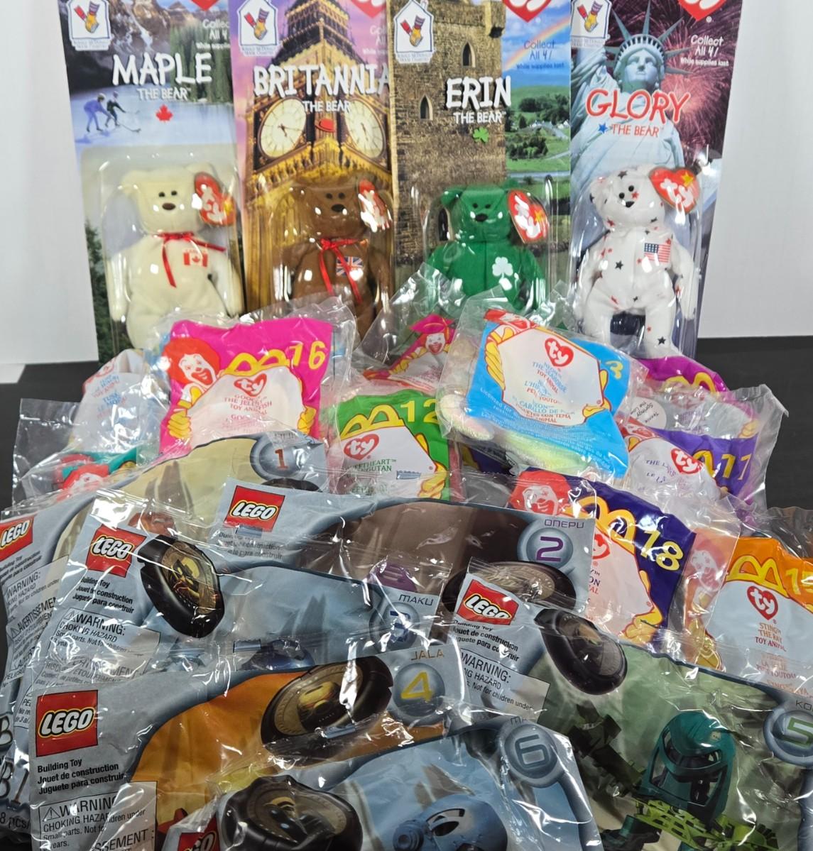 LOT 125: All in Unopened Original Packing; Full Set of McDonald's Charities TY BEANIES, Complete Sets of TY BEANIES , and LEGO BIONICLE Happy Meal Toys