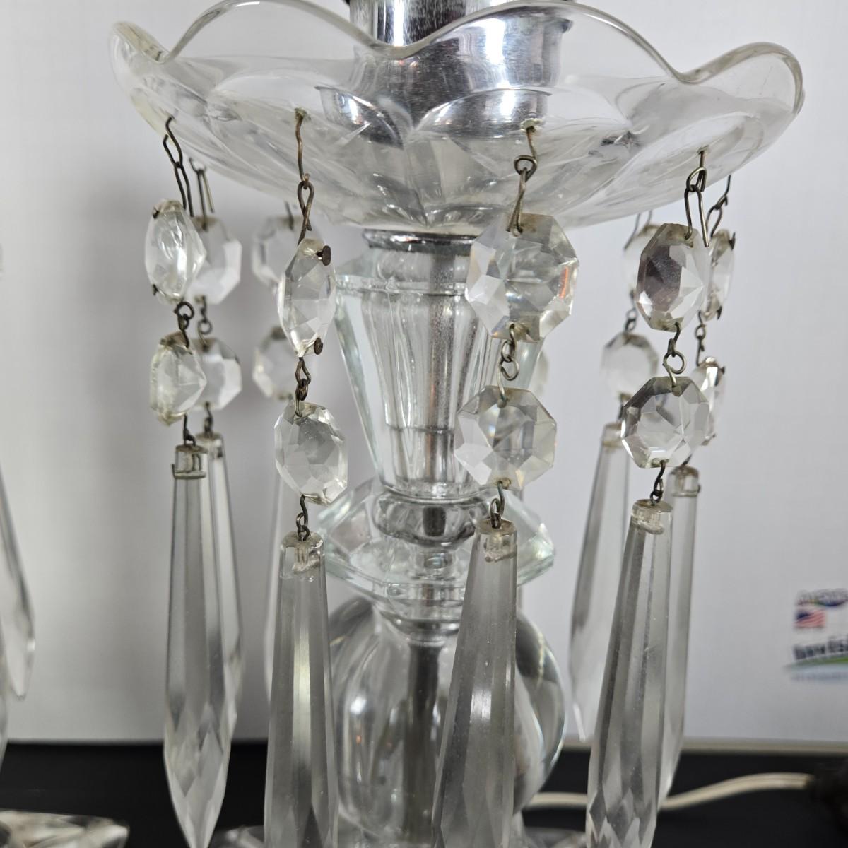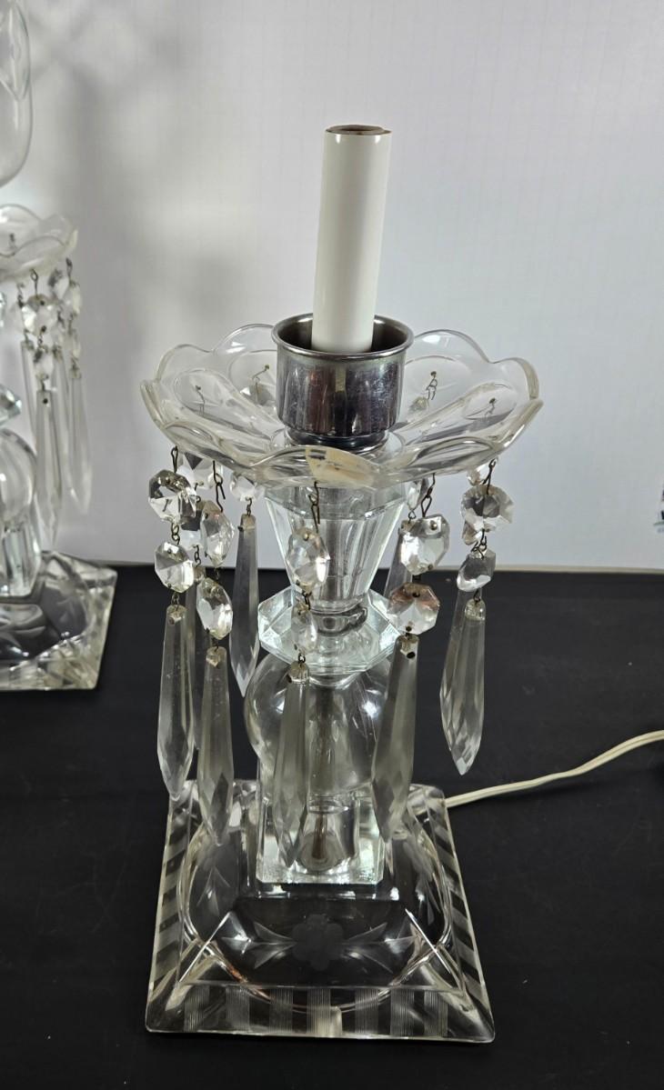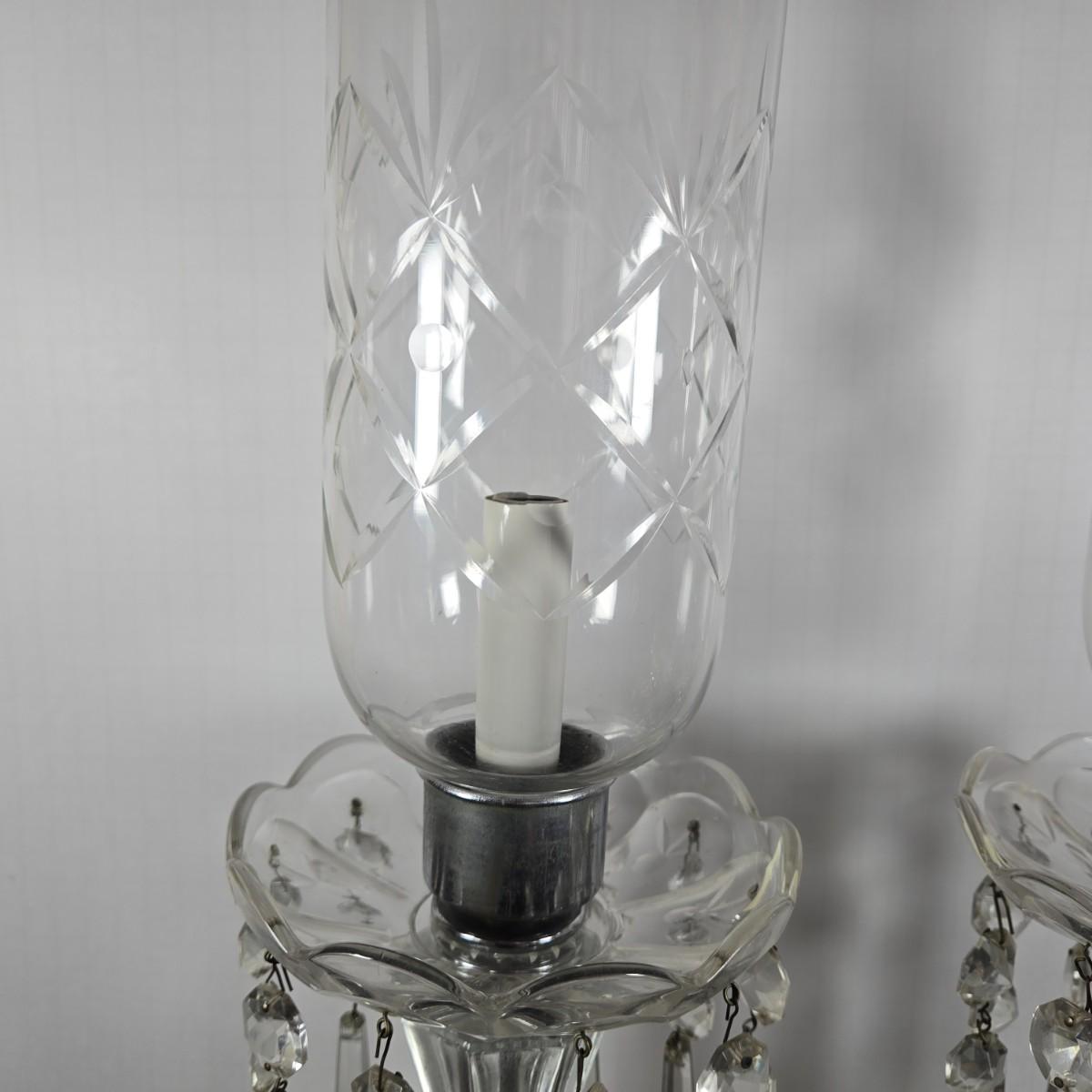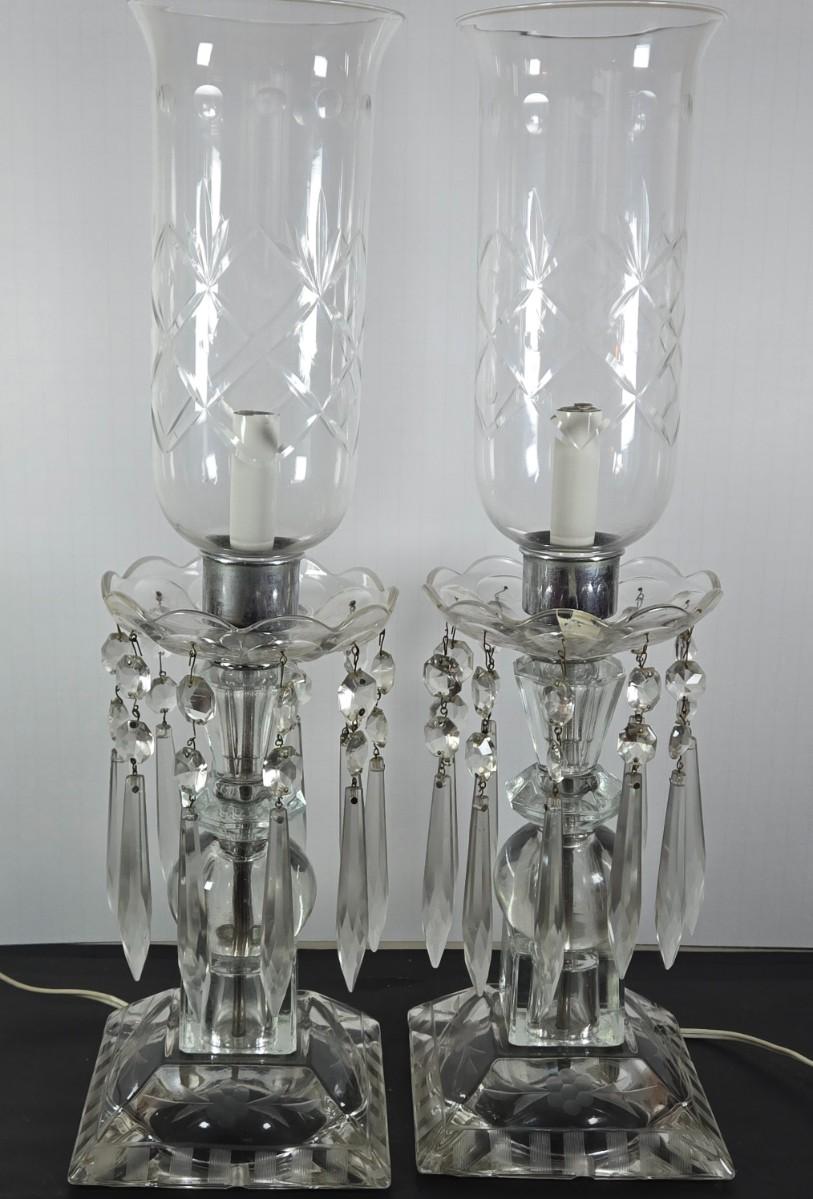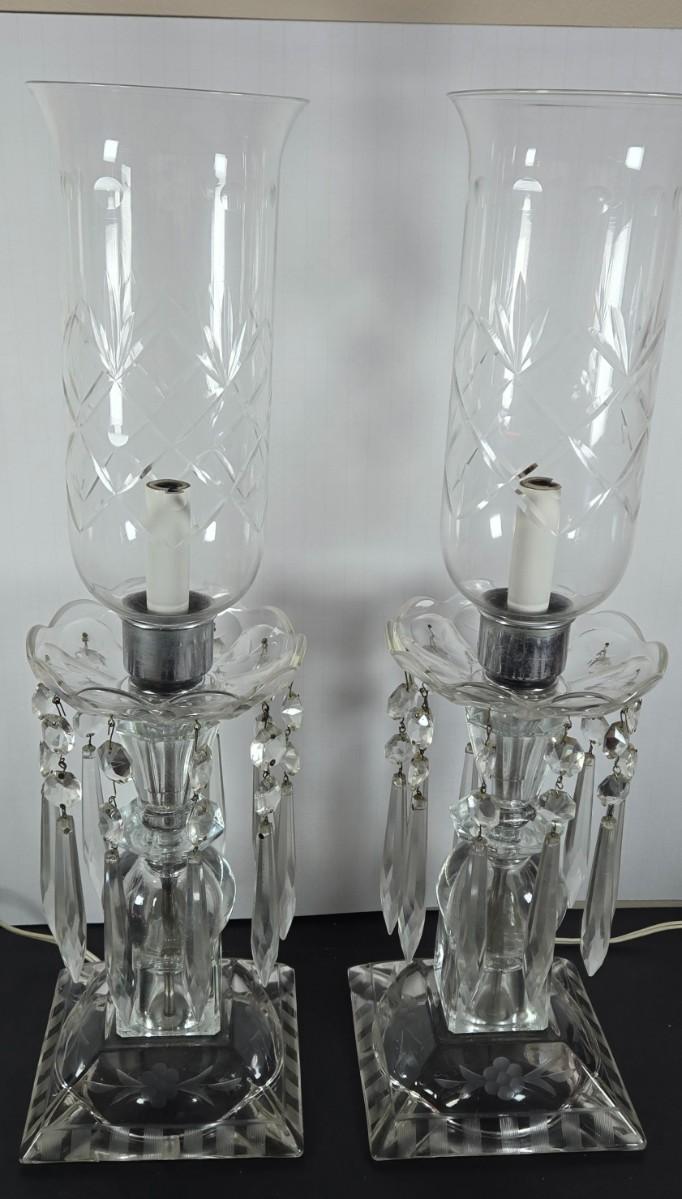 LOT 127: Crystal Hurricane Mantle Lamps