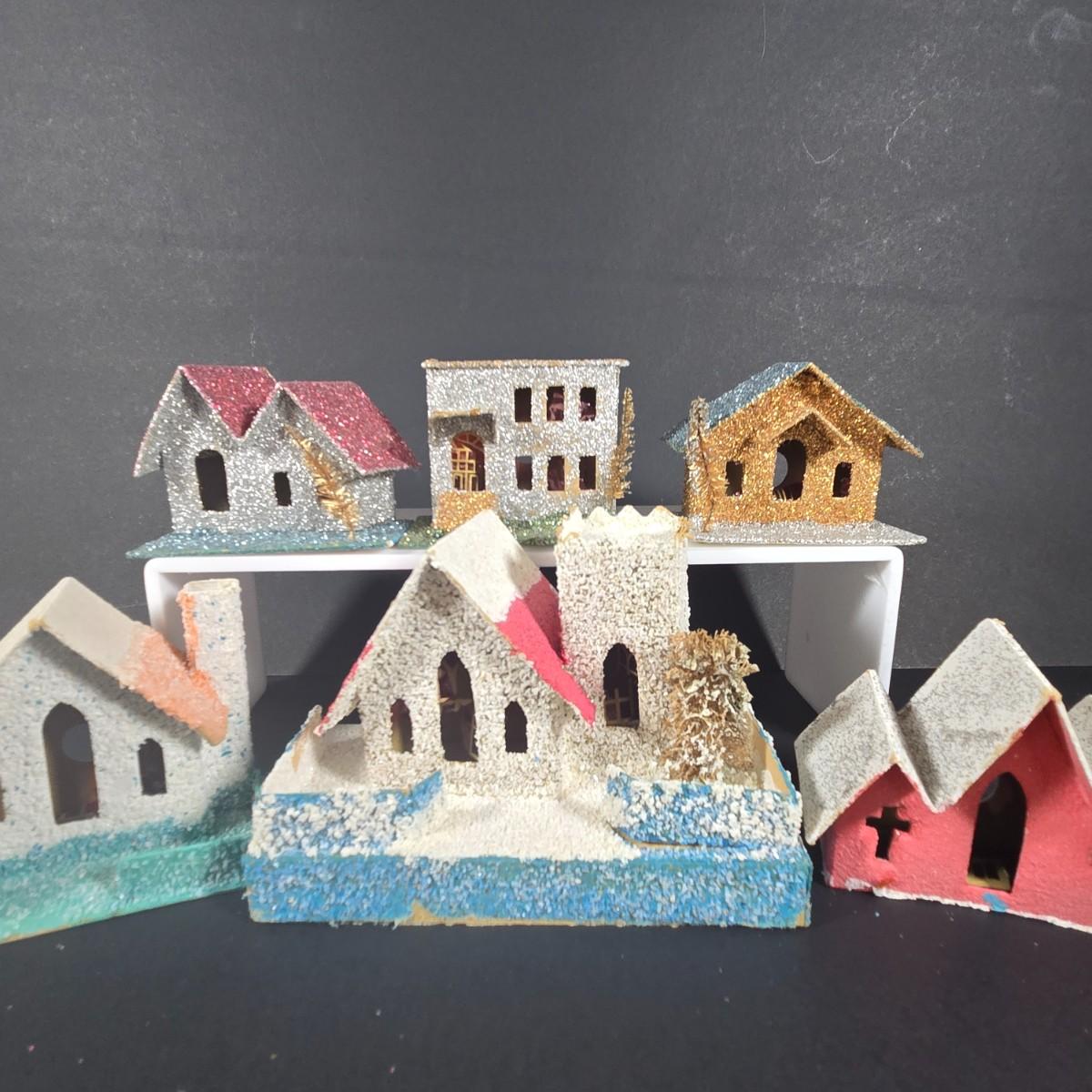 LOT 128: Collection of Vintage "PUTZ" Christmas Village Houses Made in Japan