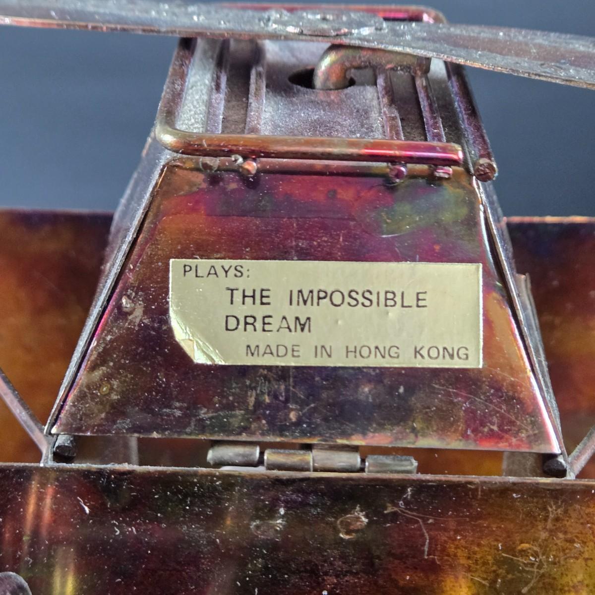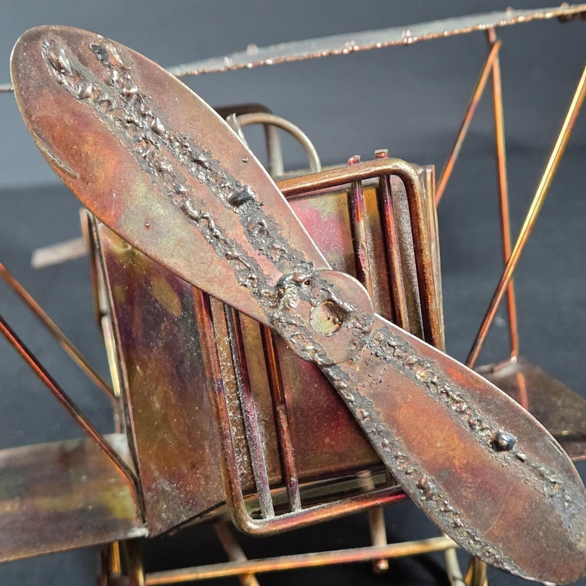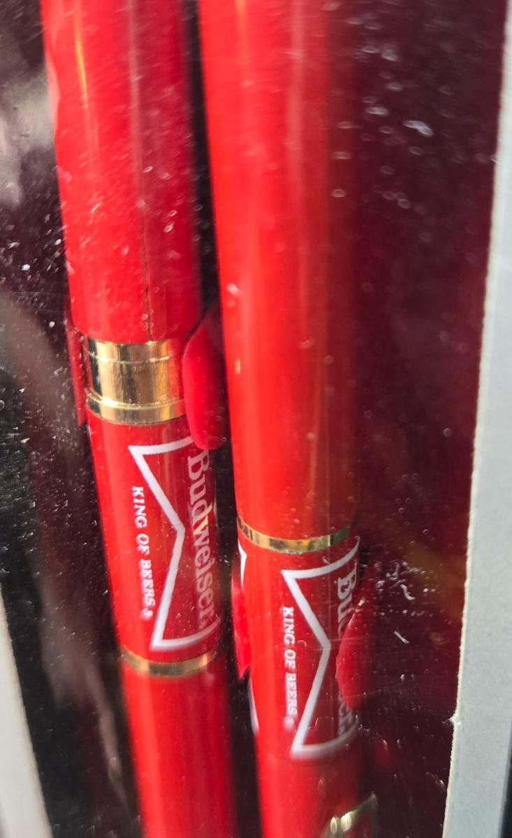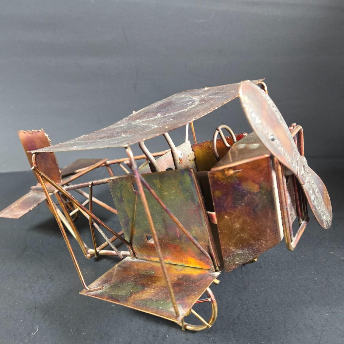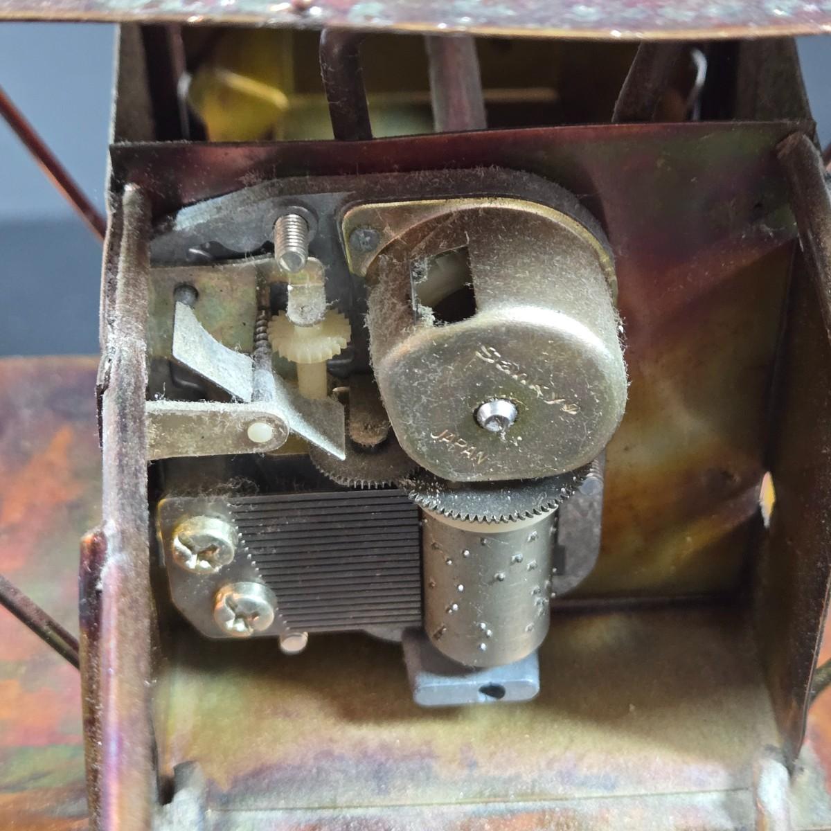 LOT 133: Handcrafted "BUDWEISER" Sailboat, BUDWEISER Pens, MR. PEANUT Bendable Figure, MR. PEANUT Pen, & Vintage Metal Biplane Music Box