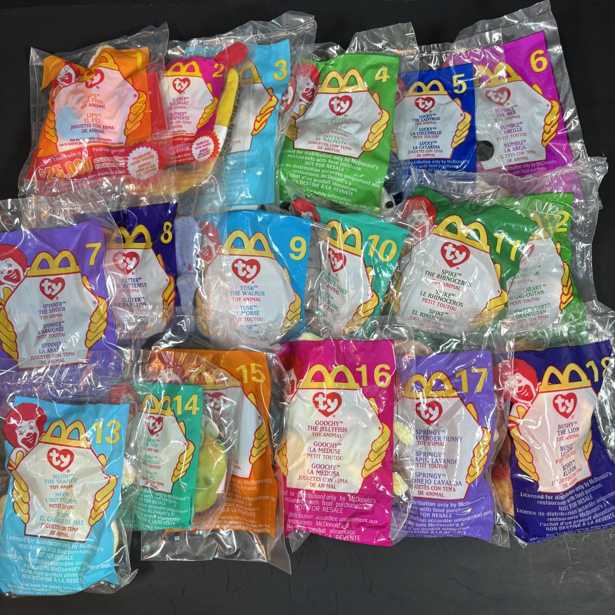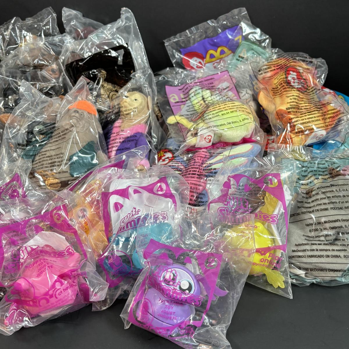 LOT 144: NIP McDonalds Ty Teenie Beanie Babies 1-18, Country Bears (8) & Fijit Friends Shimmies 1-6