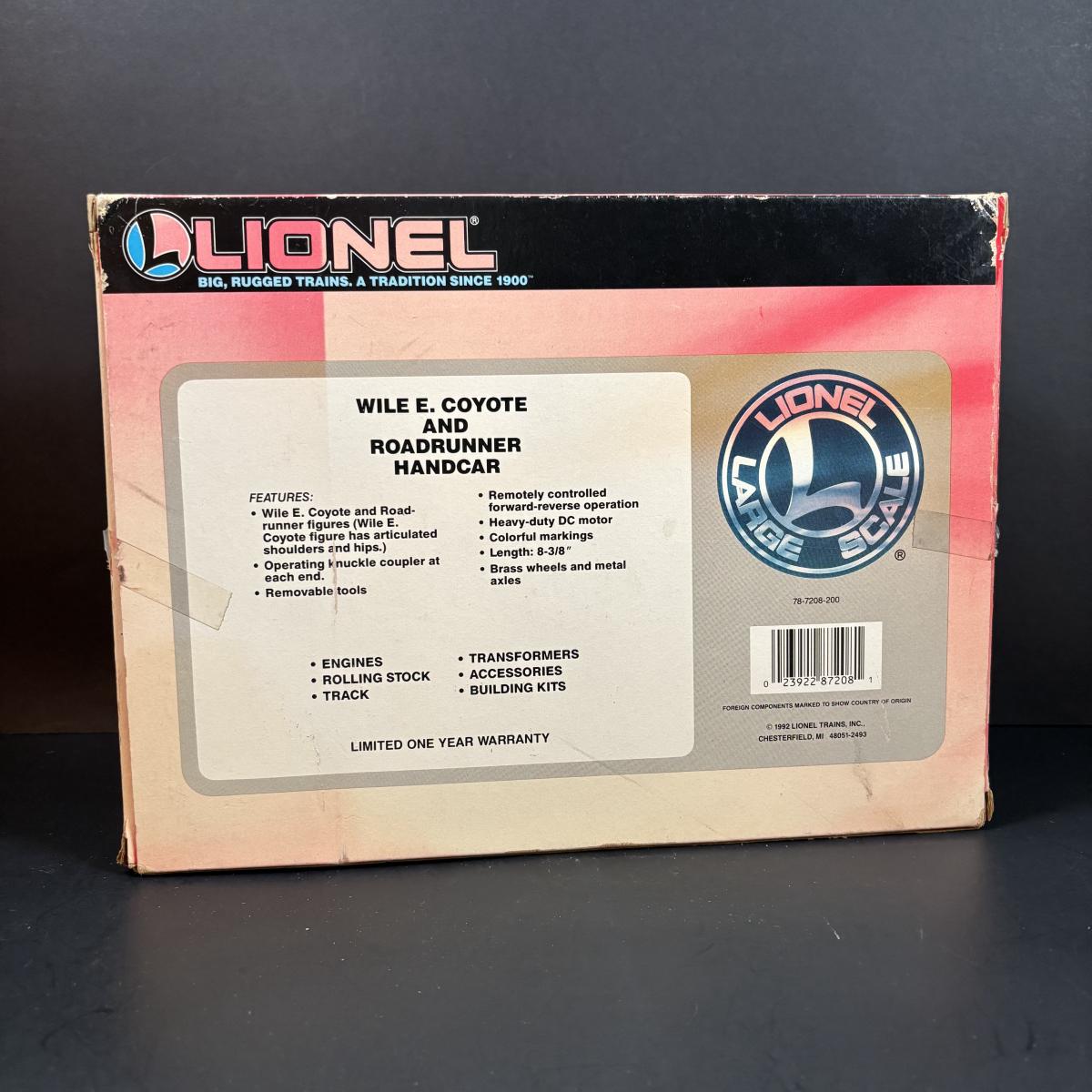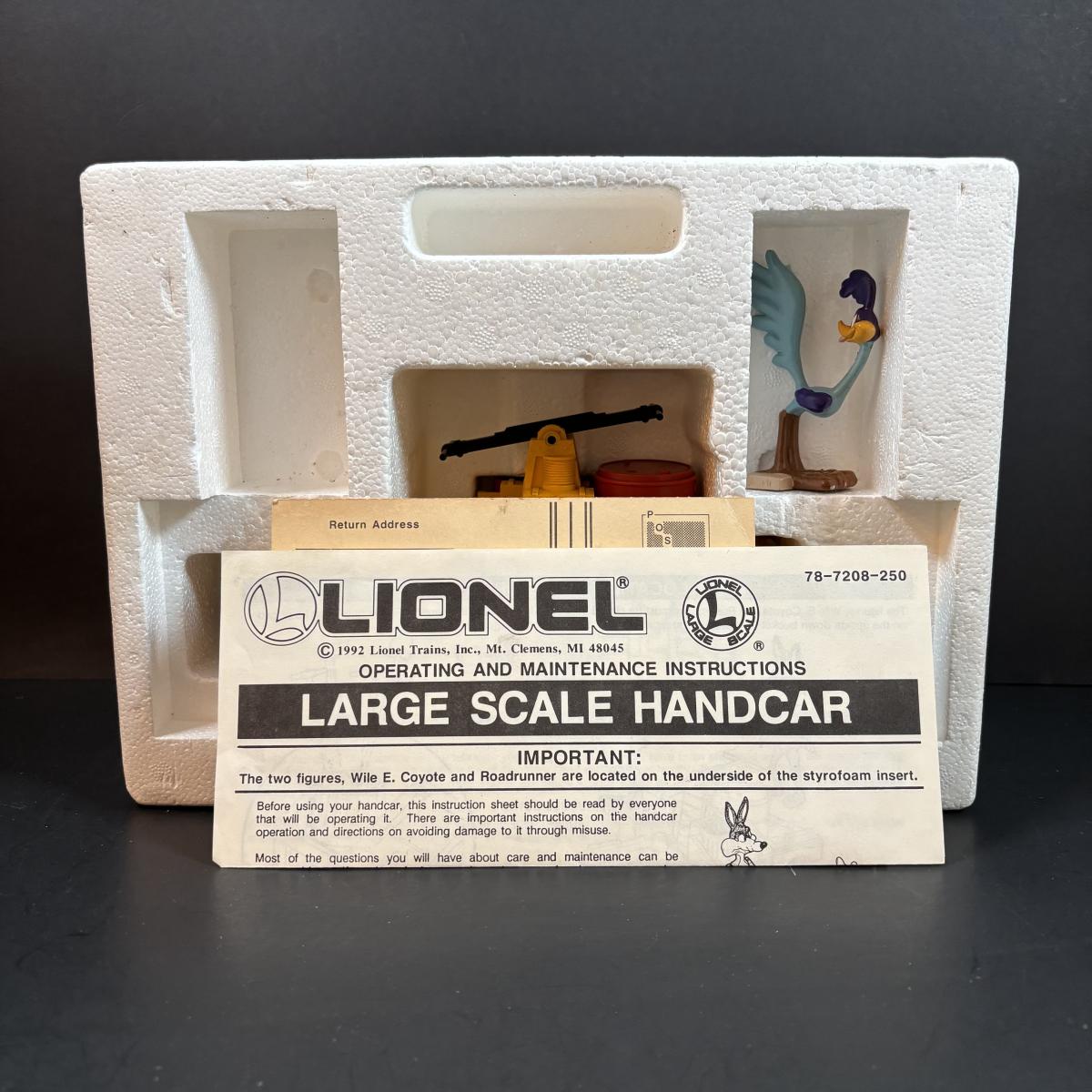 LOT 159: Lionel 87208n Wile E. Coyote & Road Runner Handcar in O Scale (Missing Wile E. Coyote)