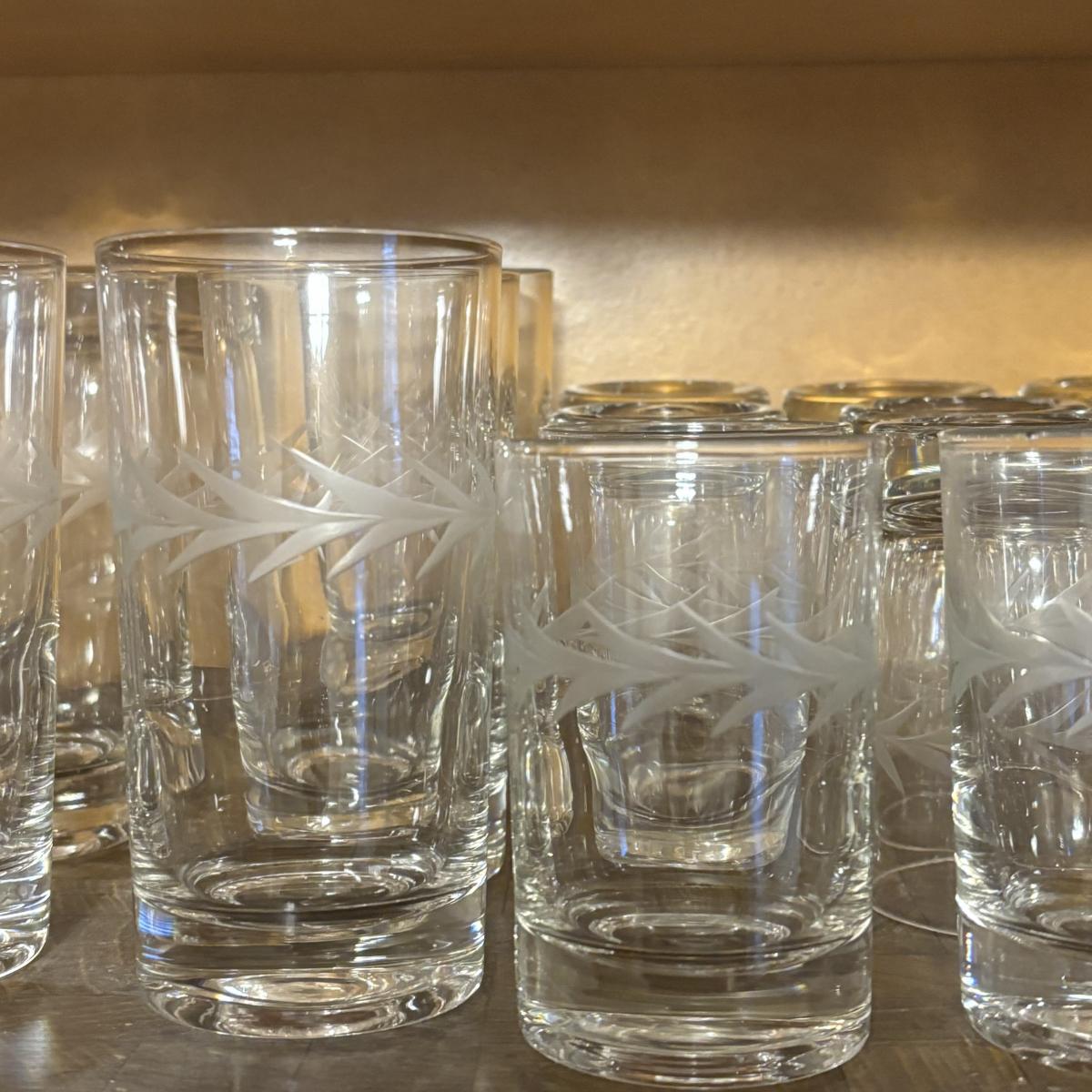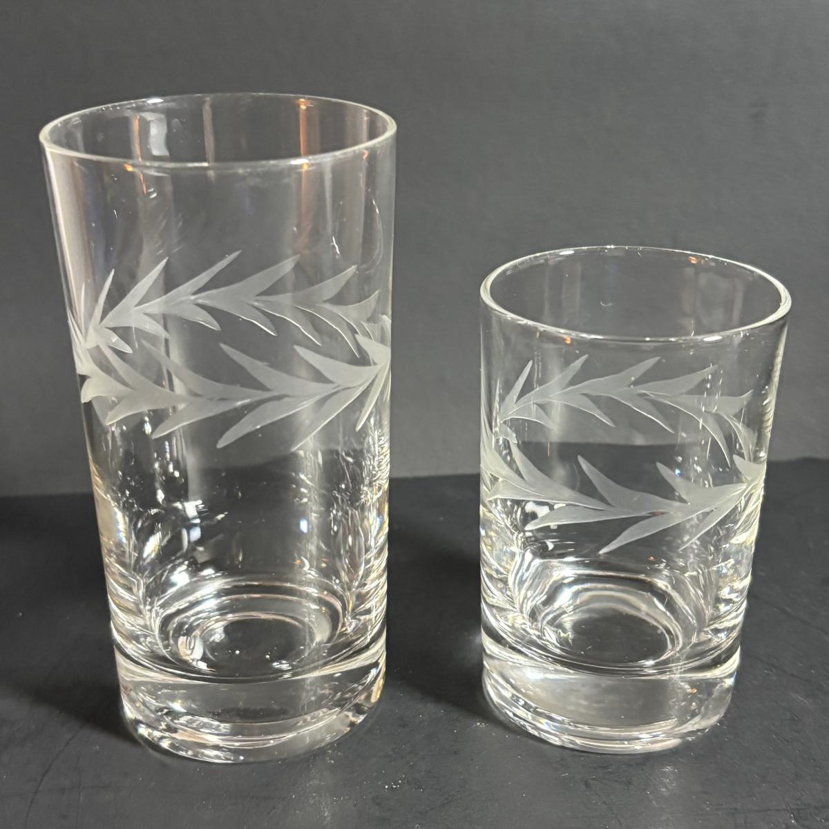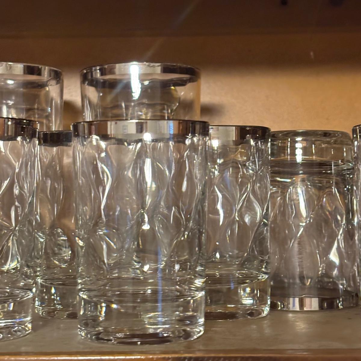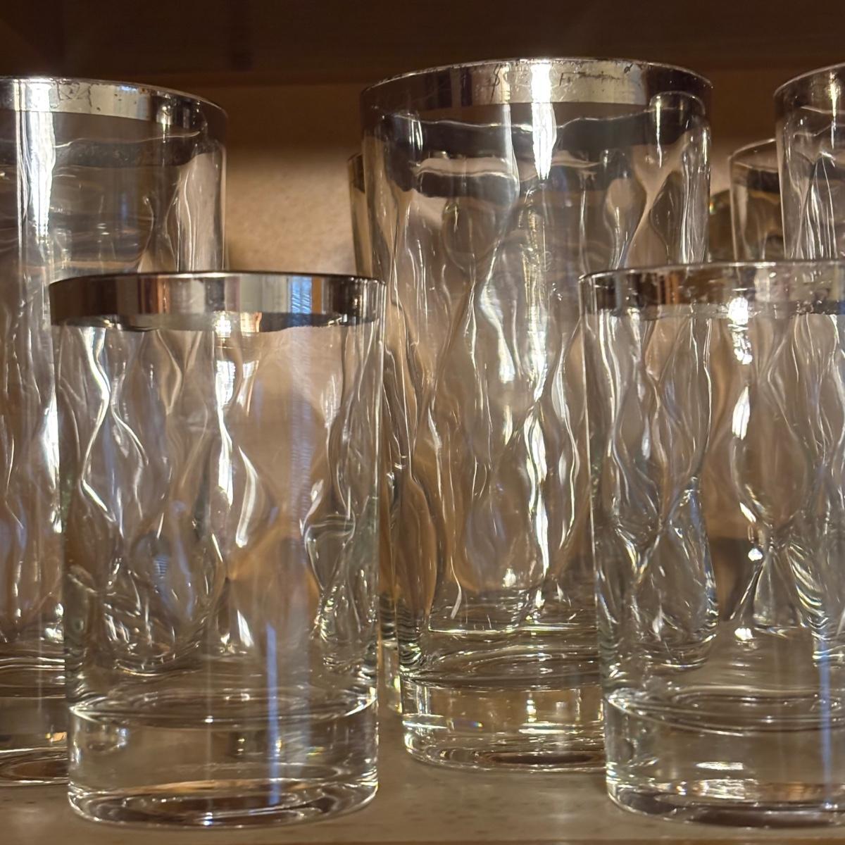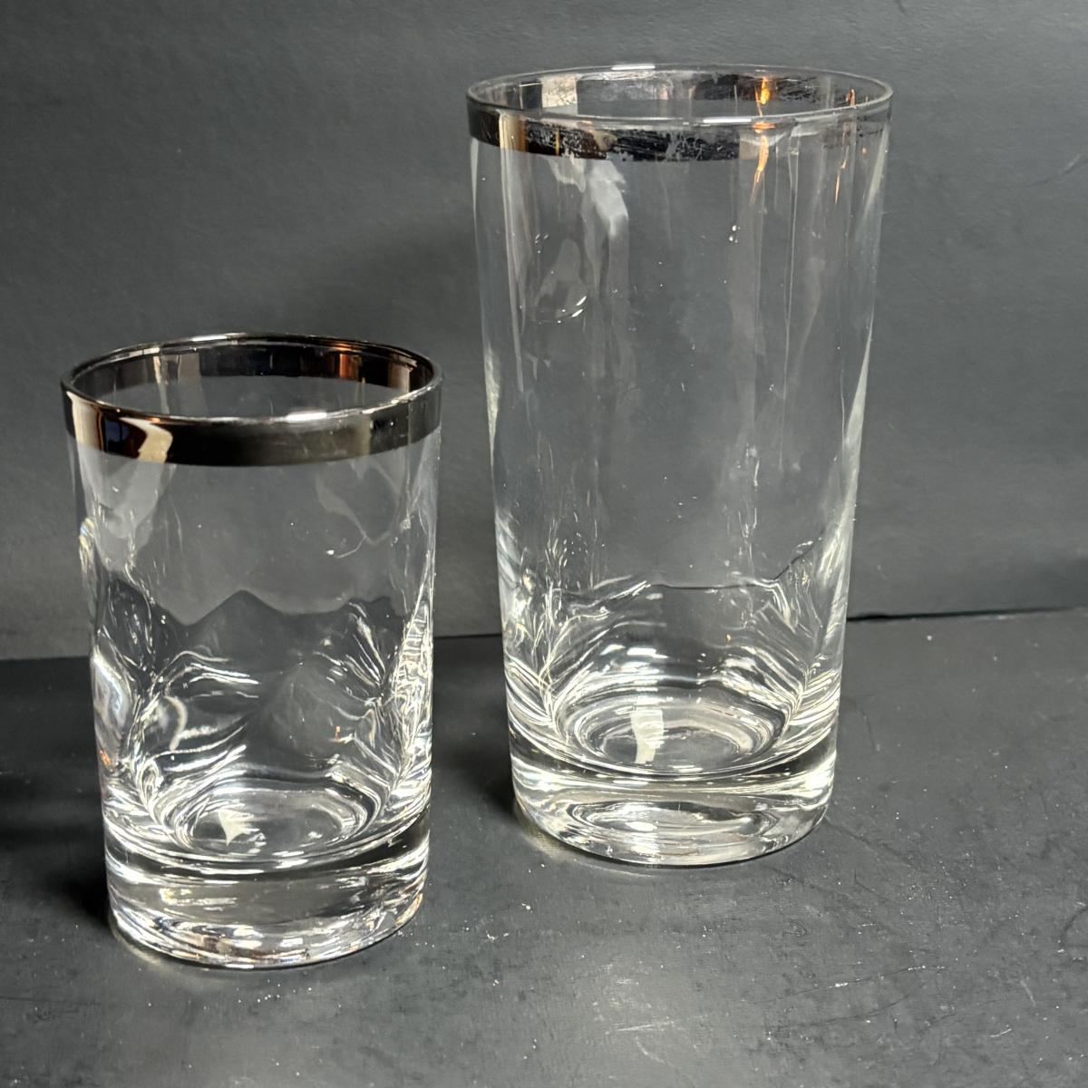 LOT 161: Vintage Silver Rimmed Glassware & Etched Glassware