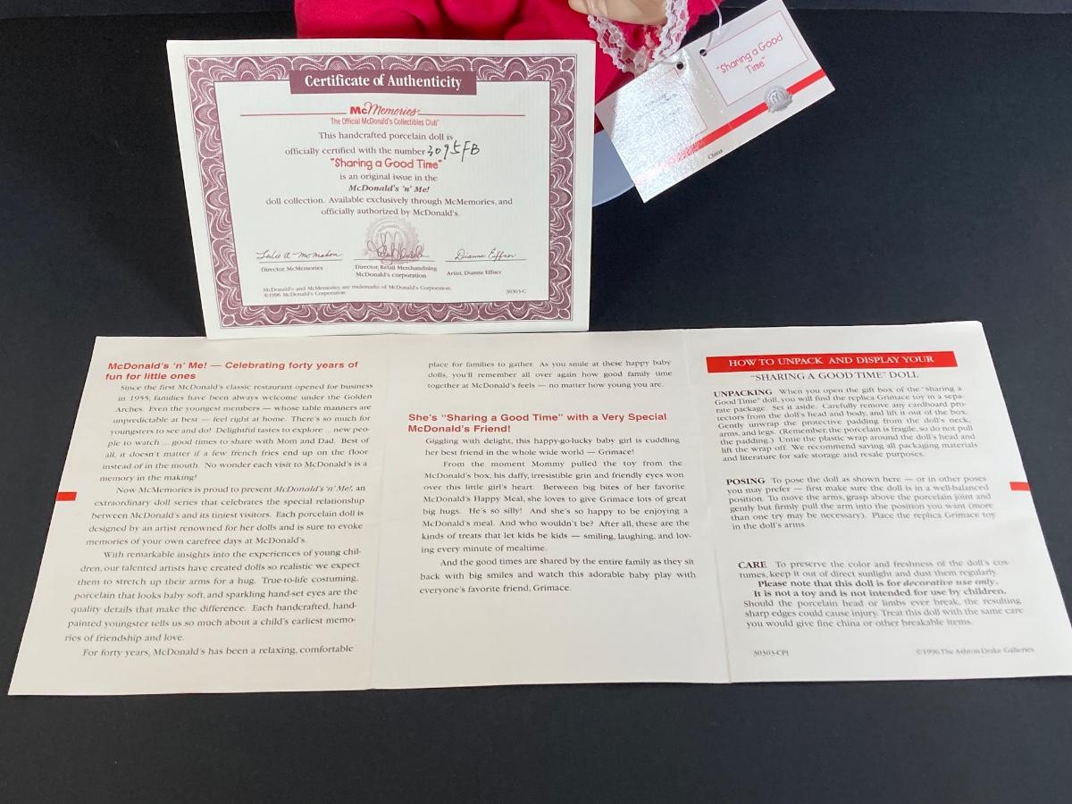 LOT 166: McMemories "Sharing a Good Time" Doll with Certificate of Authenticity with Collection of Seven McDonald's Happy Meal Madame Alexander Dolls
