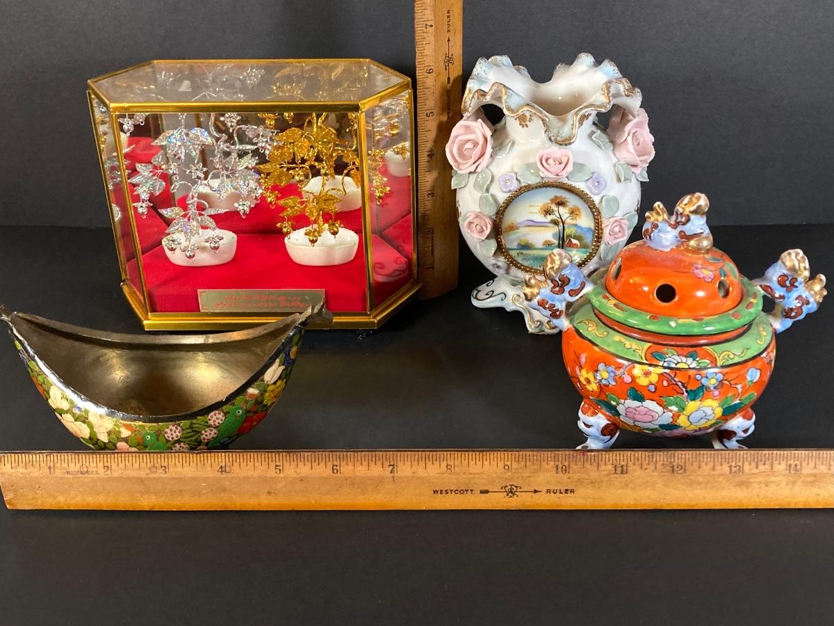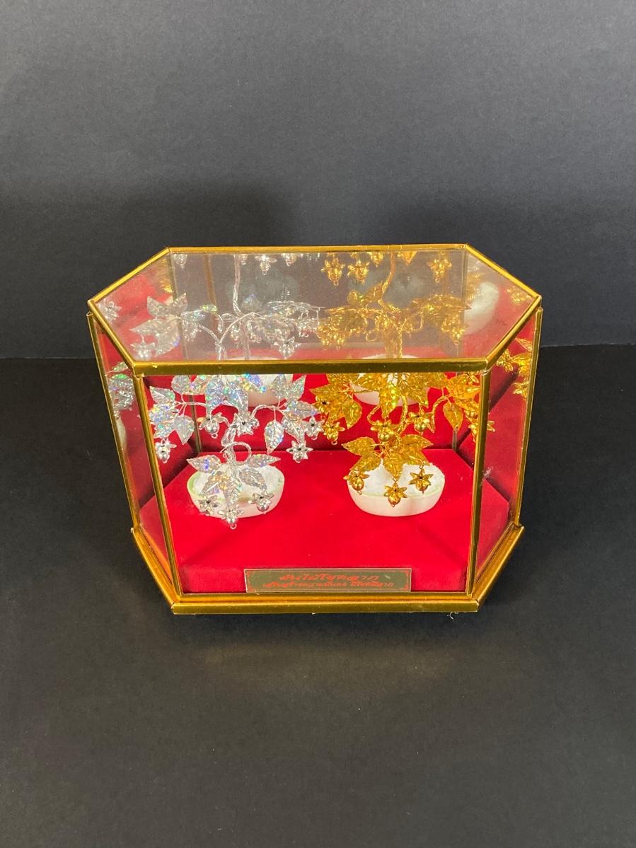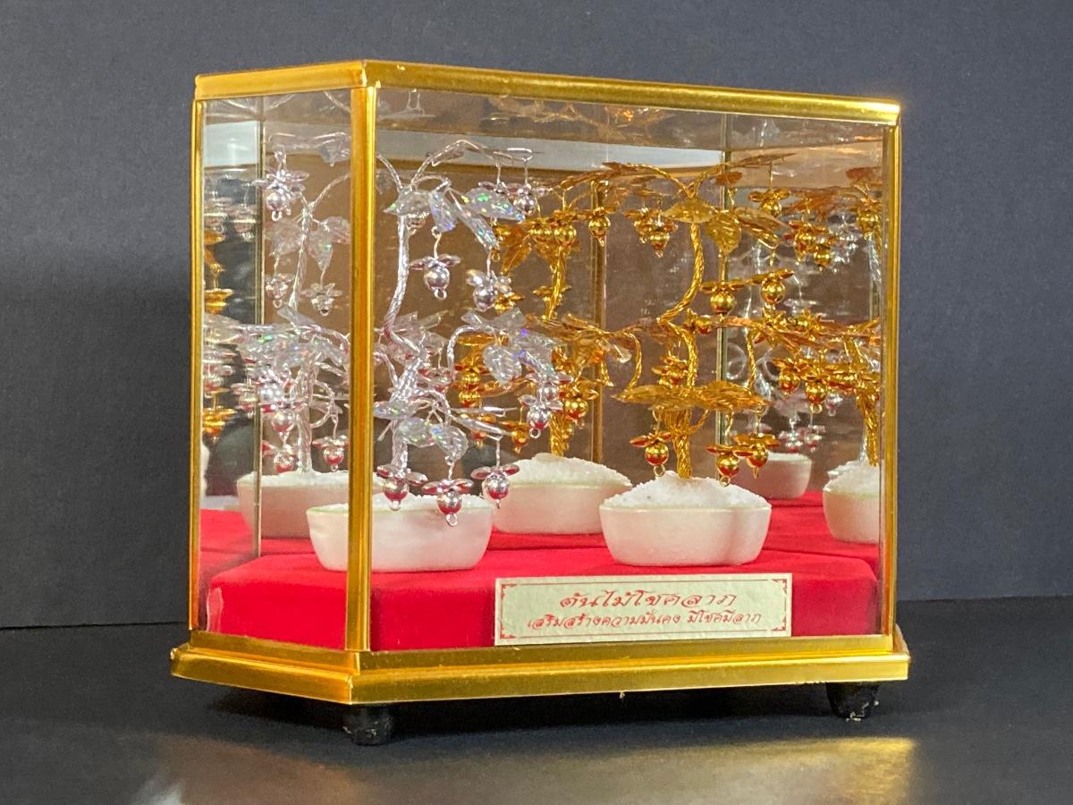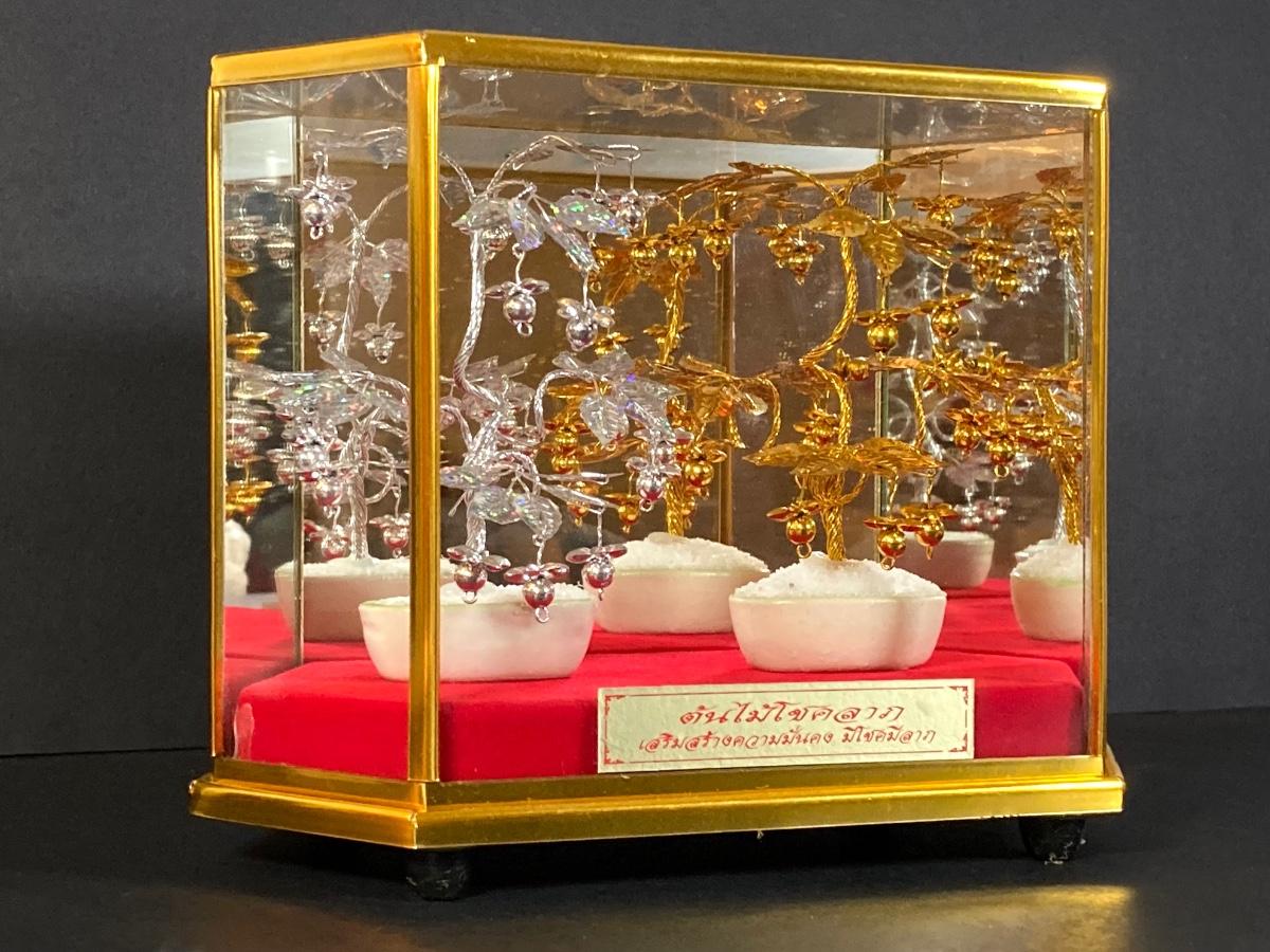 LOT 178: Beautiful Asian Decorative Collection - Sphinx, Silver / Gold Tone Trees in Mirrored Glass Box and More