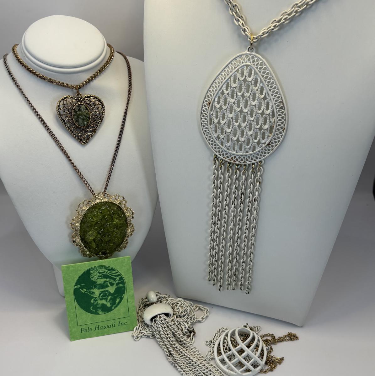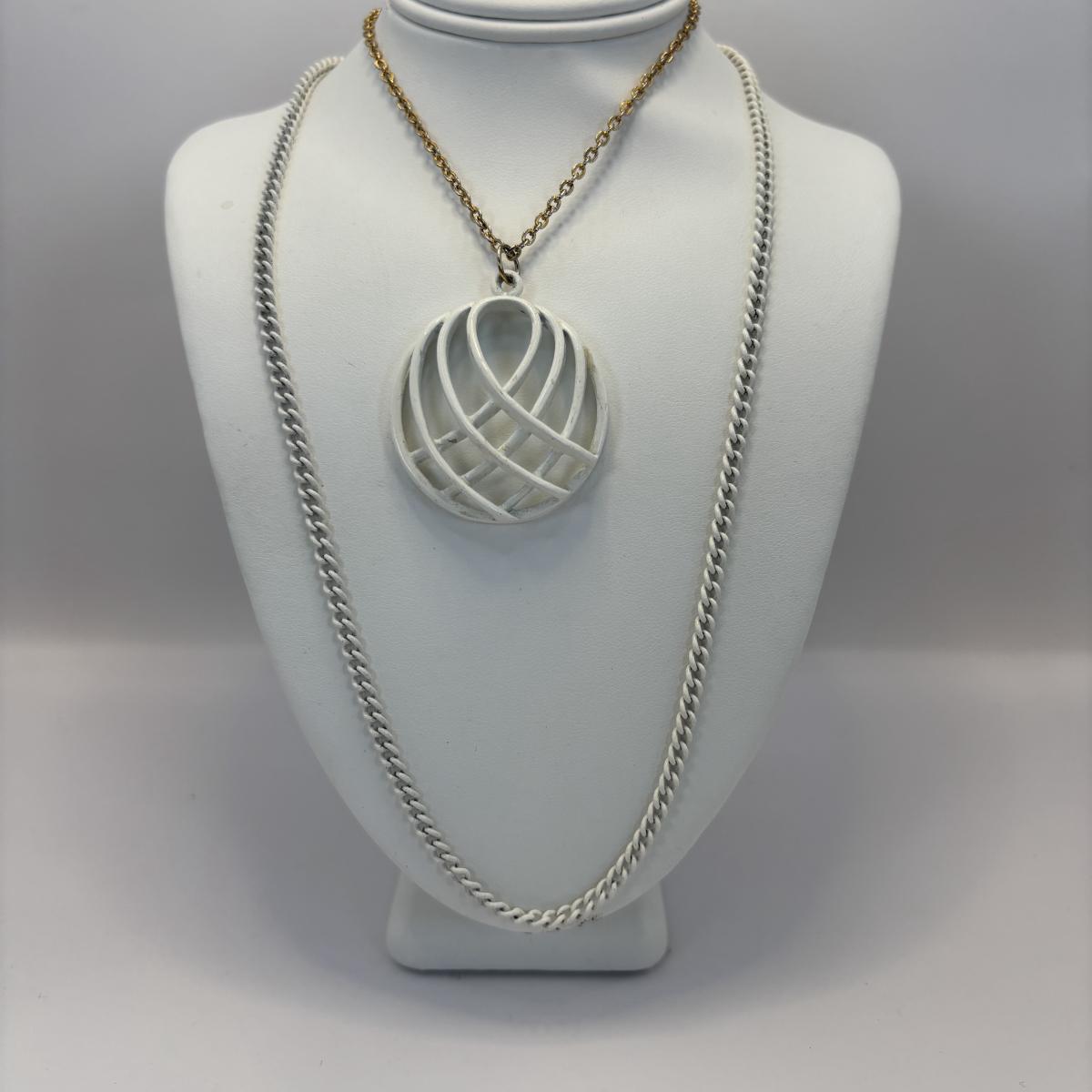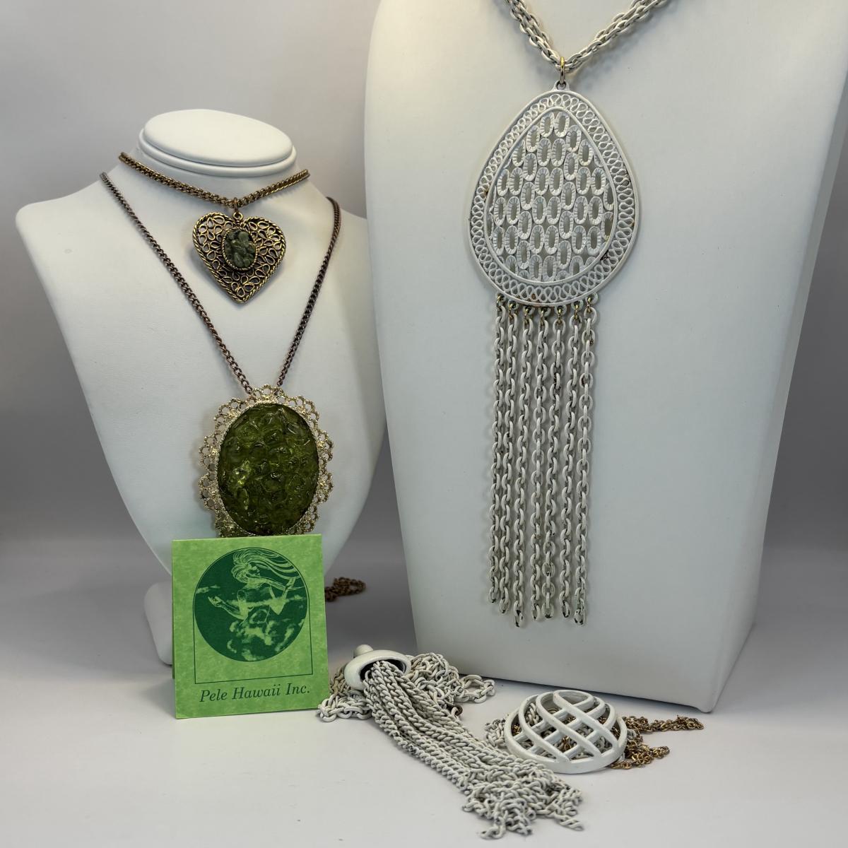 LOT 332: Vintage Pele Collection Necklaces in Olivine & Vintage 70 Mod White Geometric Style Necklaces