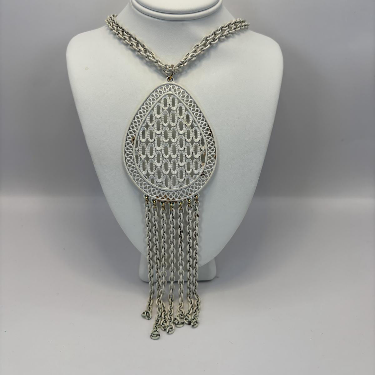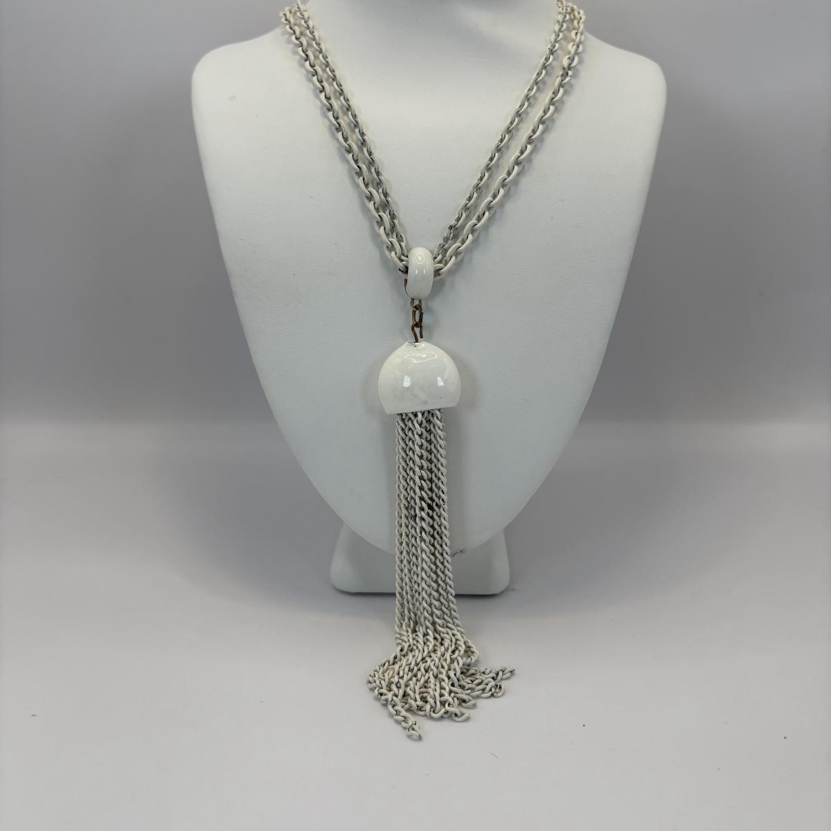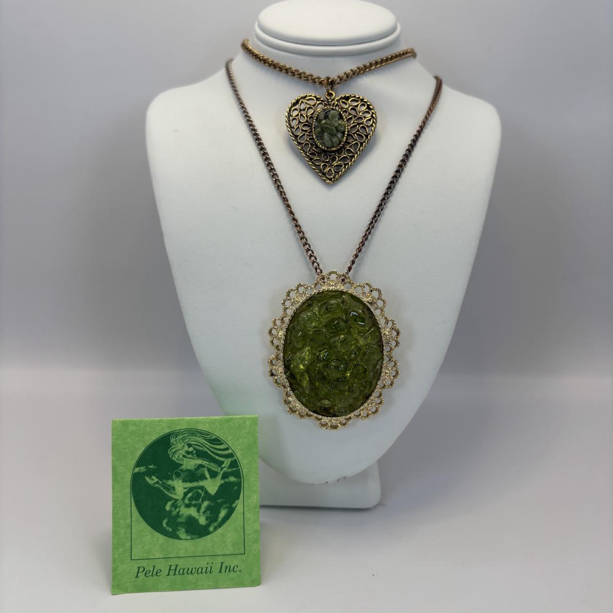 LOT 332: Vintage Pele Collection Necklaces in Olivine & Vintage 70 Mod White Geometric Style Necklaces