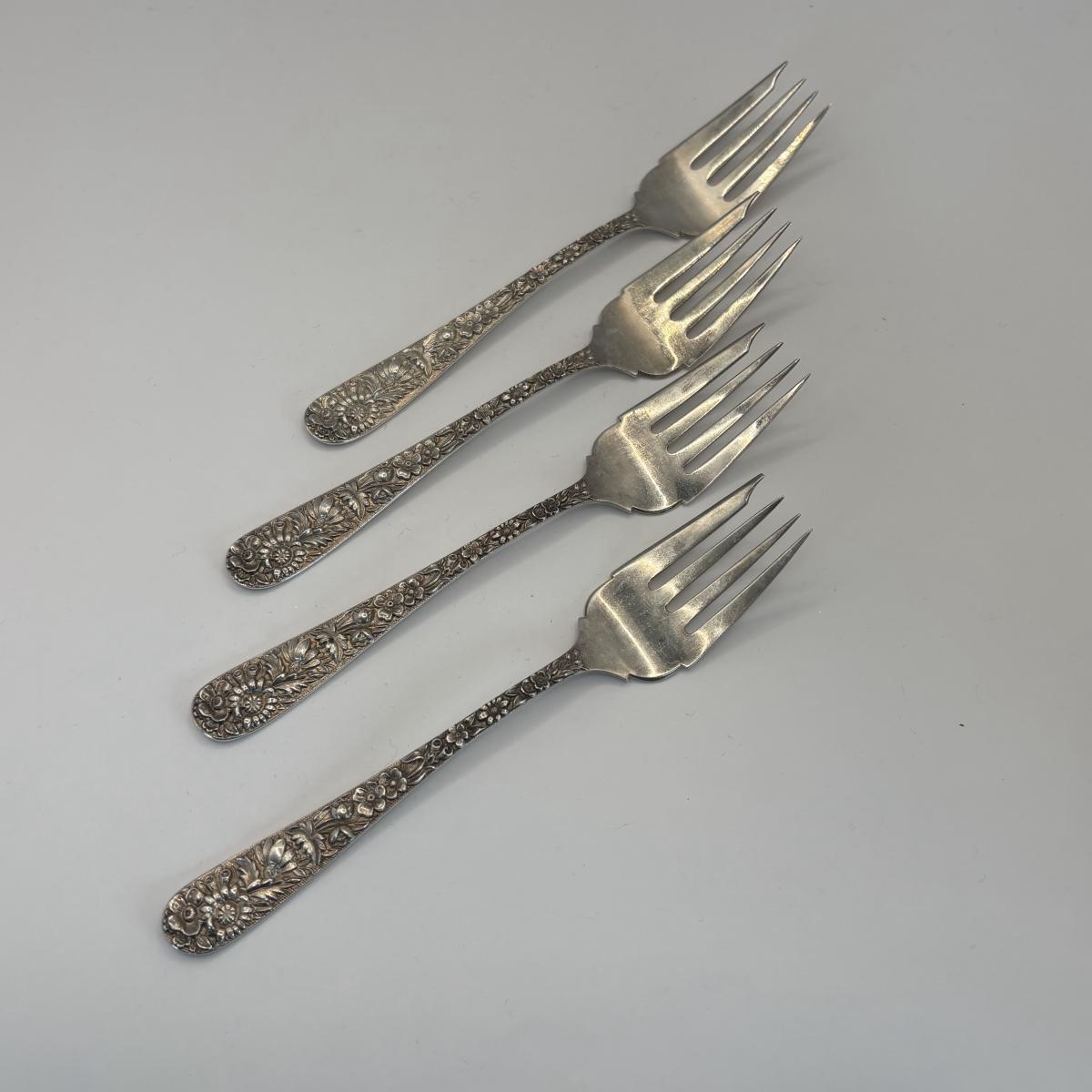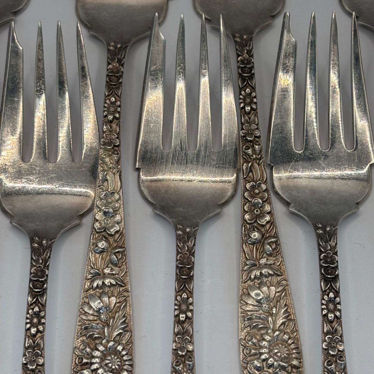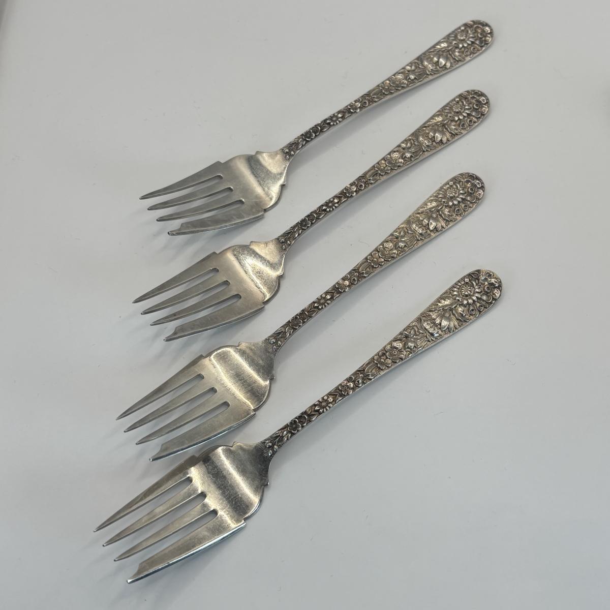 LOT 325: S..Kirk & Sons Co. Repousse Sterling Silver Forks w/Floral Design, 405.08g Tw