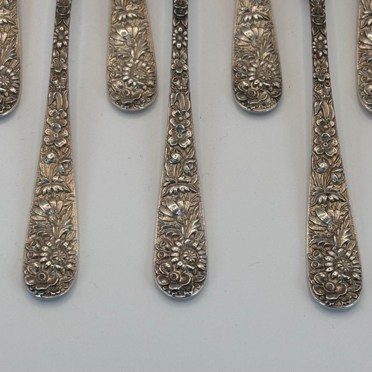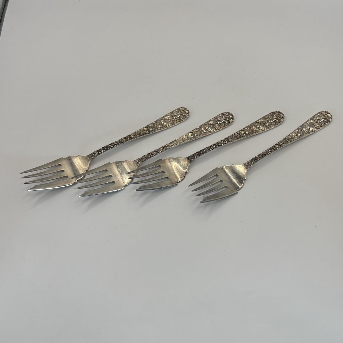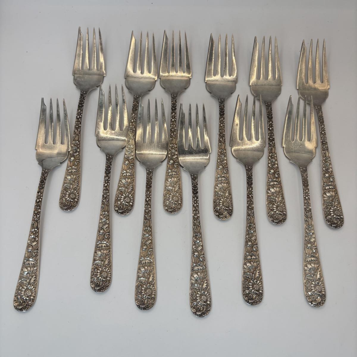 LOT 325: S..Kirk & Sons Co. Repousse Sterling Silver Forks w/Floral Design, 405.08g Tw