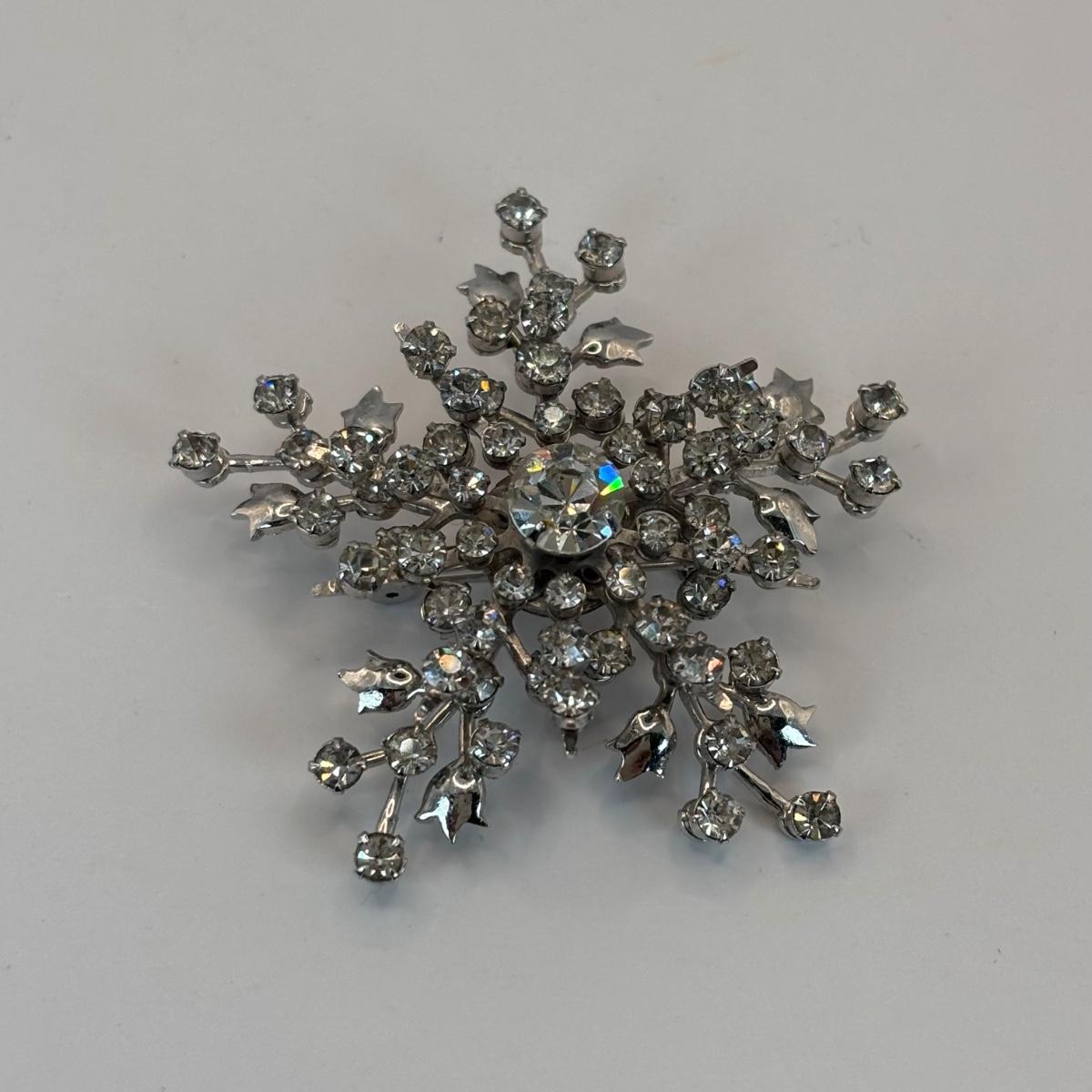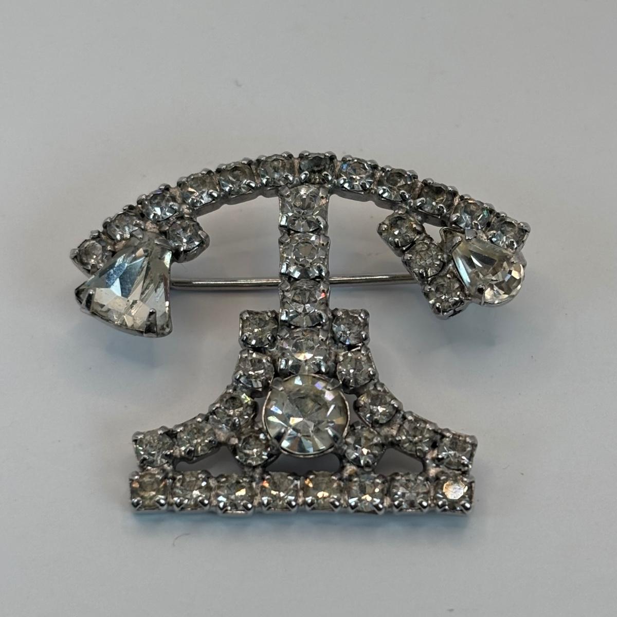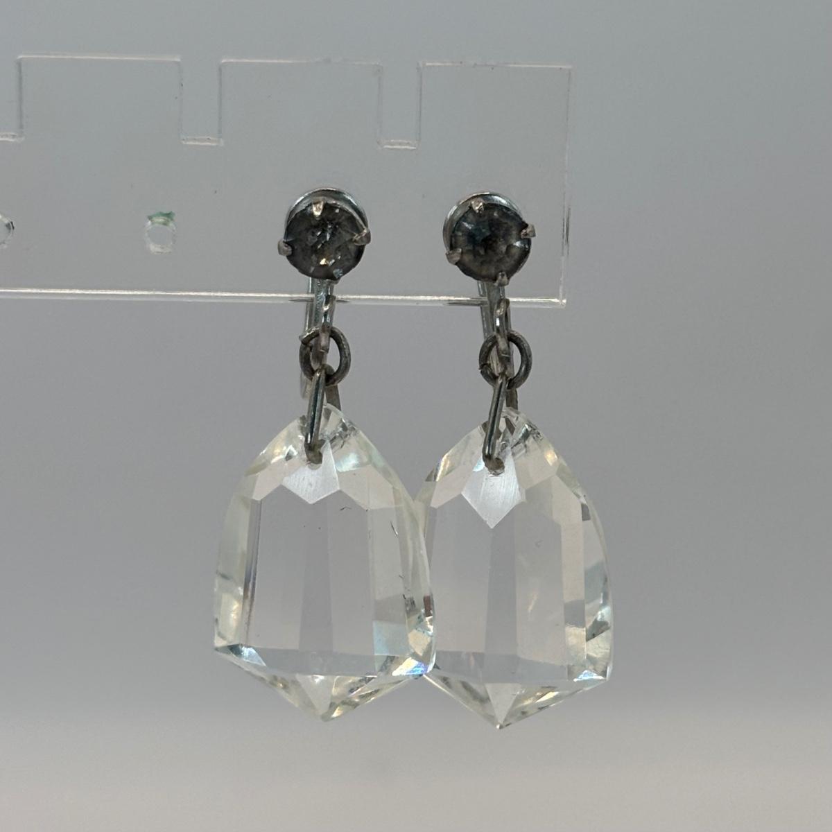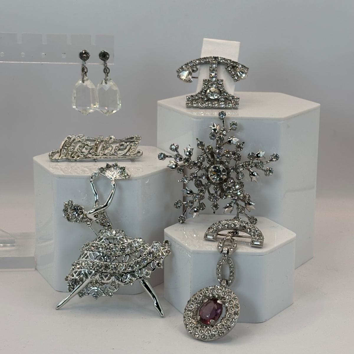 LOT 335: Vintage Rhinestone Brooch Collection along w/Clear Faceted Screw Back Drop Earrings