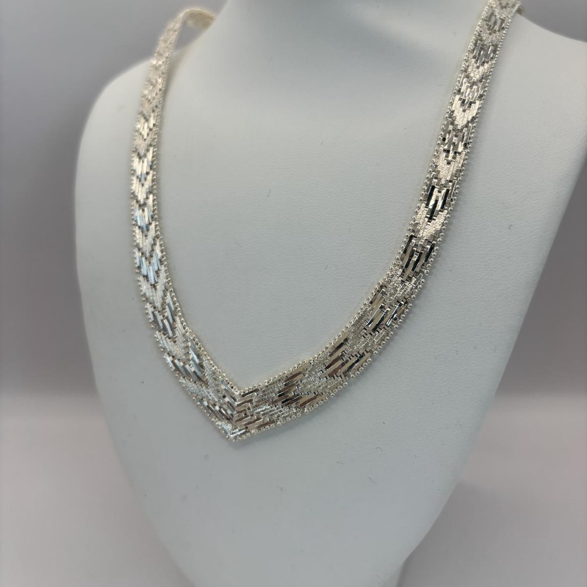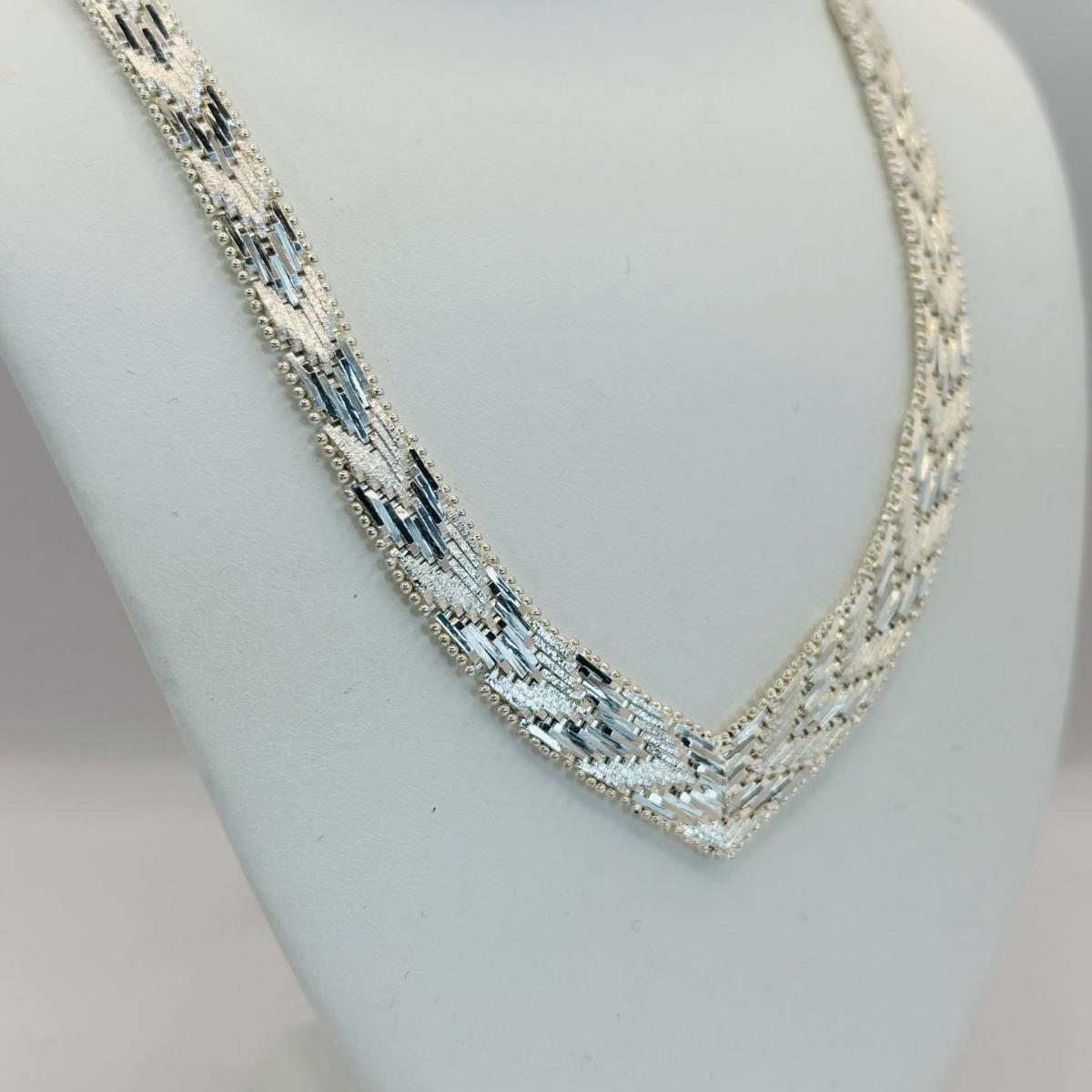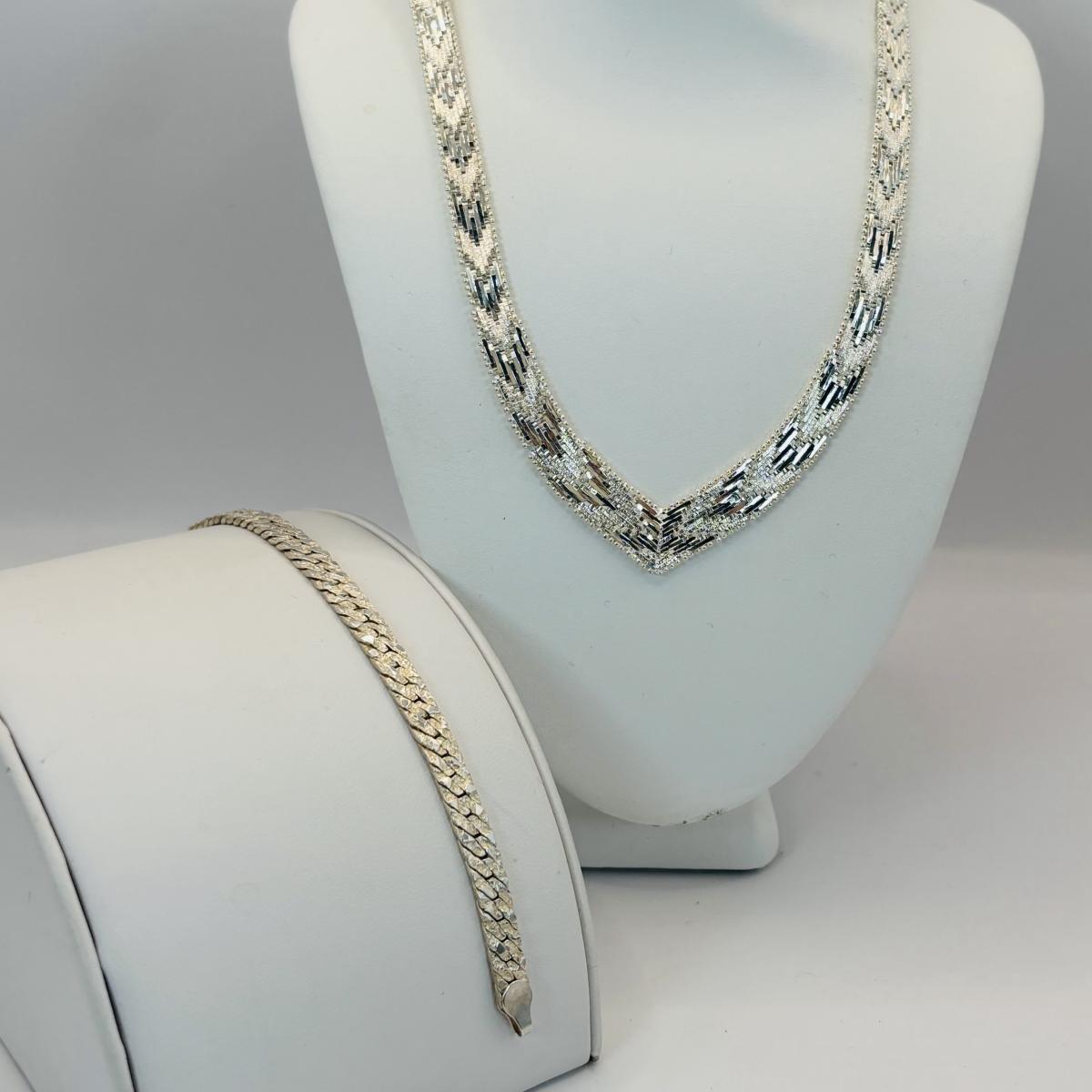 LOT 336: Sterling Silver (925 Italy) V-shaped Chevron Necklace & Sterling Silver 7" Bracelet w/No Clasp: 50.60g Tw