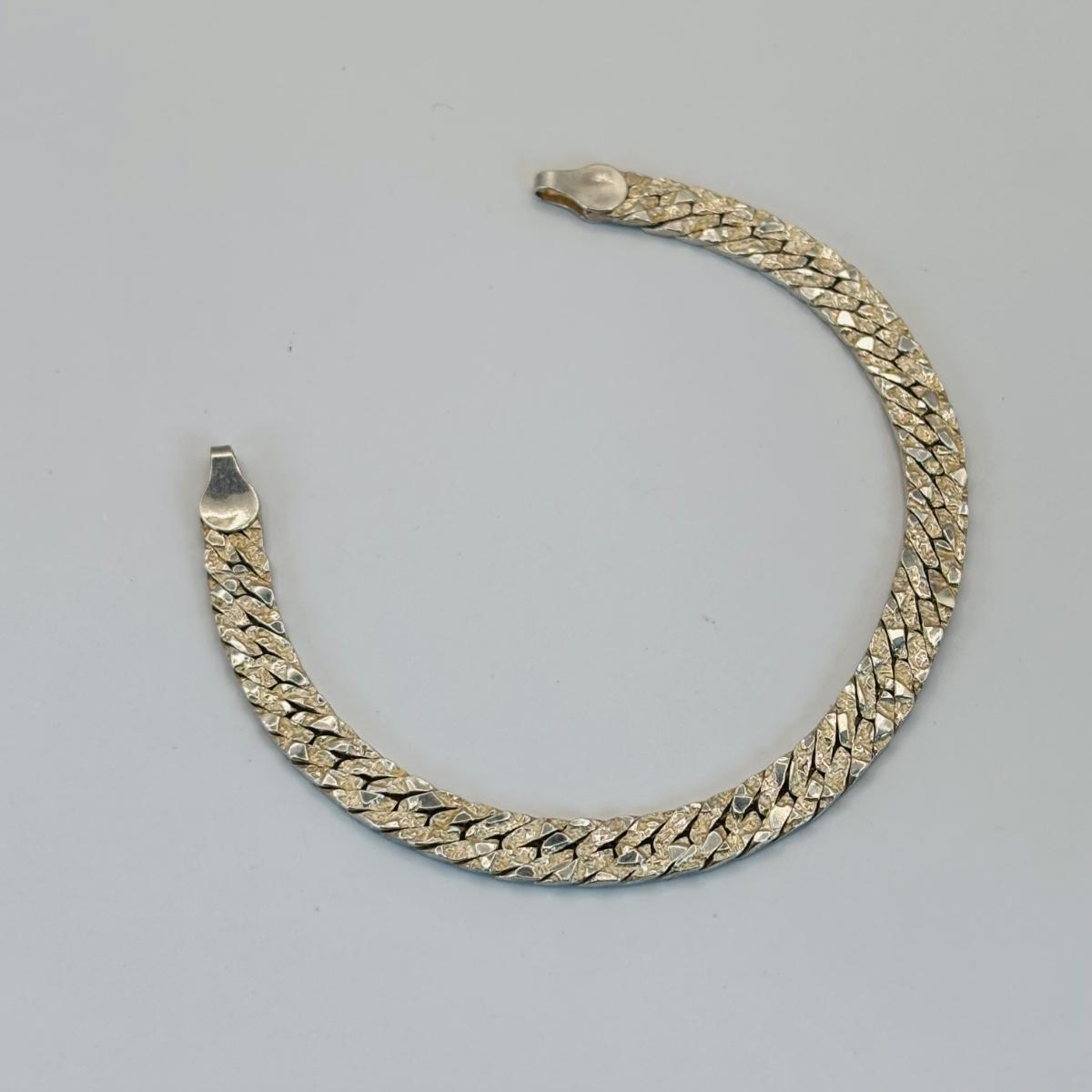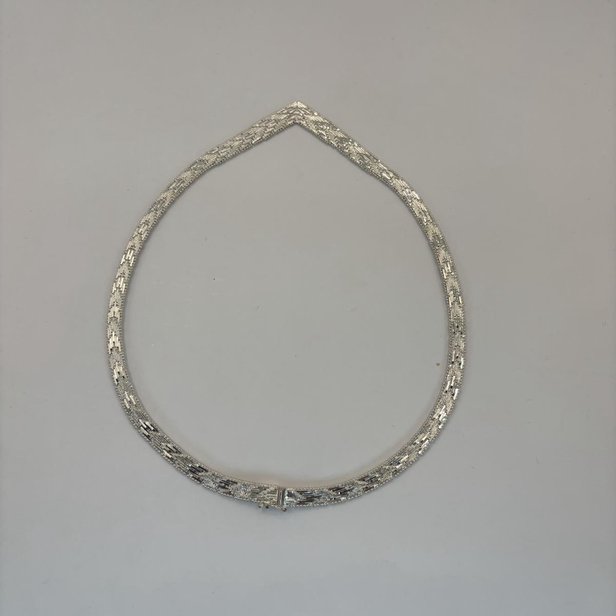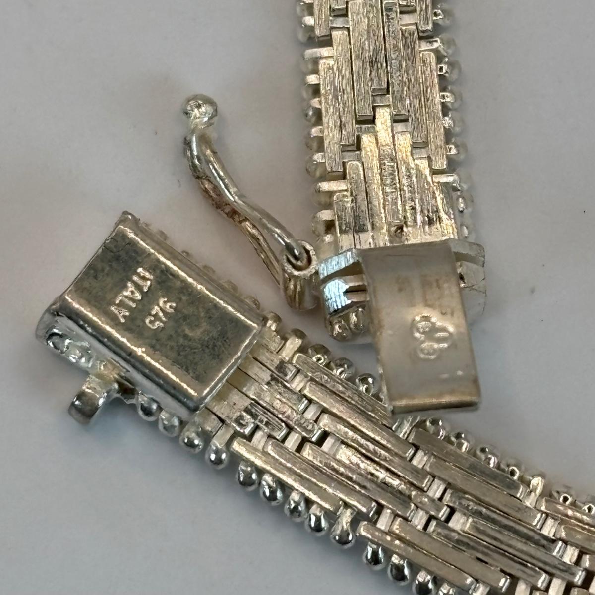 LOT 336: Sterling Silver (925 Italy) V-shaped Chevron Necklace & Sterling Silver 7" Bracelet w/No Clasp: 50.60g Tw