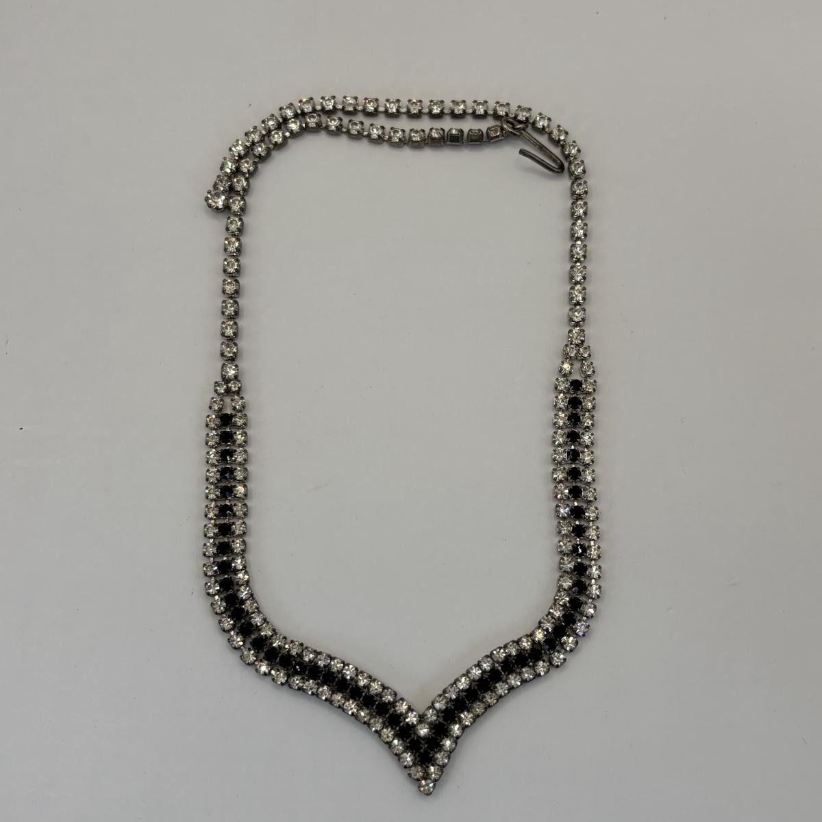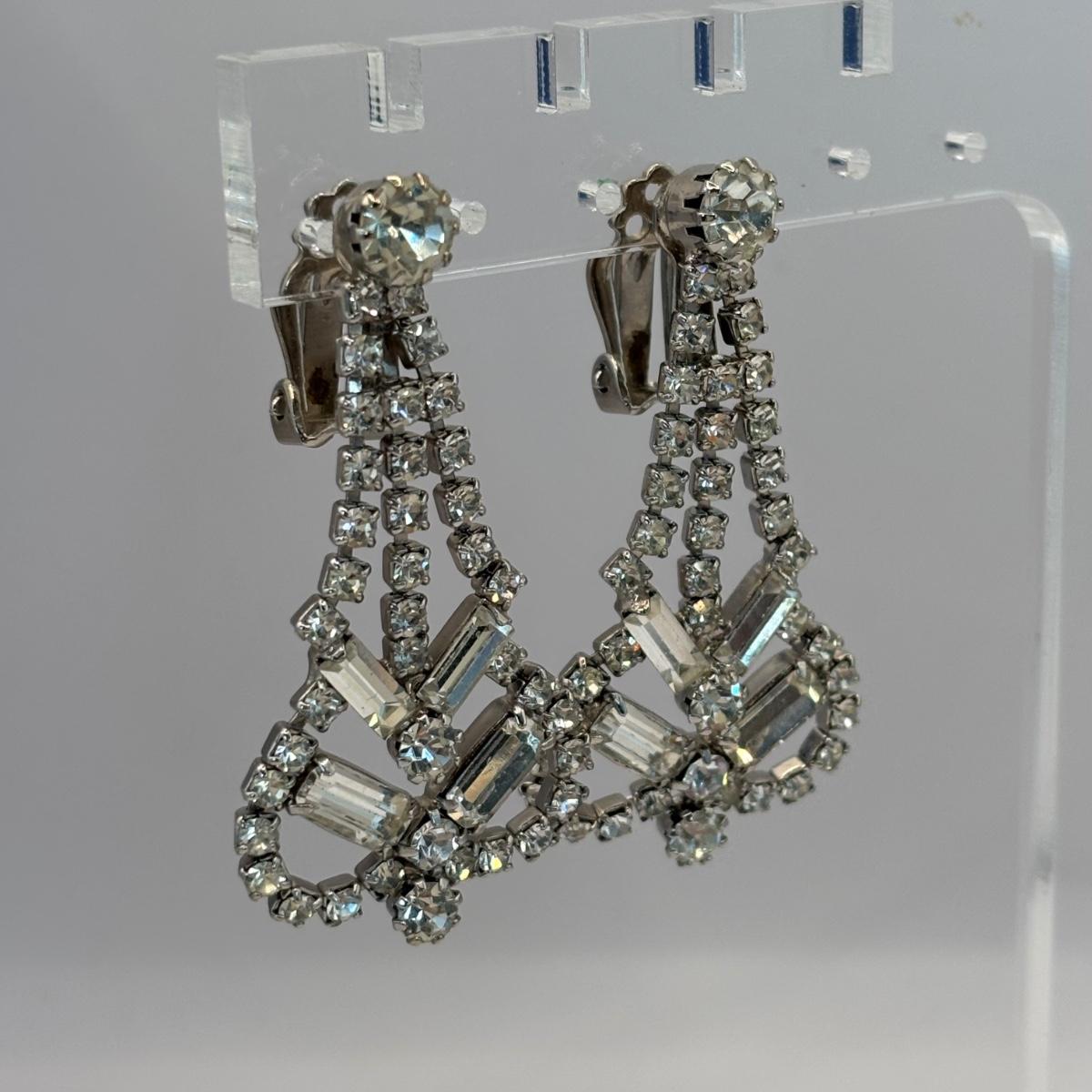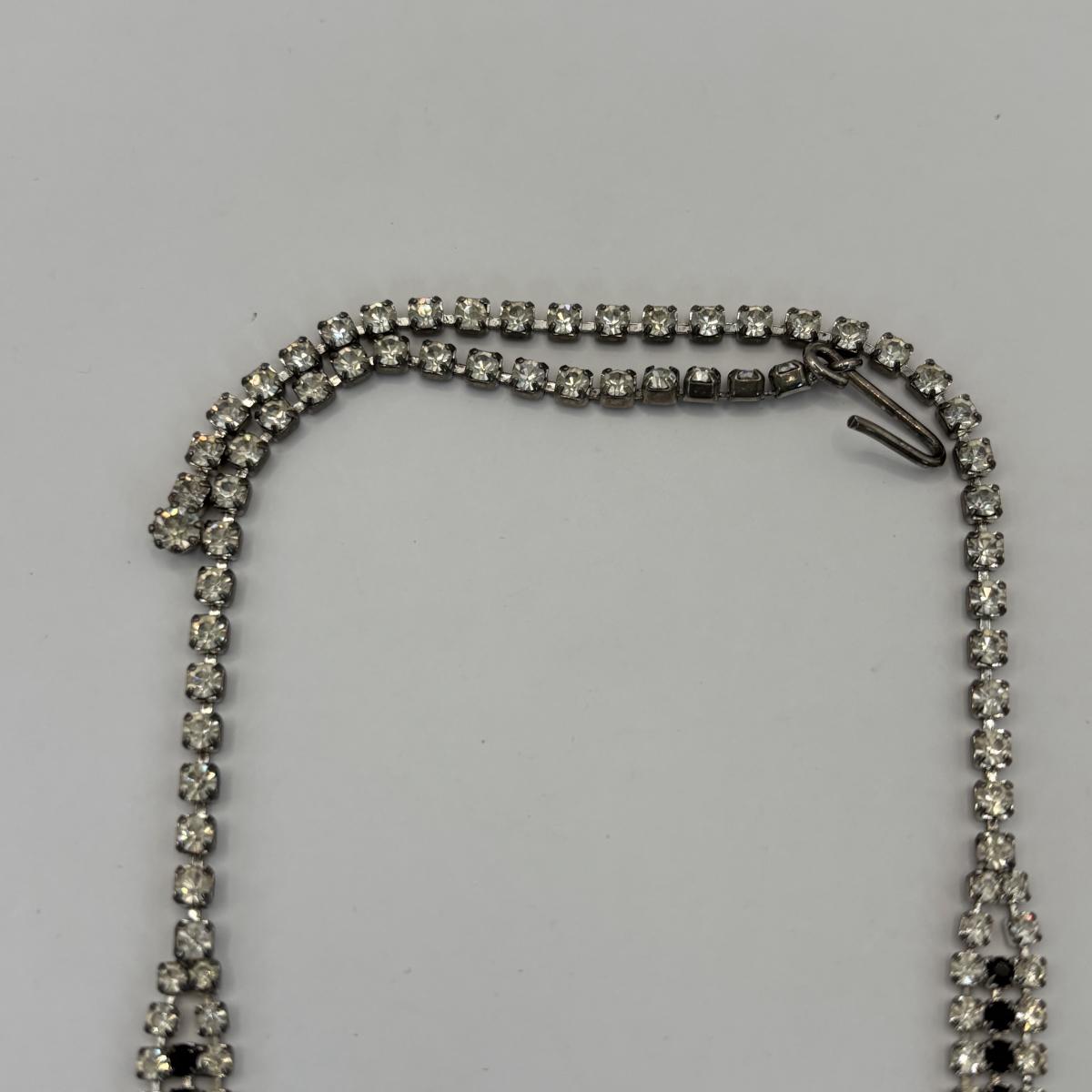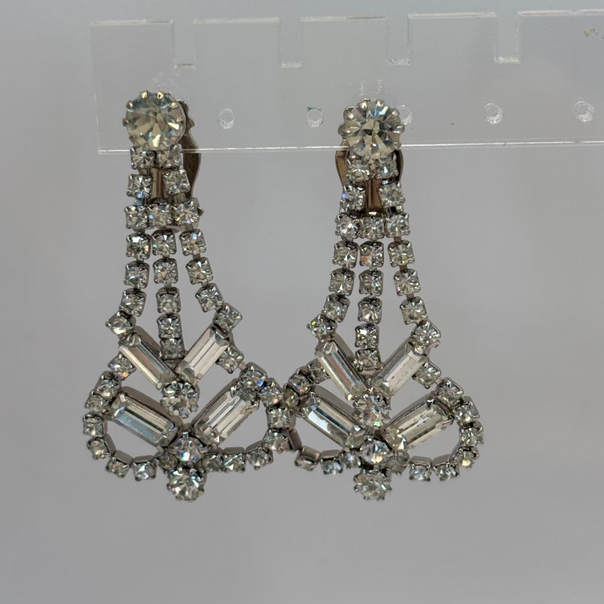 LOT 338: Vintage Silvertone Rhinestone V-Neck Choke Style Necklace & 6.5" Bracelet, Art Deco Style Rhinestone Brooch, Large Dangling Rhinestone Clip Earring & More