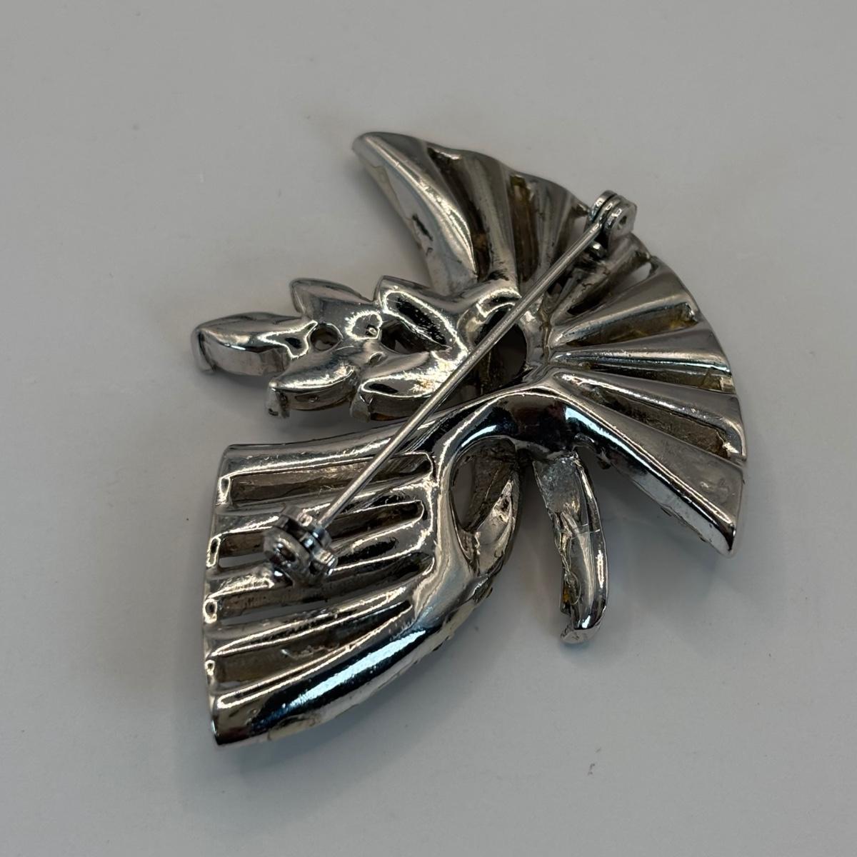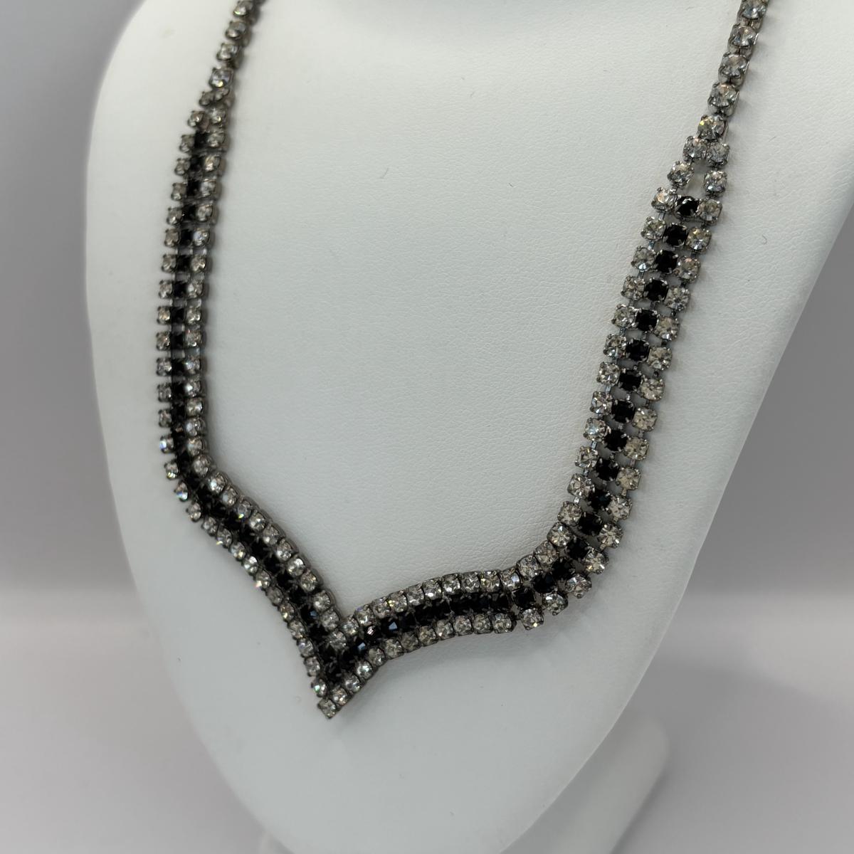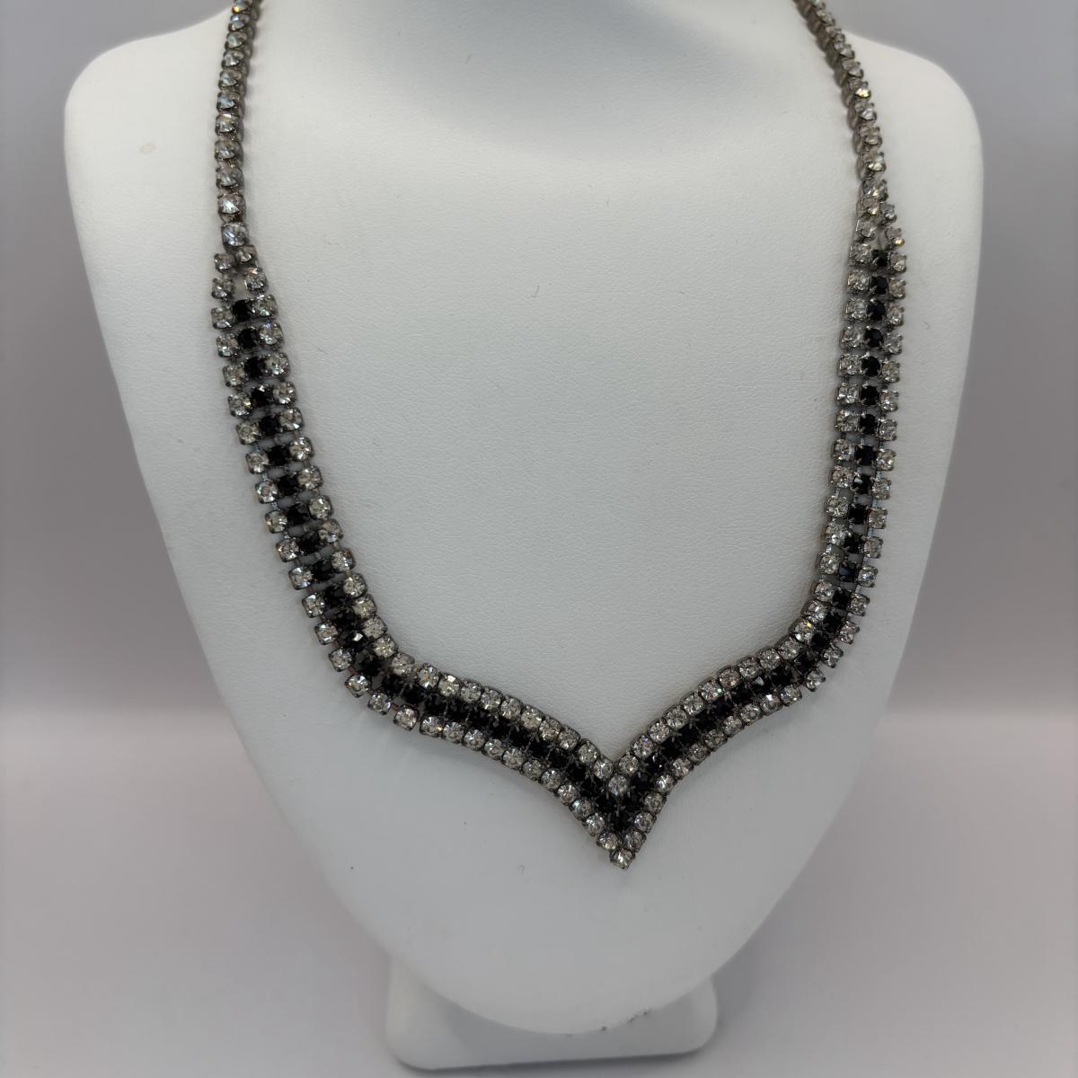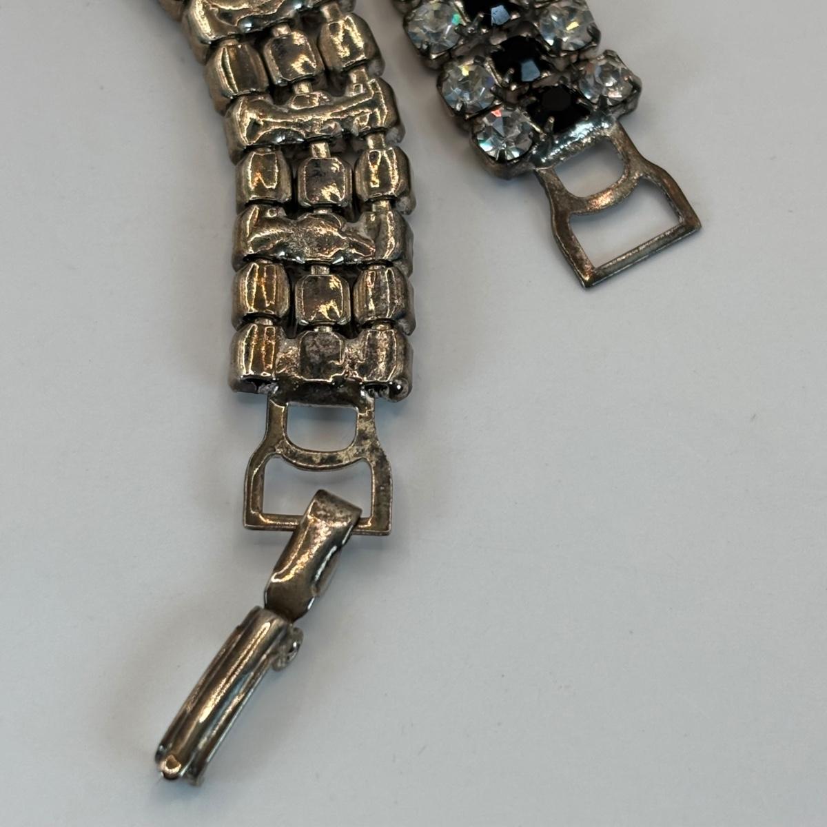 LOT 338: Vintage Silvertone Rhinestone V-Neck Choke Style Necklace & 6.5" Bracelet, Art Deco Style Rhinestone Brooch, Large Dangling Rhinestone Clip Earring & More