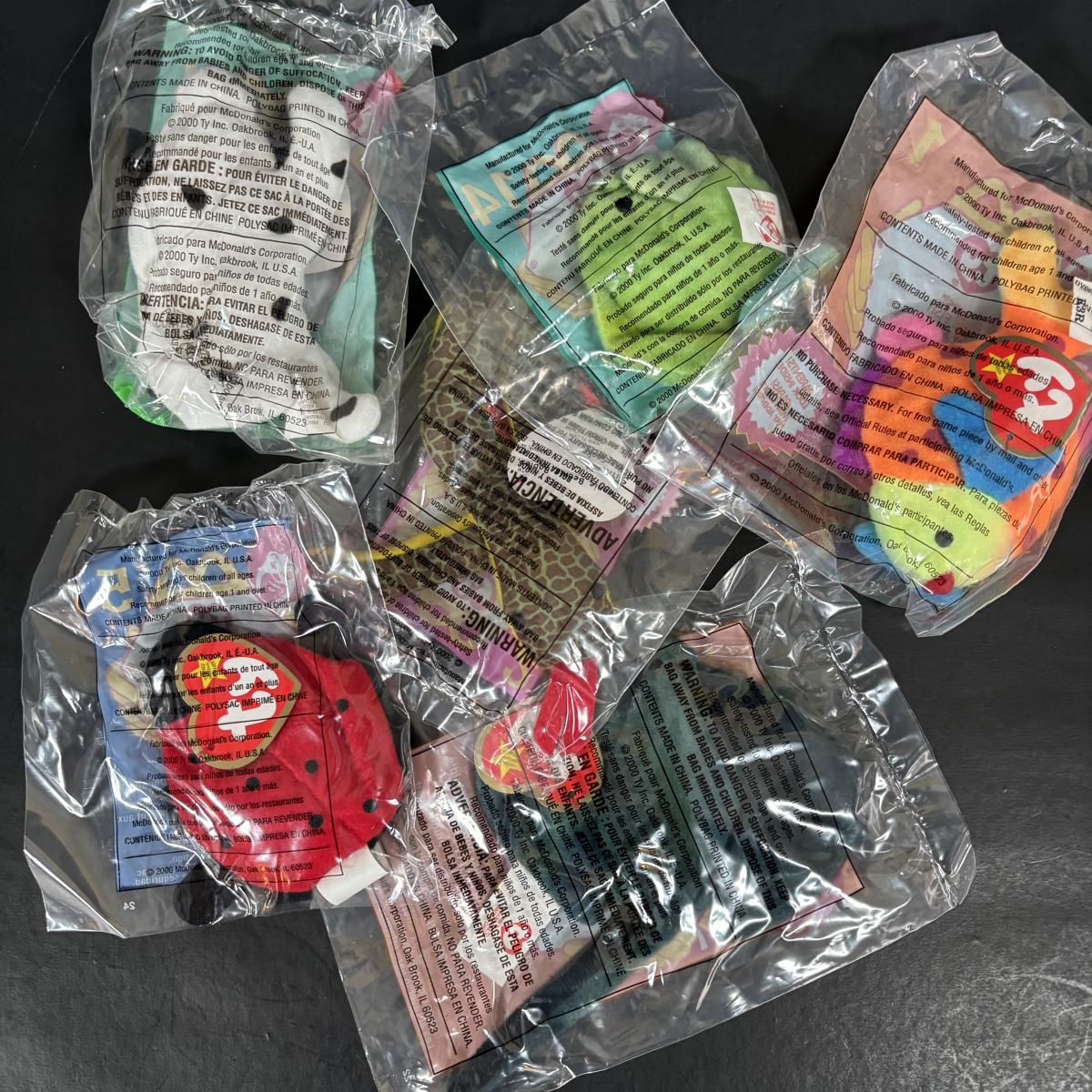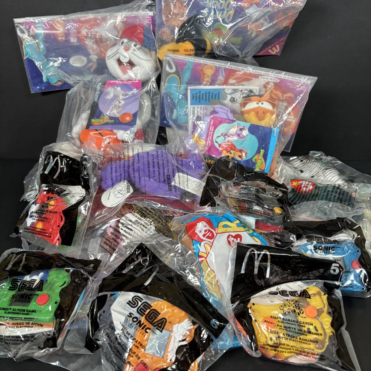 LOT 194: McDonalds NIP Happy Meal Toys: Ty Teenie Beanies Complete Set 1-18, Sega Sonic 1-6 Complete, Space Jam Nerdlucks