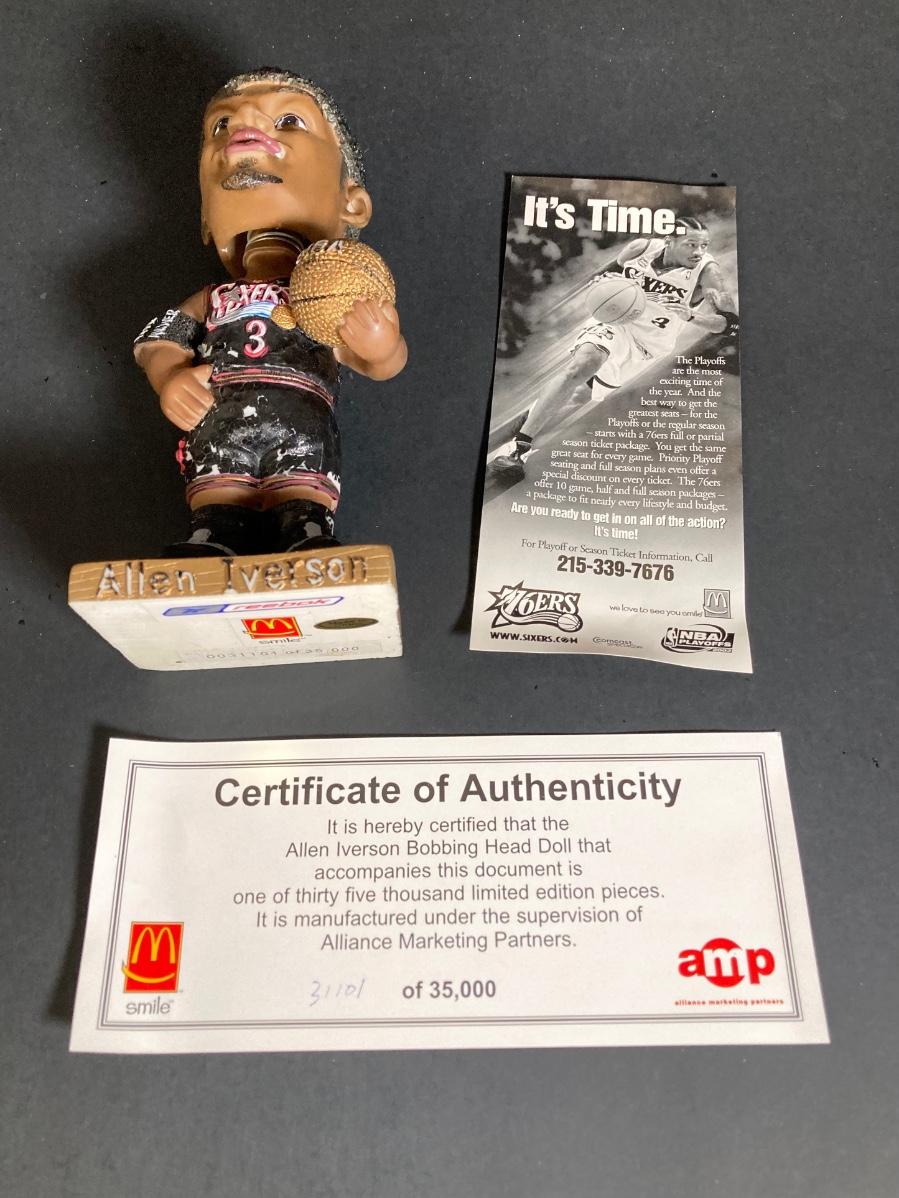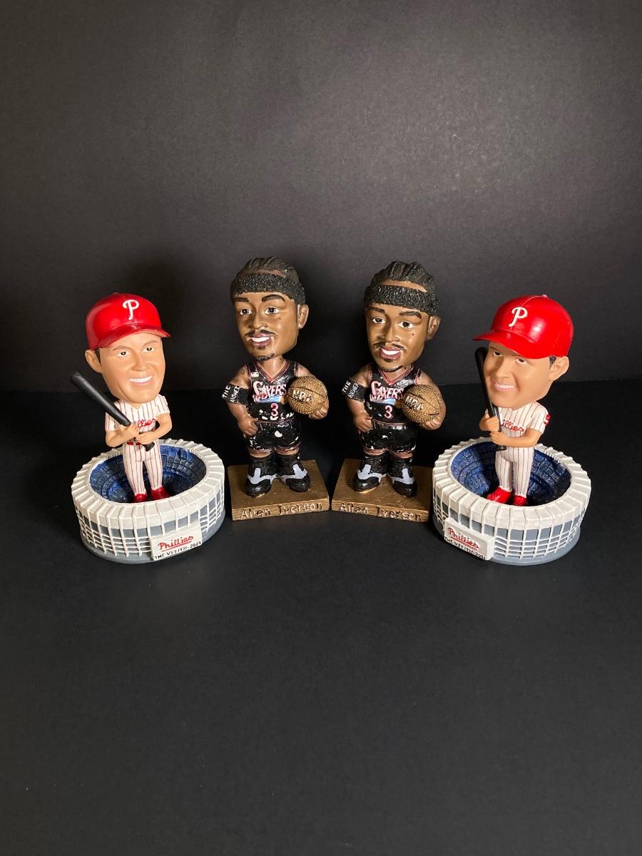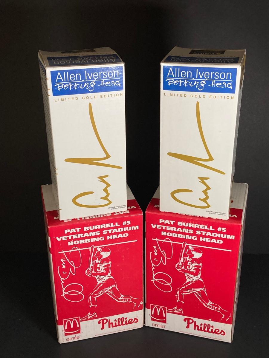 LOT 196: Philadelphia Sports / McDonald's Bobble Heads - Two Limited Edition Gold Allen Iverson (76ers) Numbered with C.O.A., Phillies Jim Thome and Pat Burrell