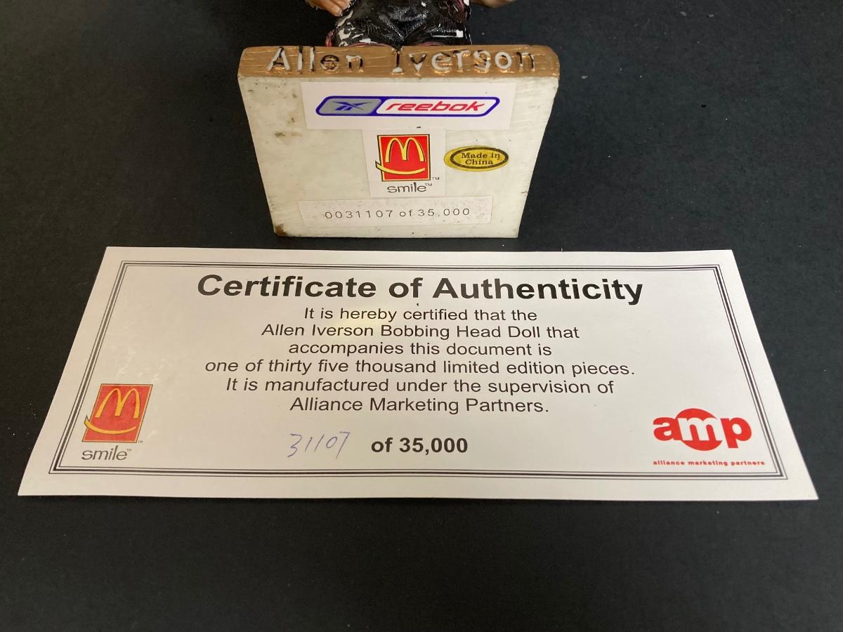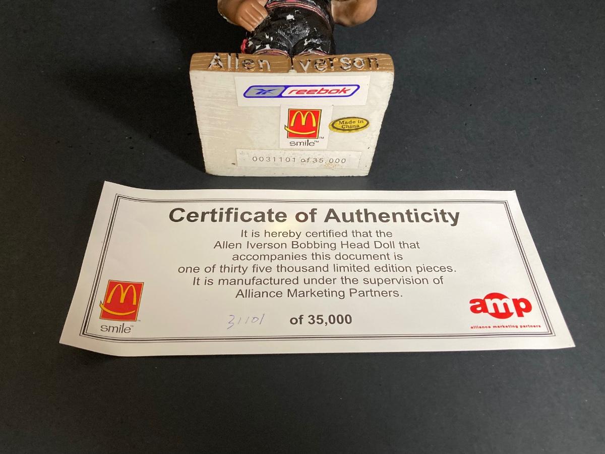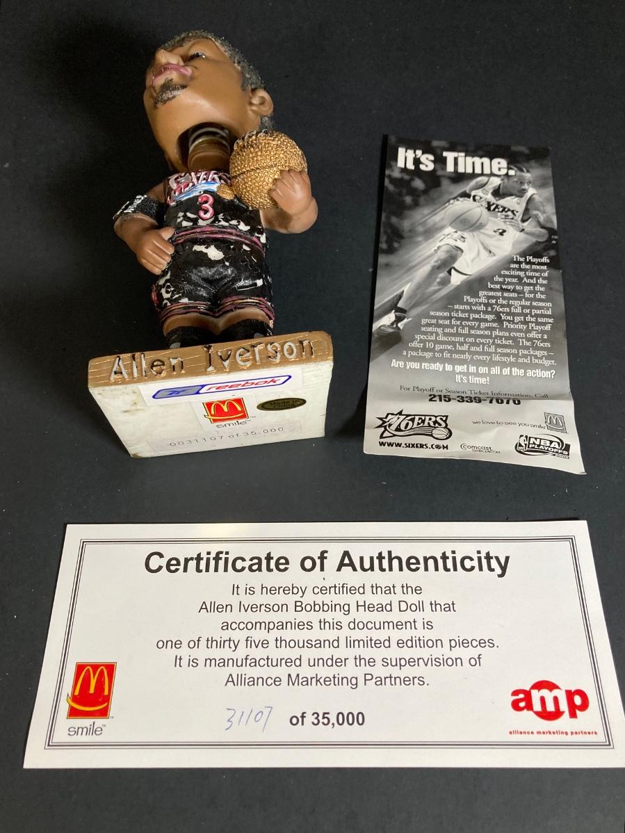 LOT 196: Philadelphia Sports / McDonald's Bobble Heads - Two Limited Edition Gold Allen Iverson (76ers) Numbered with C.O.A., Phillies Jim Thome and Pat Burrell