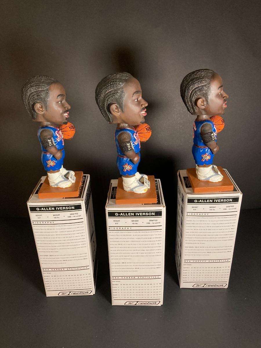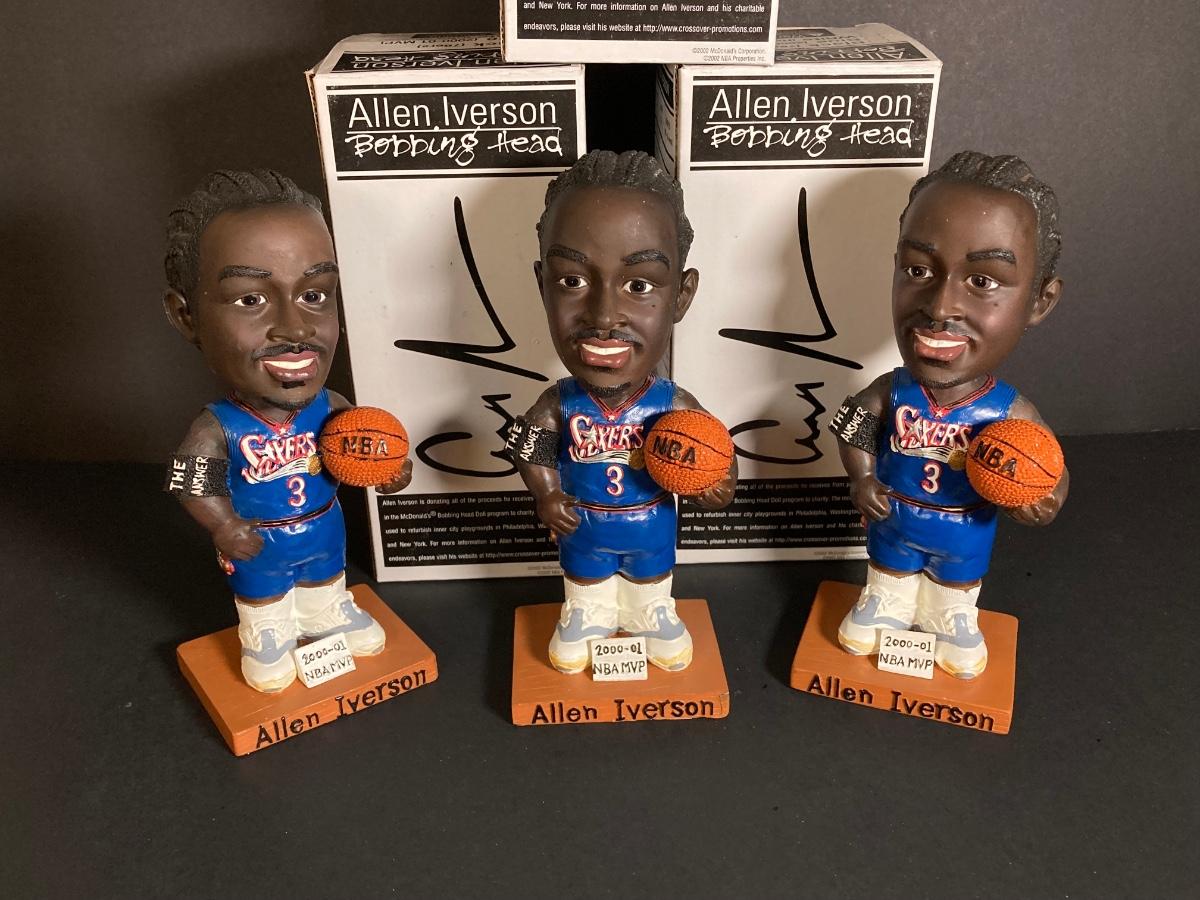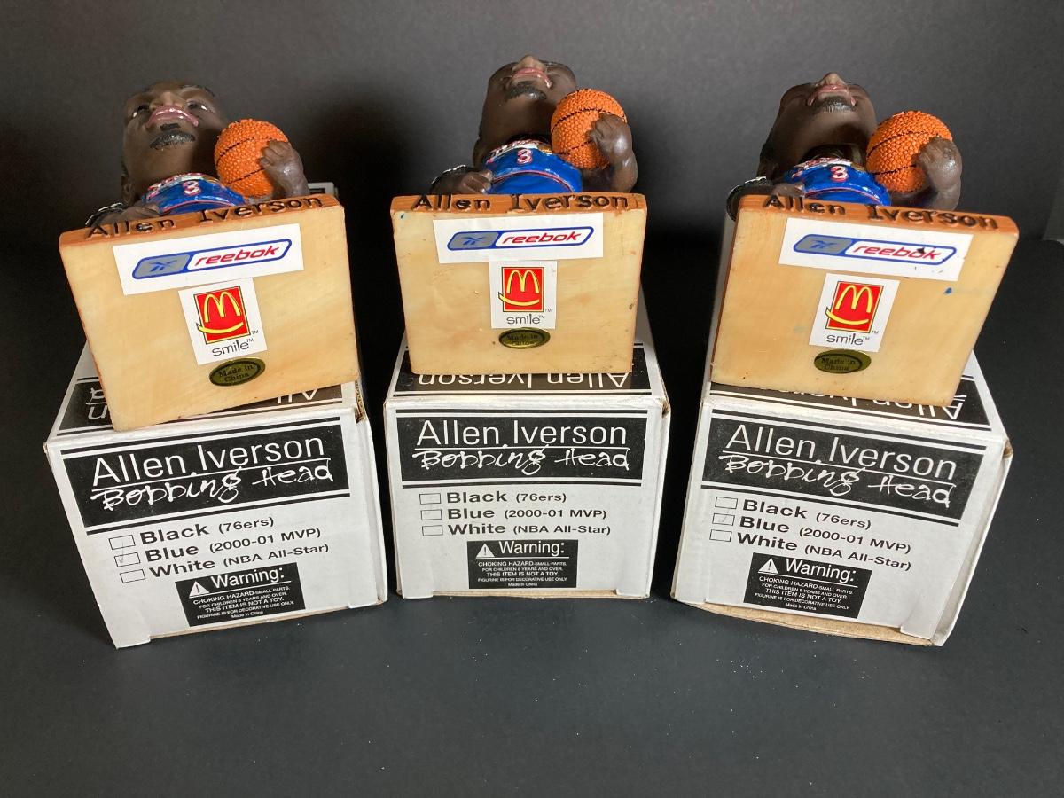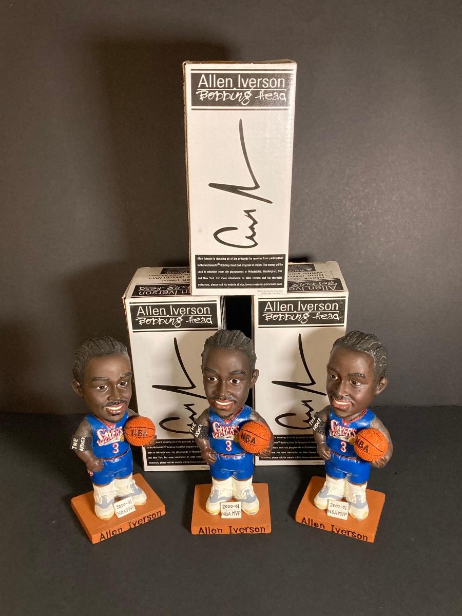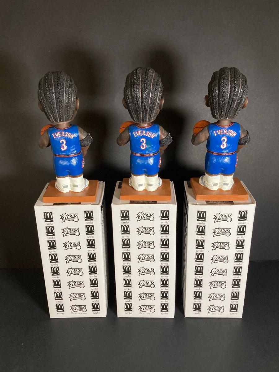 LOT 197: Three Allen Iverson (76ers) NBA MVP Blue Jersey McDonald's / Philadelphia Sports Bobble Heads