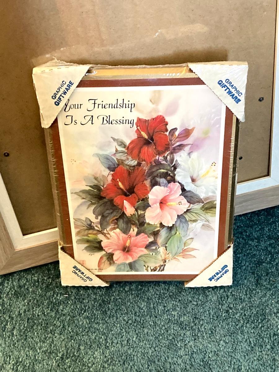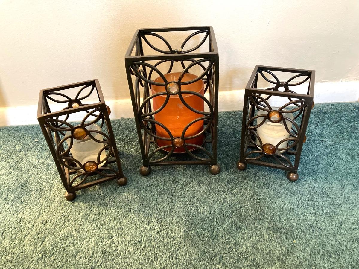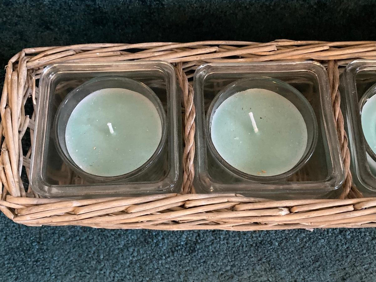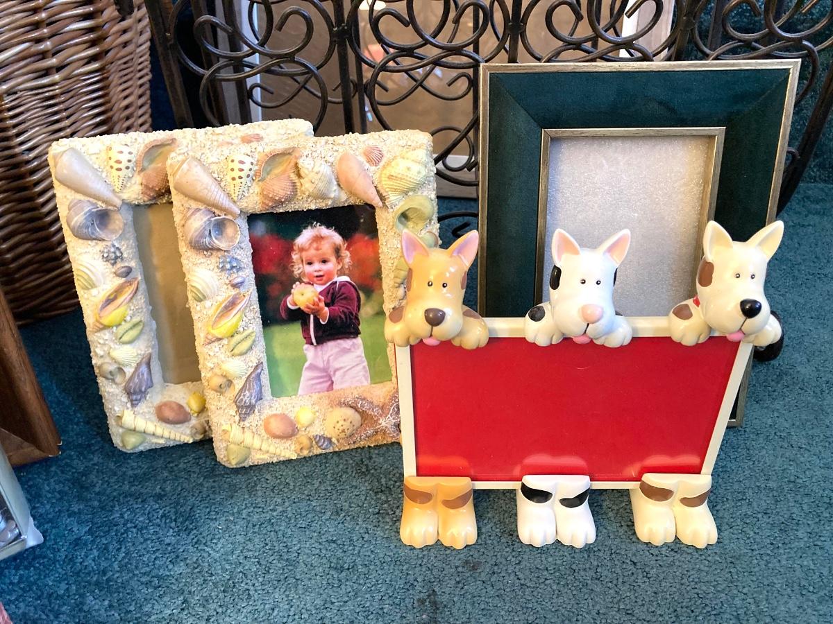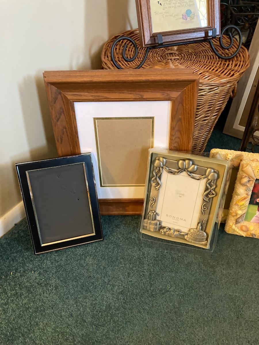 LOT 202: Large Home Decor Collection - Wicker Basket, Frames, Easel, Prints, Candles, Candle Holders and More