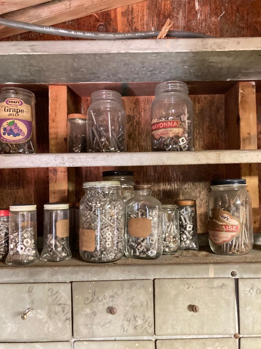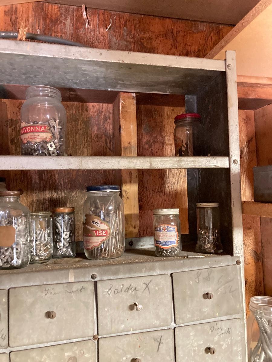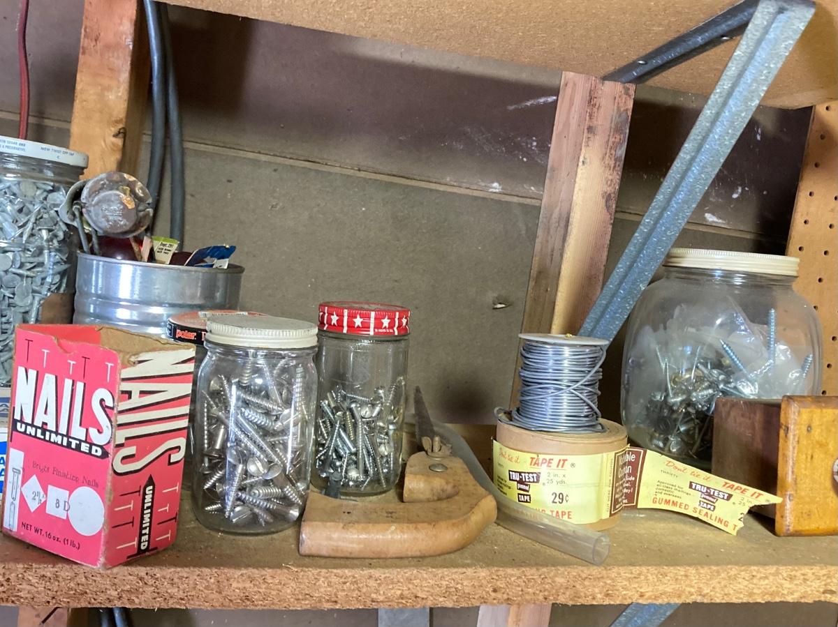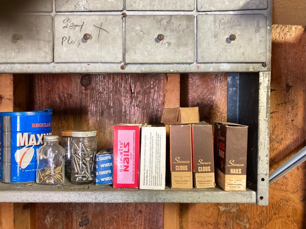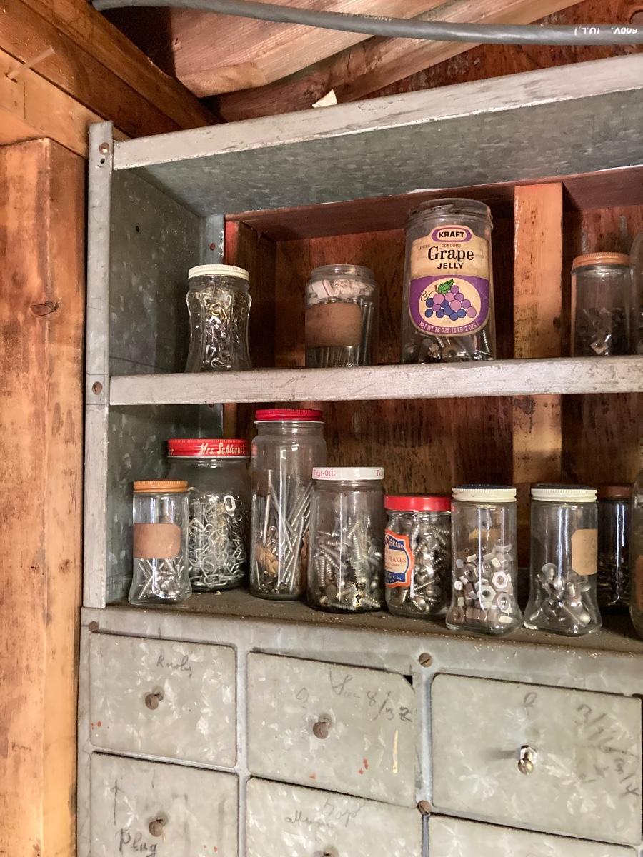 LOT 204: Large Galvanized Hardware Storage / Organizer with Contents, Including Items on Two Shelves