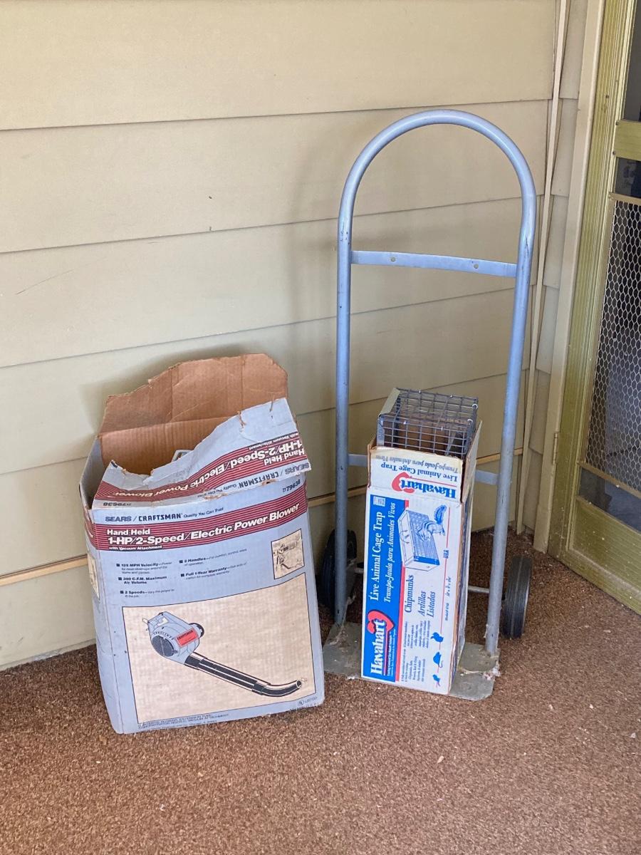 LOT 206: Craftsman Electric Power Blower, Milwaukee Hand Truck and Havahart Animal Cage Trap