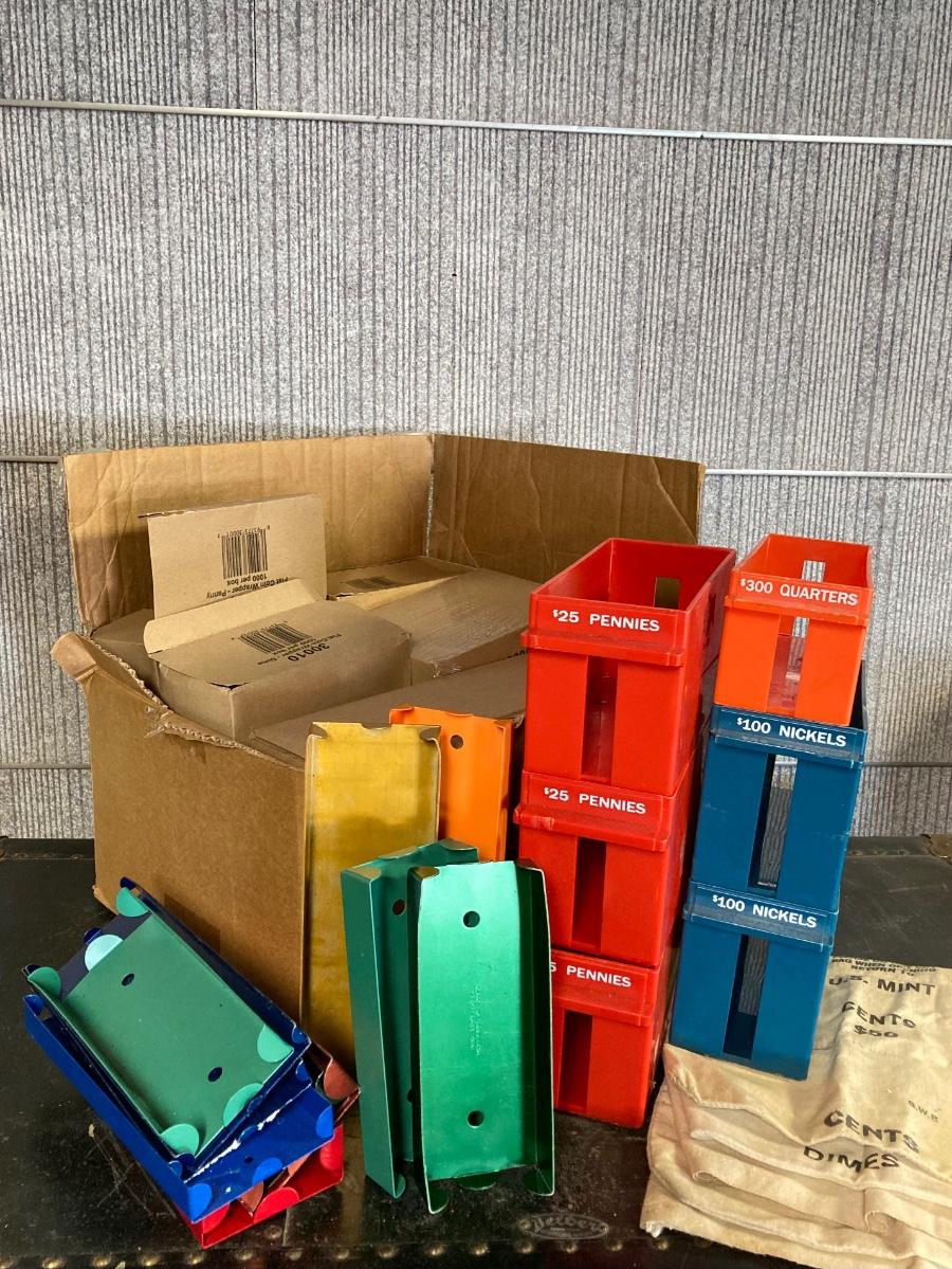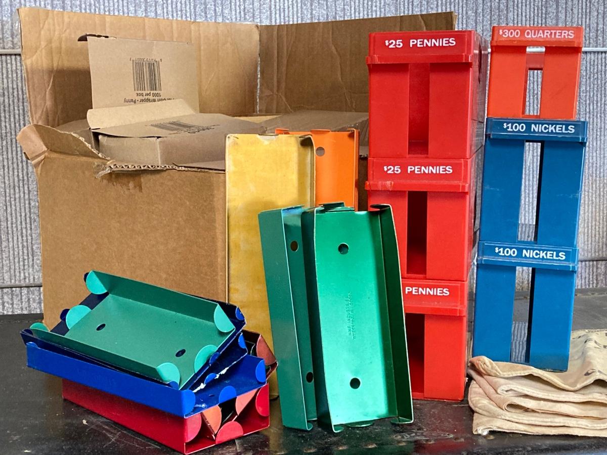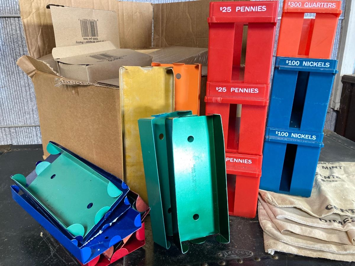 LOT 207: Large Lot of Currency Holders / Wrappers, Vintage Money Bags, Tape Dispenser and Rolls of Tape