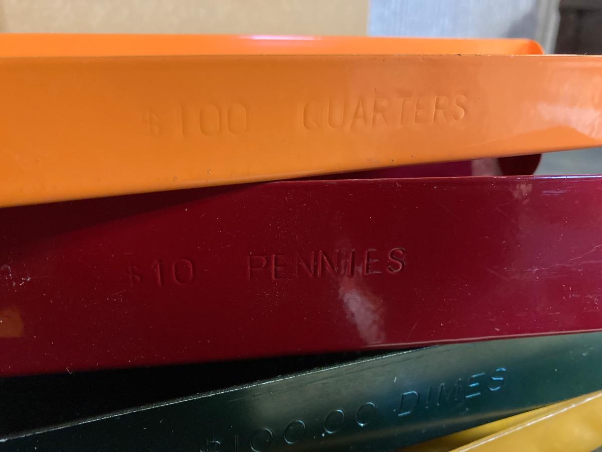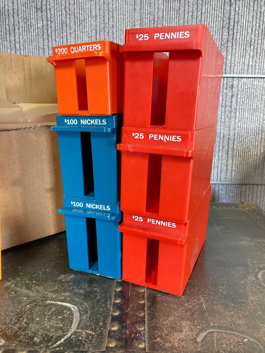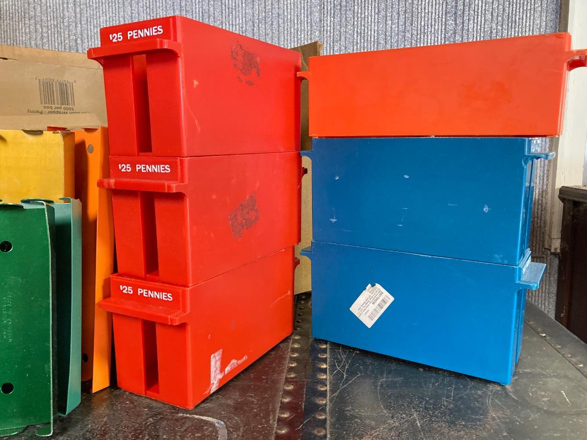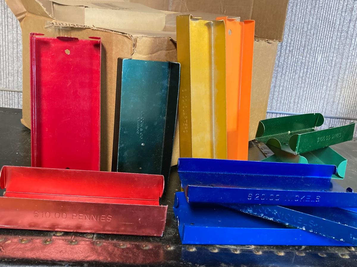 LOT 207: Large Lot of Currency Holders / Wrappers, Vintage Money Bags, Tape Dispenser and Rolls of Tape