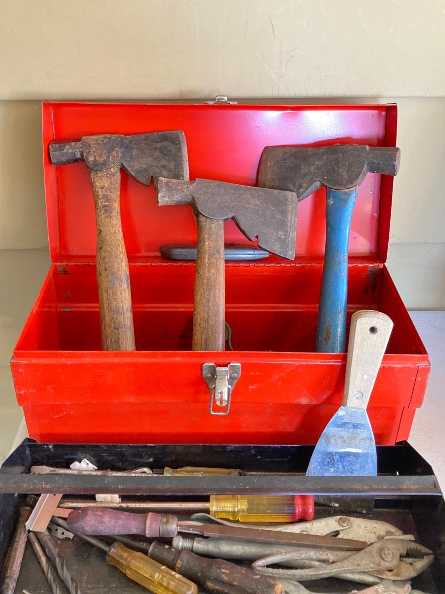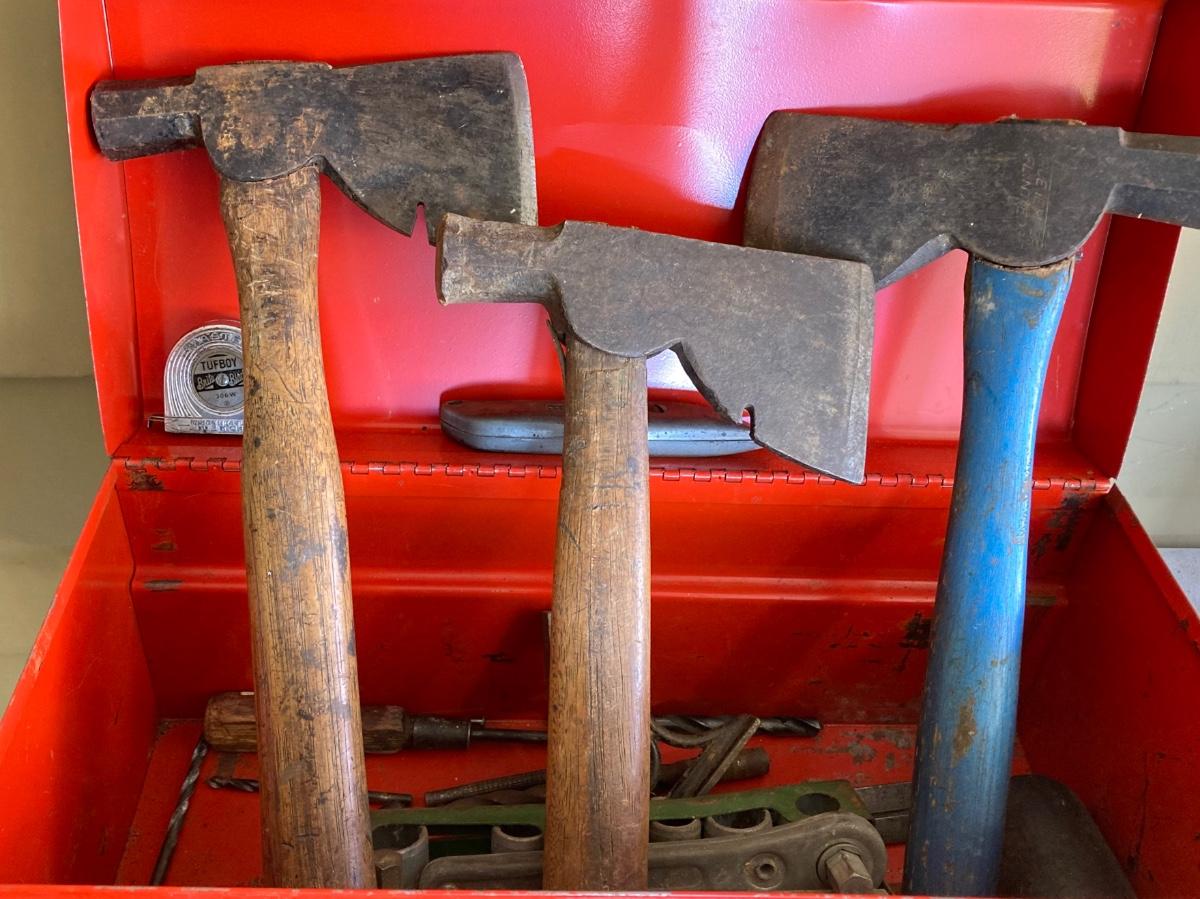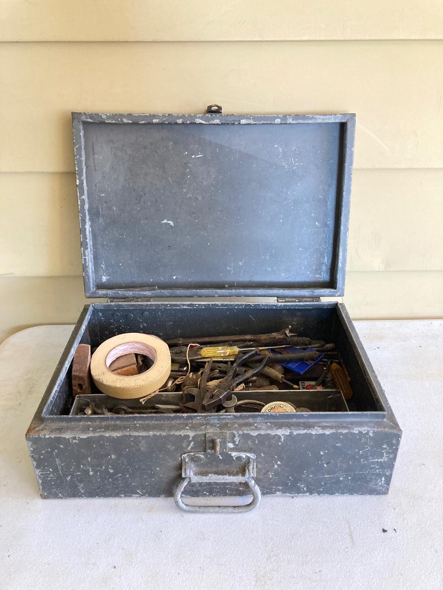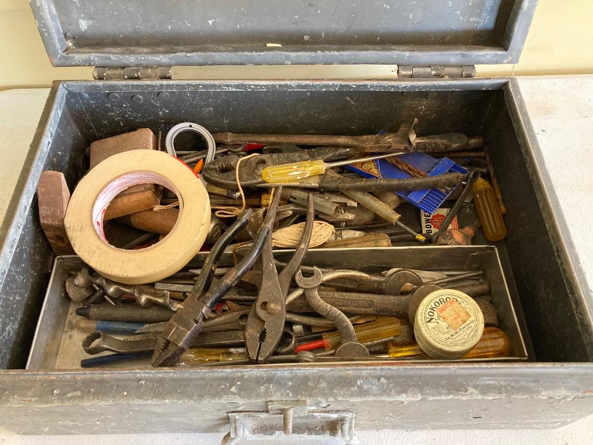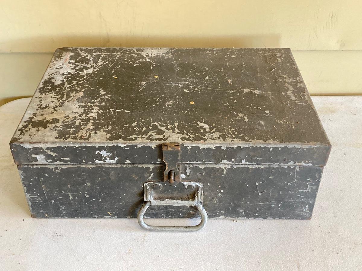 LOT 208: Two Vintage Metal Toolboxes with Contents - Red Mopar Dodge and Olive Drab
