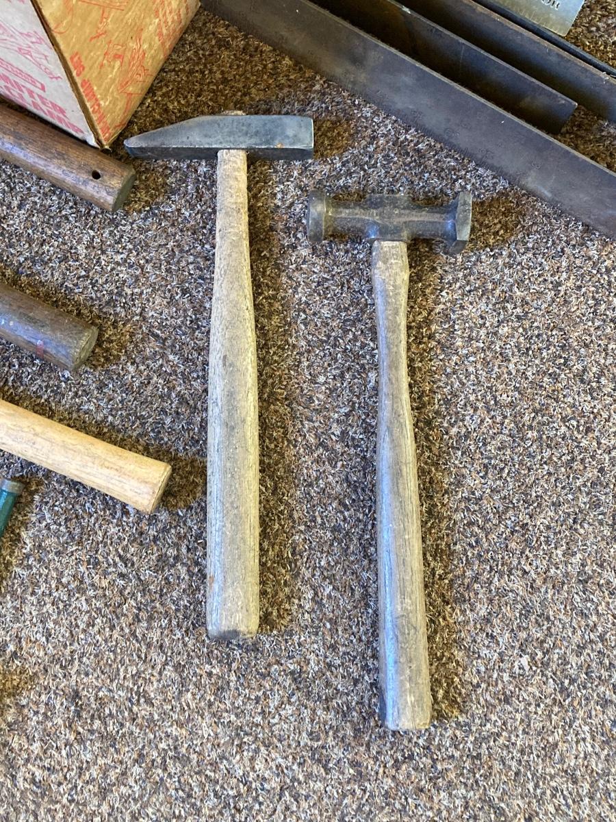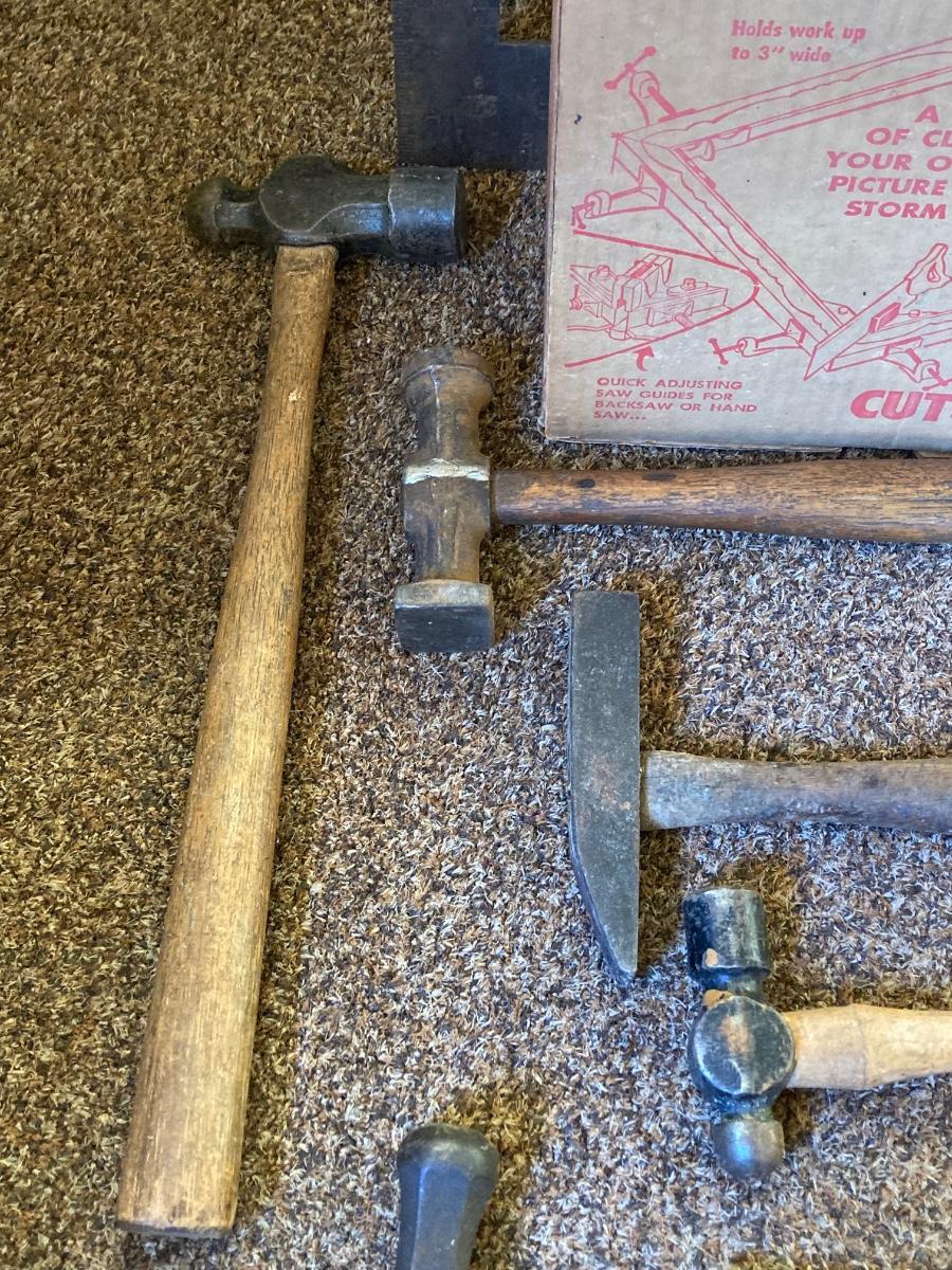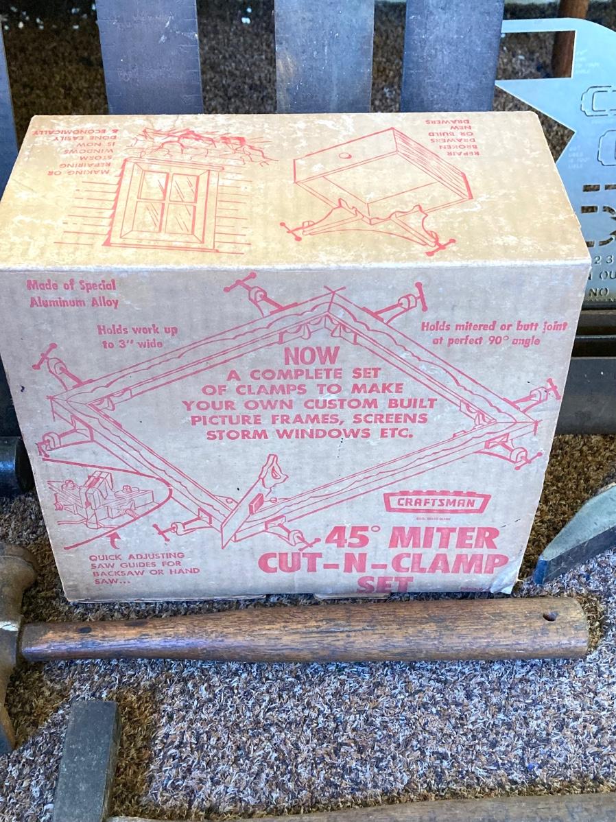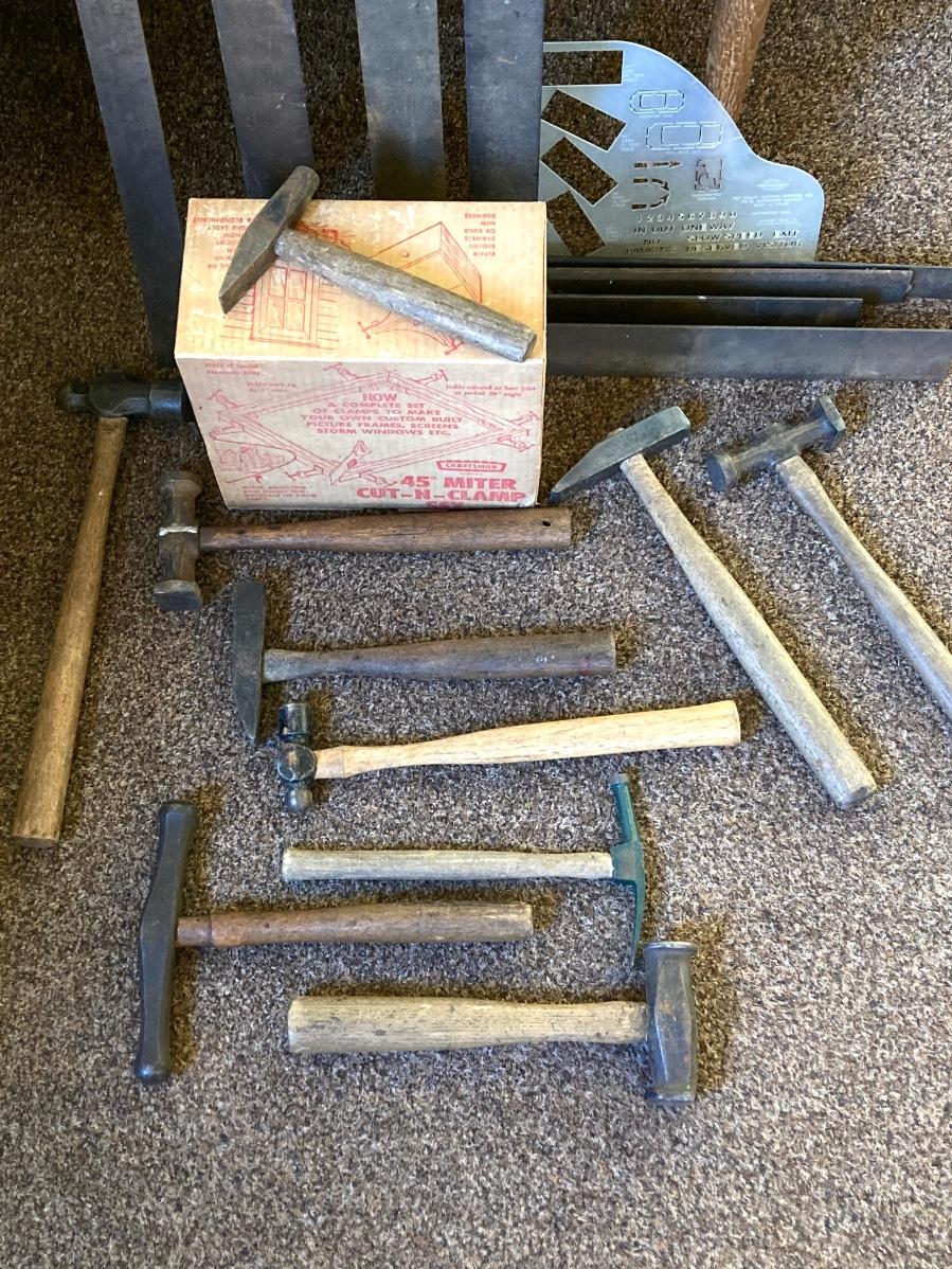 LOT 216: Craftsman Miter Cut-N-Clamp Set in Original Box with Large Collection of Hammers, Metal Square Angle Rulers and More