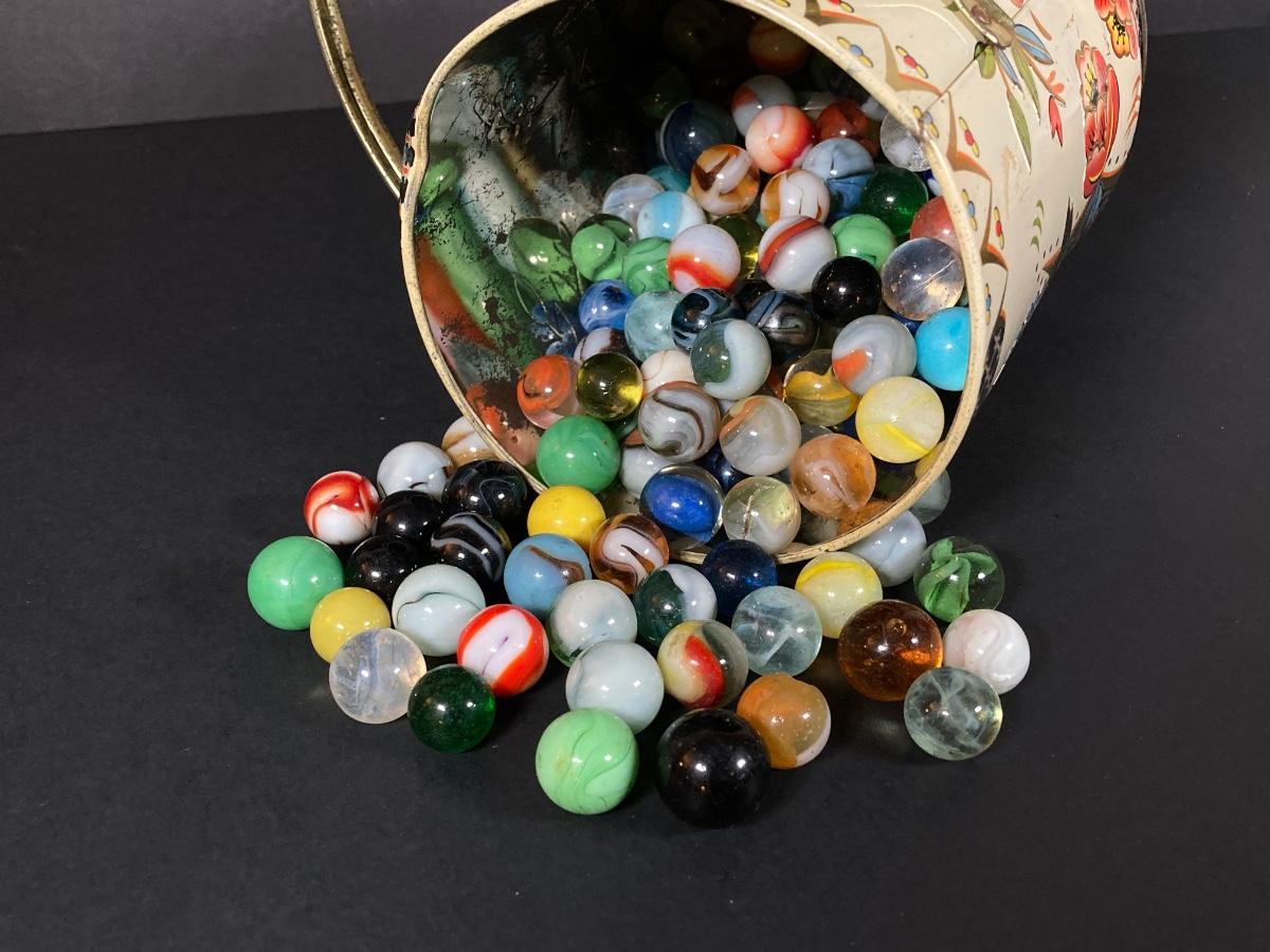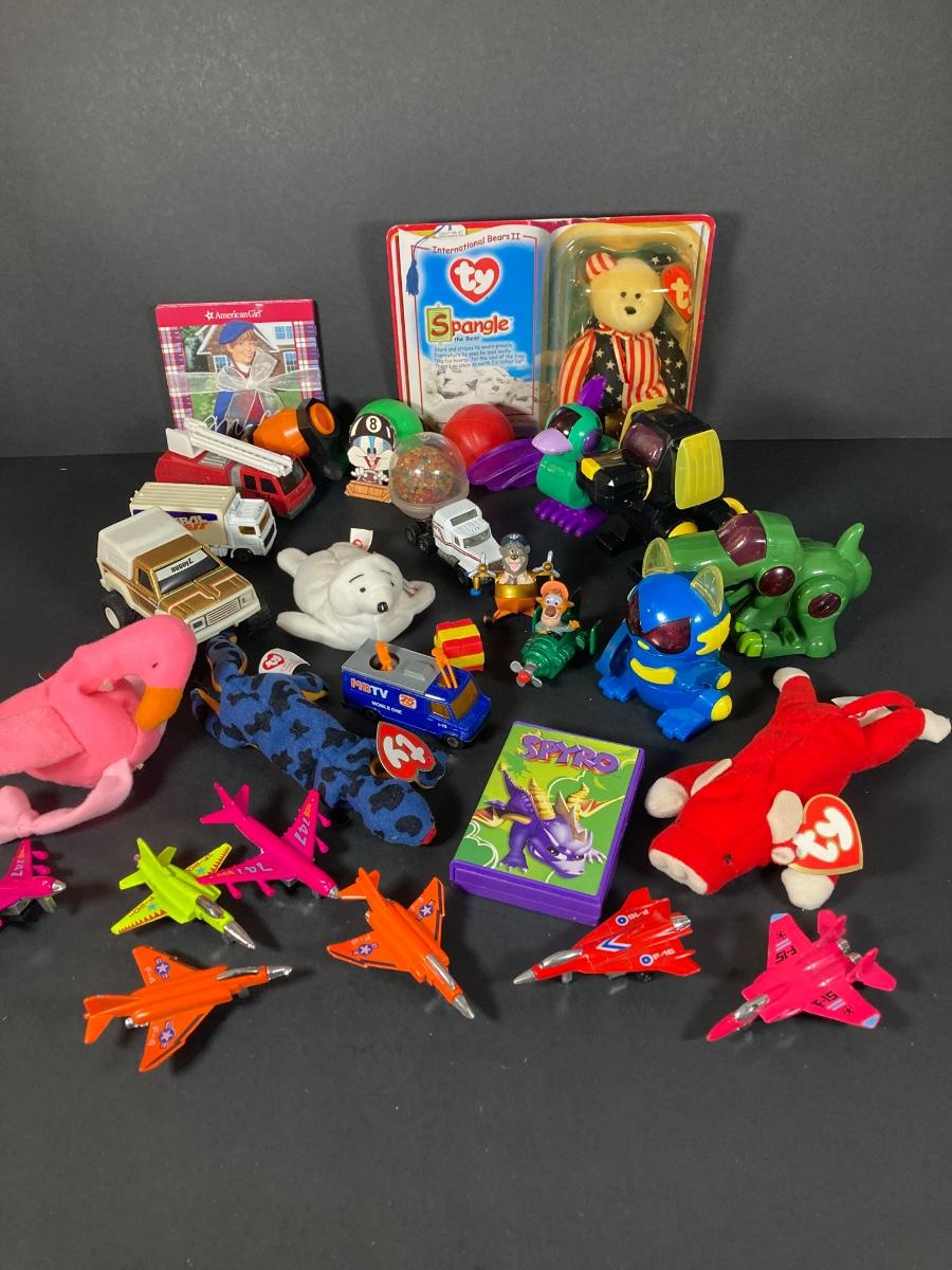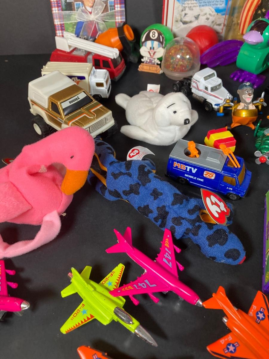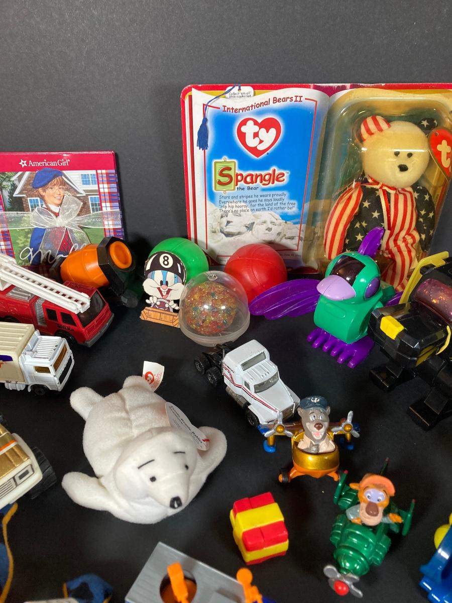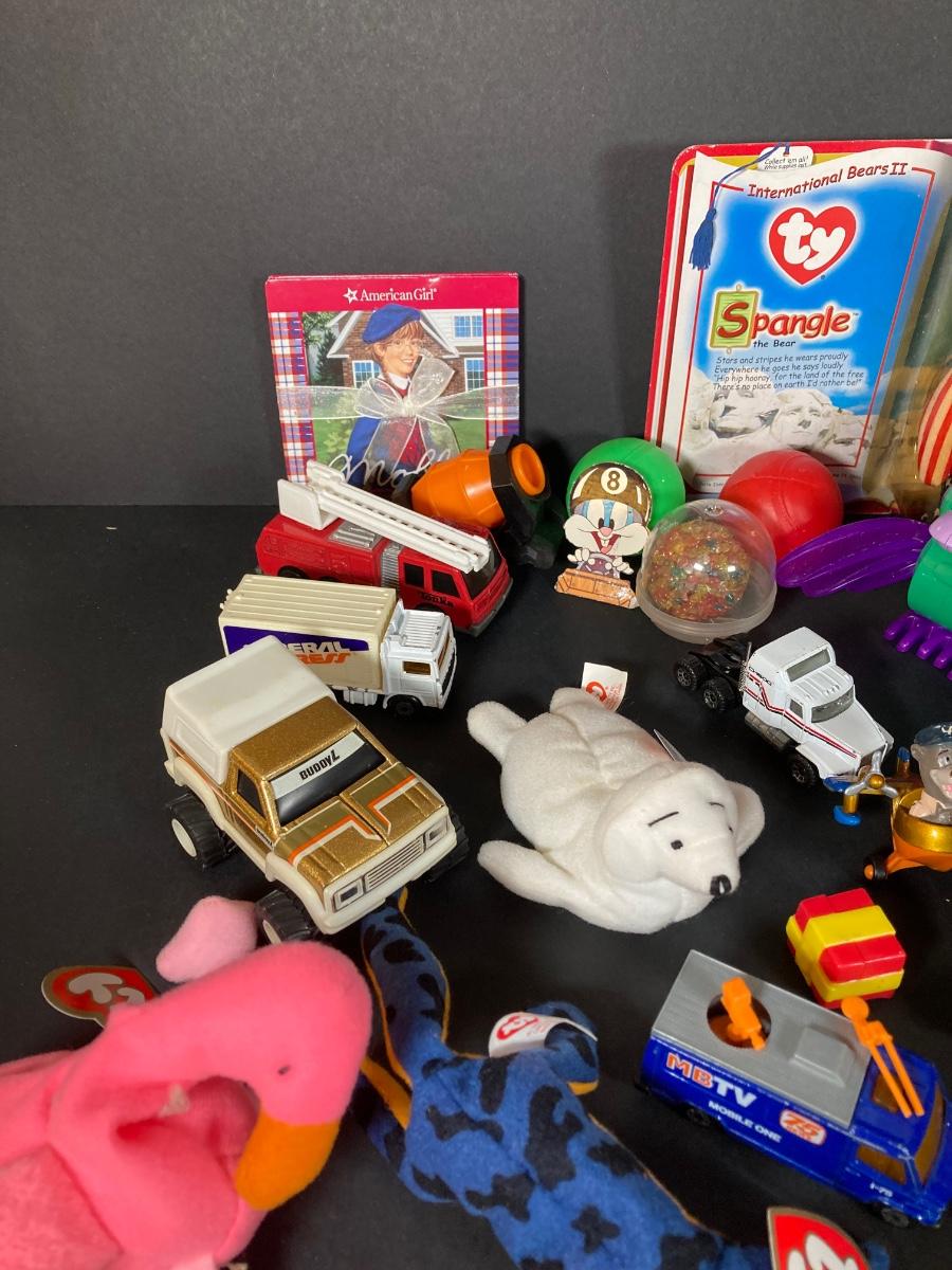 LOT 218: Vintage Toys - Marbles, Bouncy Superballs, Buddy L, Beanie Babies, McDonald's, American Girl Book and More