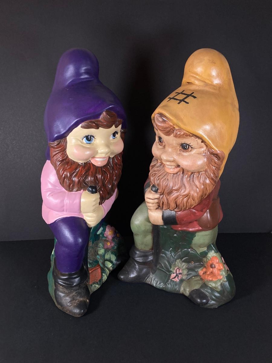 LOT 220: Pair of Large Hand Painted Ceramic Garden Knomes