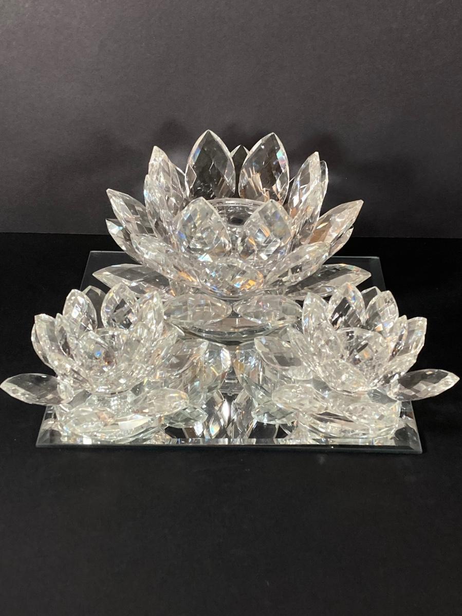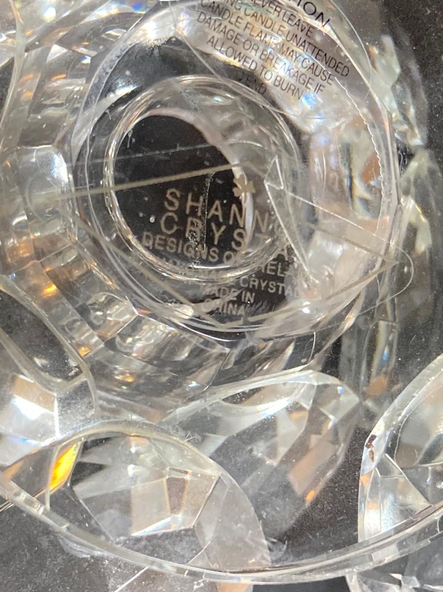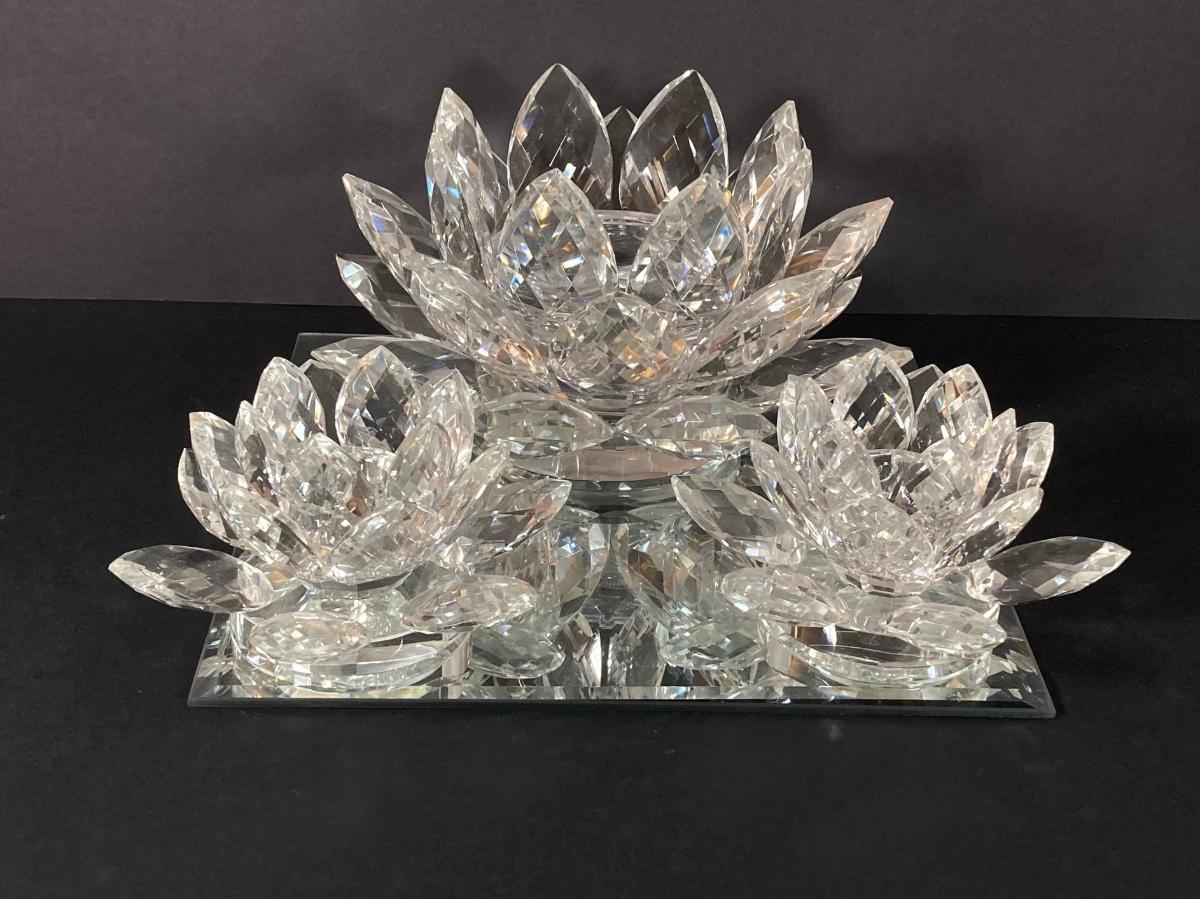 LOT 221: Three Shannon Crystal Candle Holders with Mirror Base