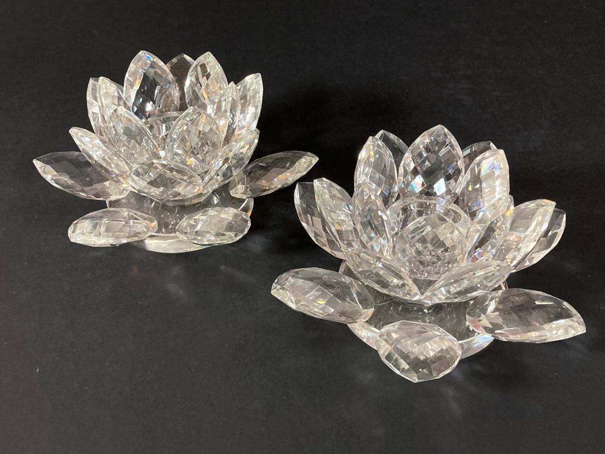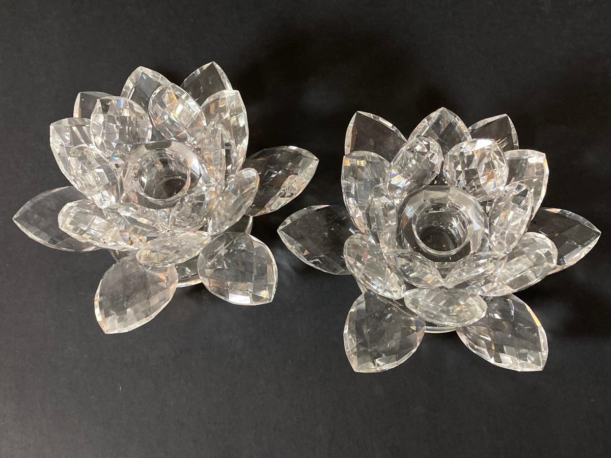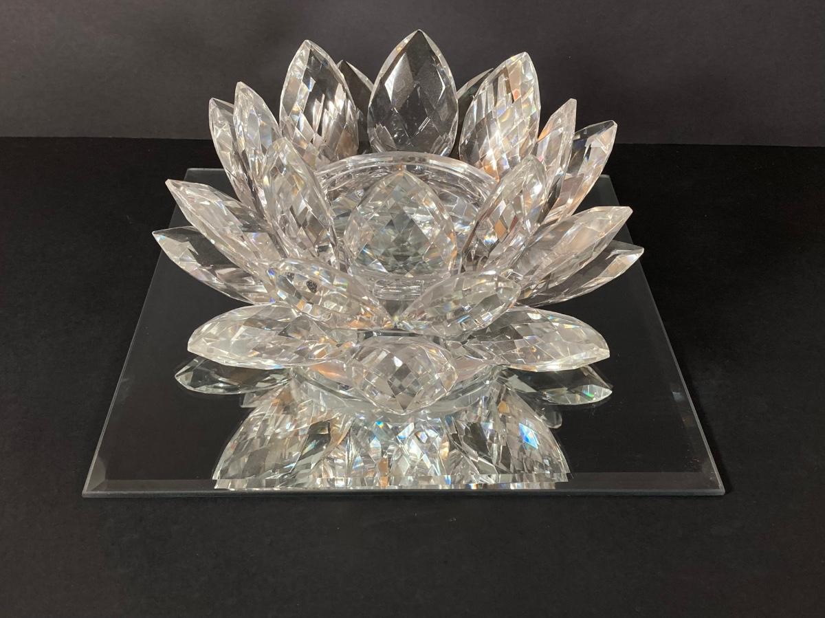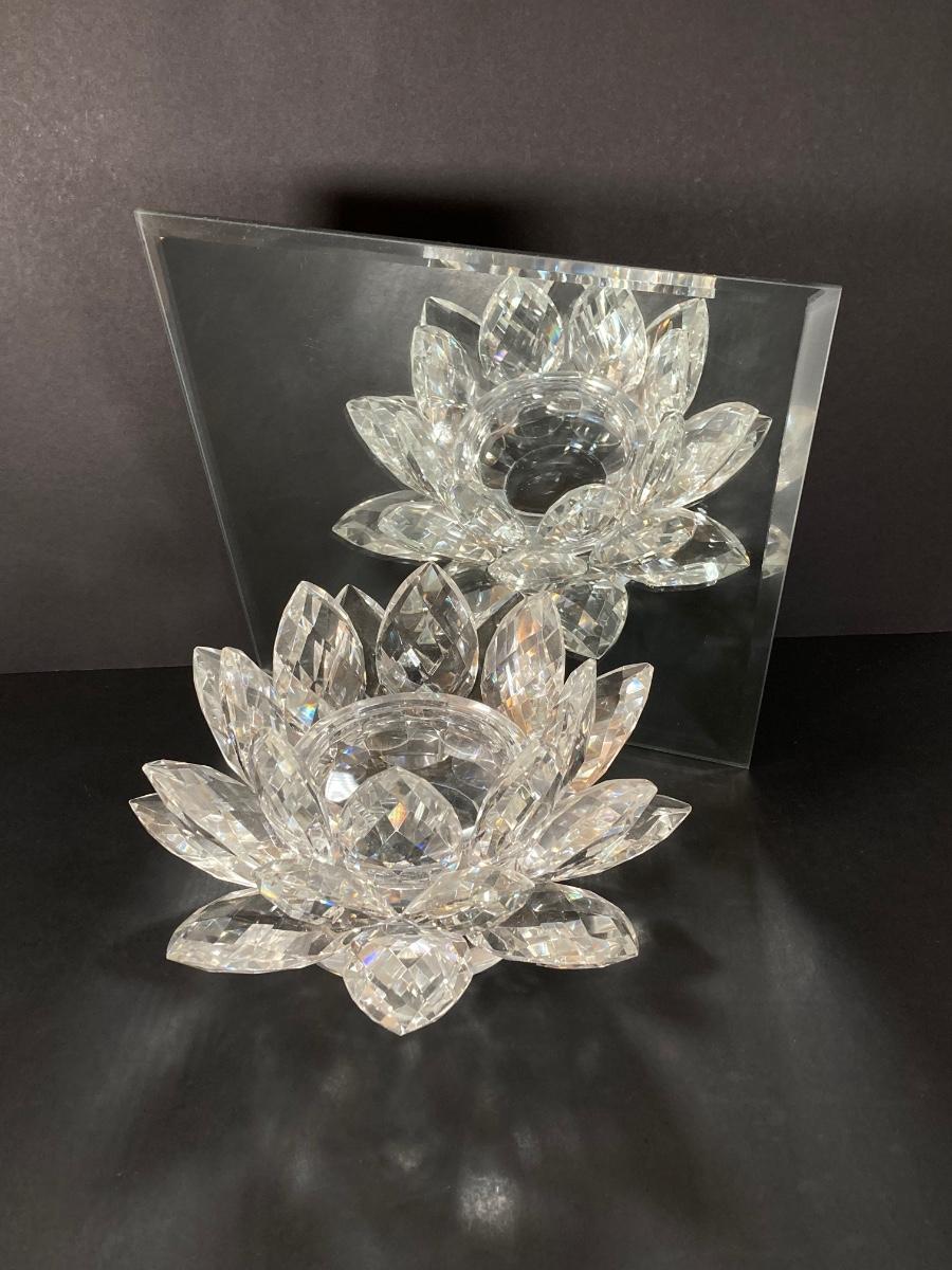 LOT 221: Three Shannon Crystal Candle Holders with Mirror Base