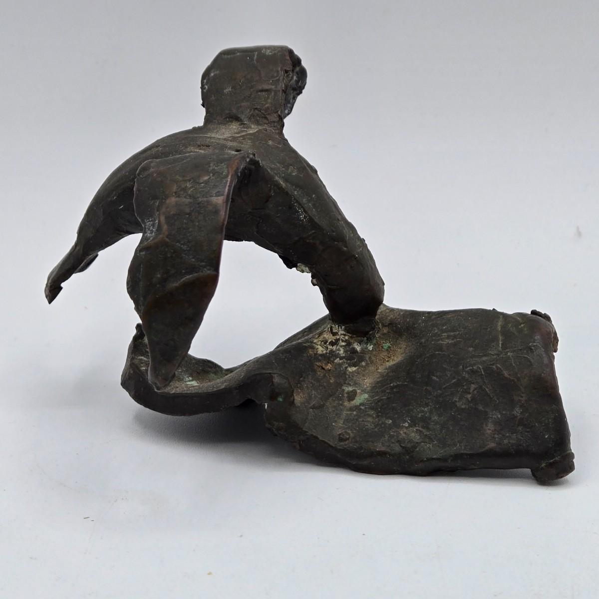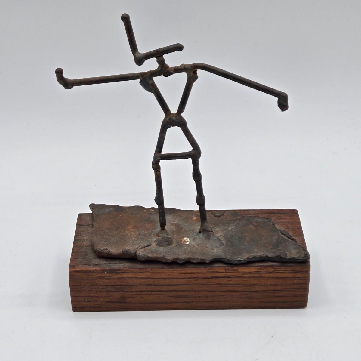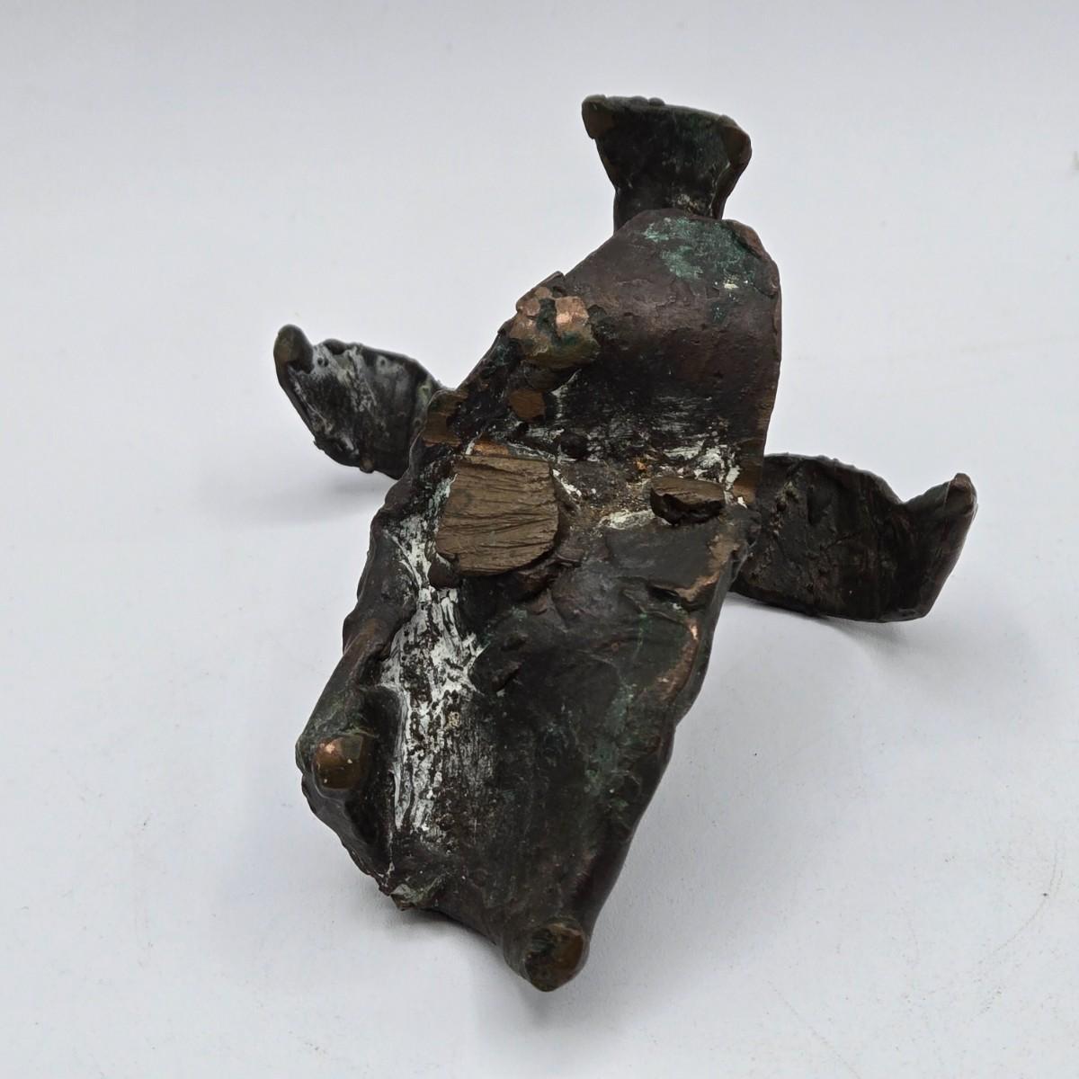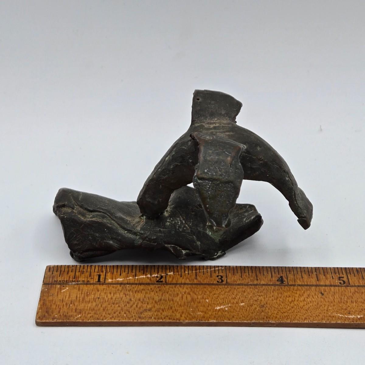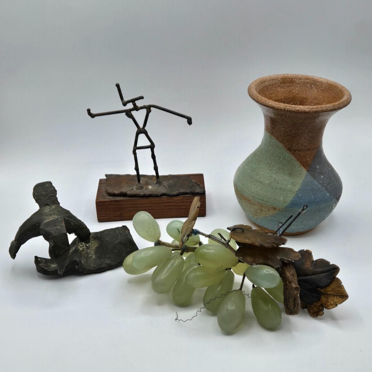 LOT 5X: Vintage Asian Carved Stone Grapes With Leaves, Metal Sculptures, and Signed Hand-Made Clay Vase