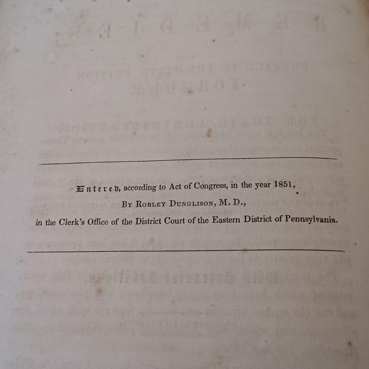 LOT 59L: Wood's Practice of Medicine 1855, Lawrence' Diseases of the Eye 1813 & Dunglison's New Remedies 1851