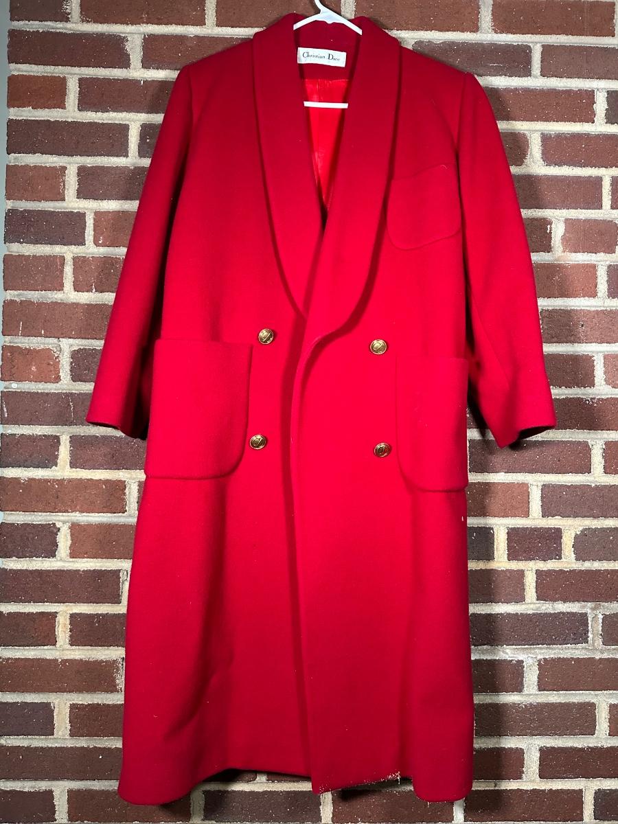LOT 80Y: Vintage Christian Dior Red Double Breasted Coat