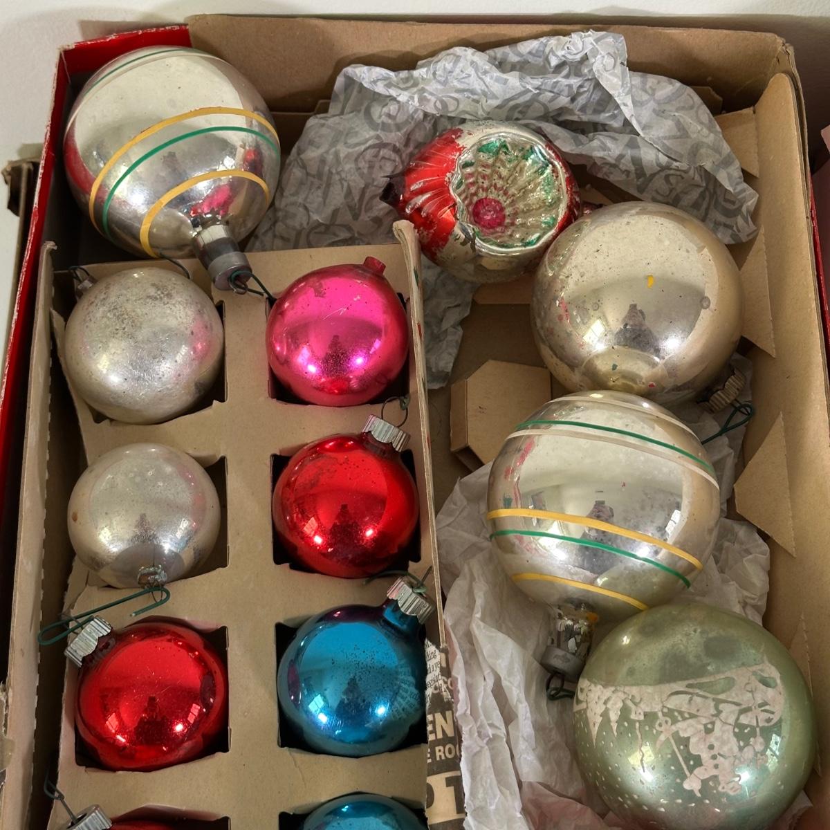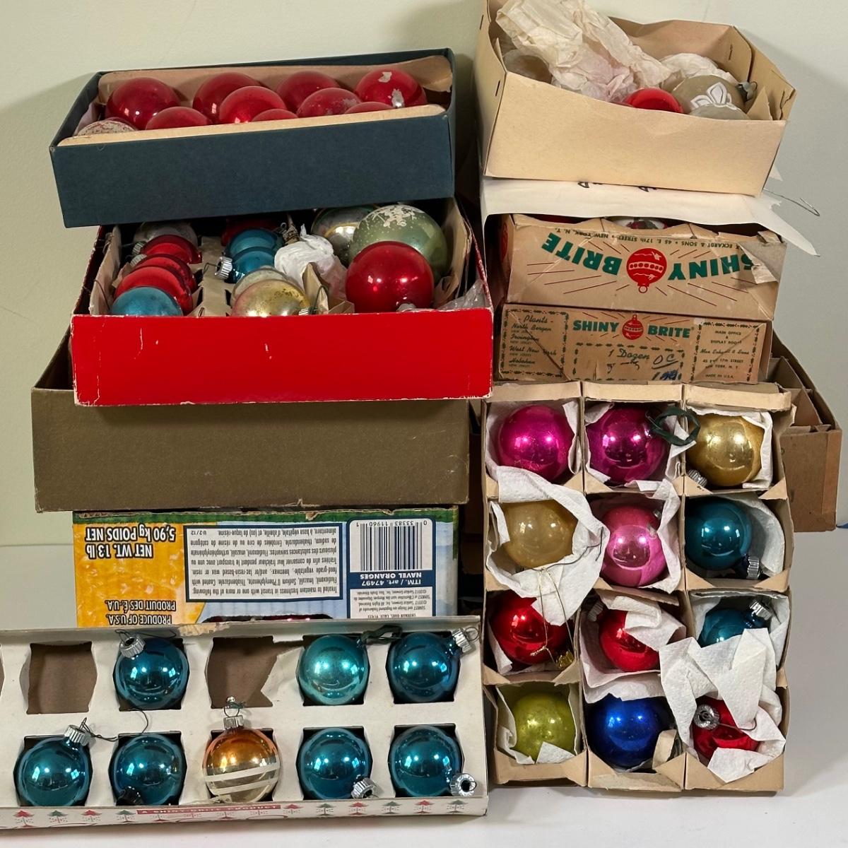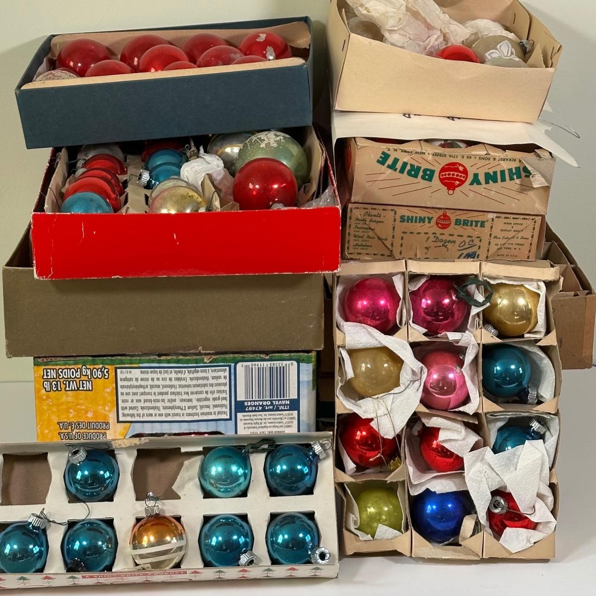 LOT 104Y: Vintage Glass Ball Christmas Ornaments - Shiny Brite & More