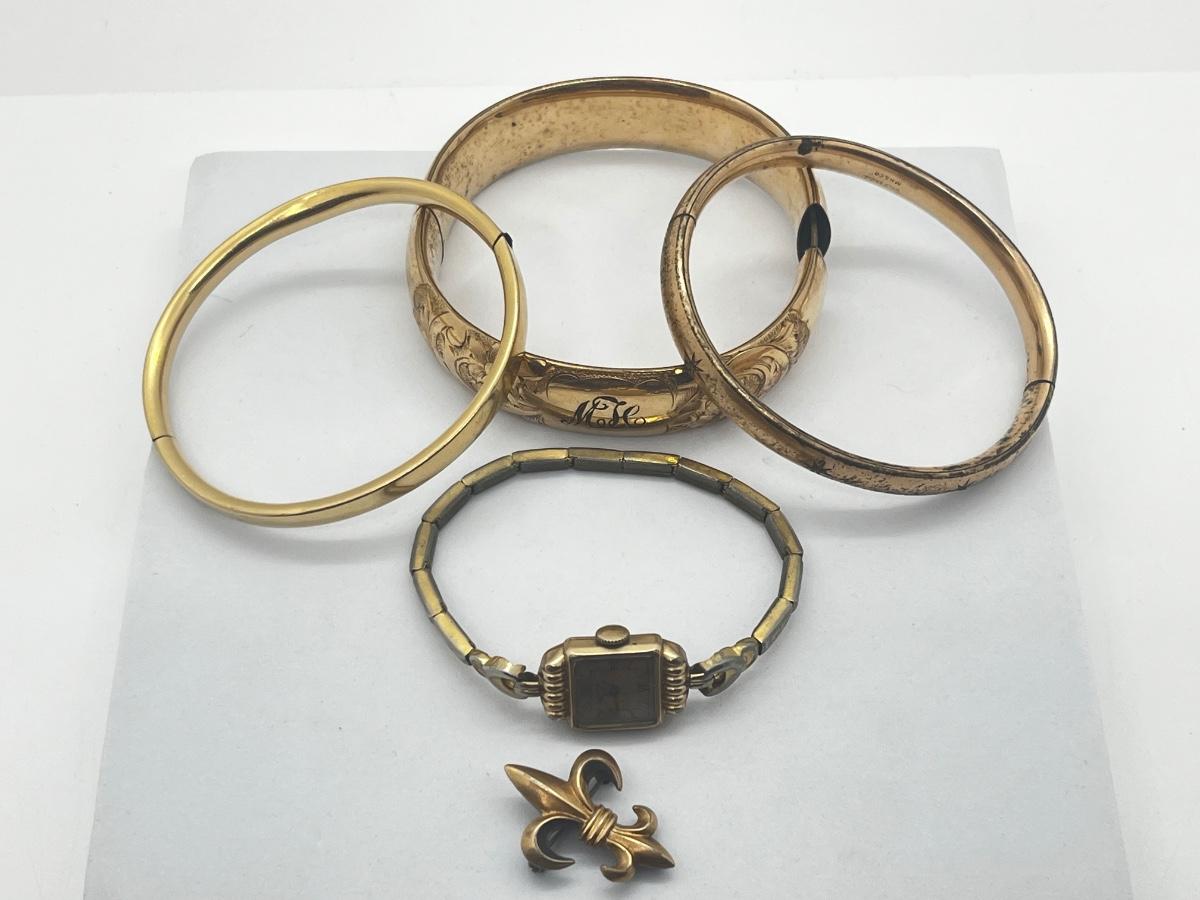 LOT 195J: Vintage Gold Filled Jewelry: Elgin 10k Watch and More