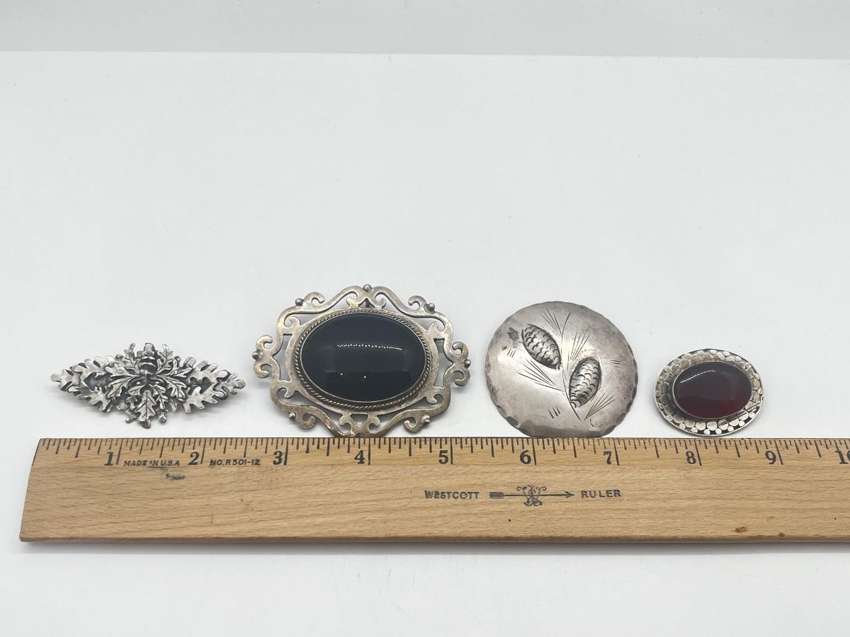 LOT 208J: Vintage Sterling Silver Pins/Brooches - 77.2 GTW Marks- Stuart Nye, Great Falls Metal Works, Taxco Mexico and 925