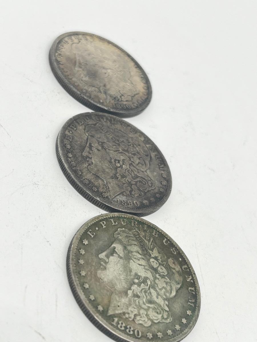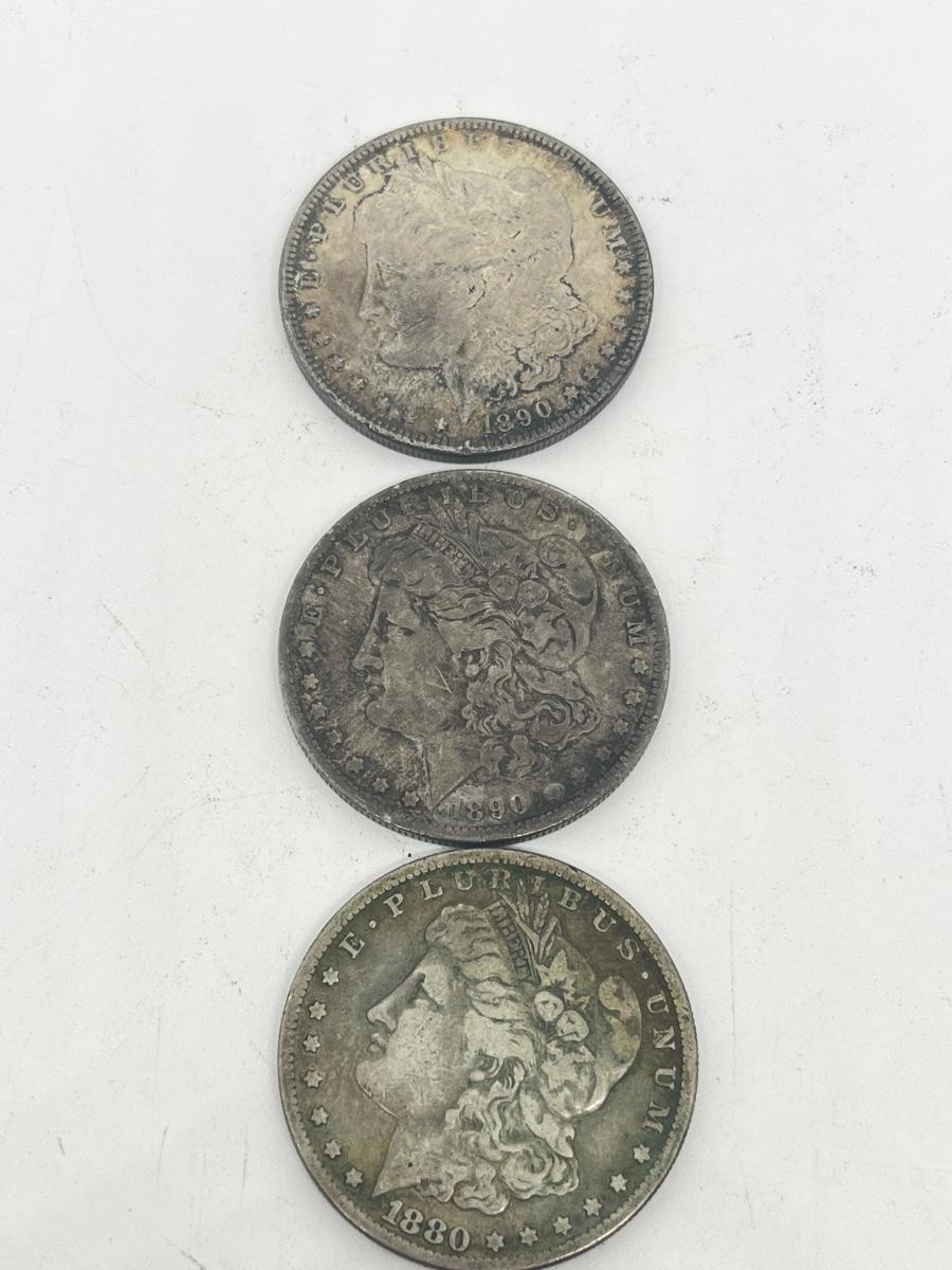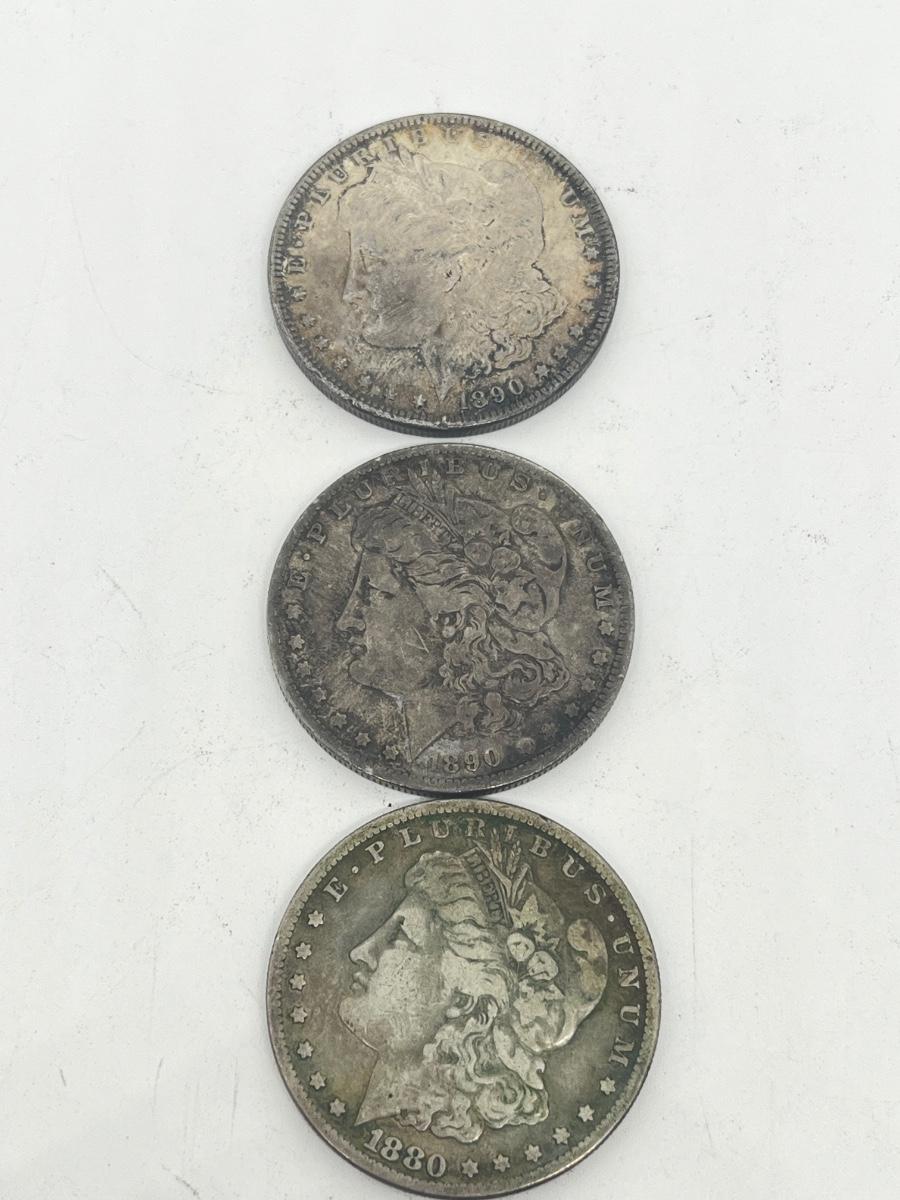 LOT 234J: Three Antique Silver Morgan Dollars - 1880 and 1890 (2)