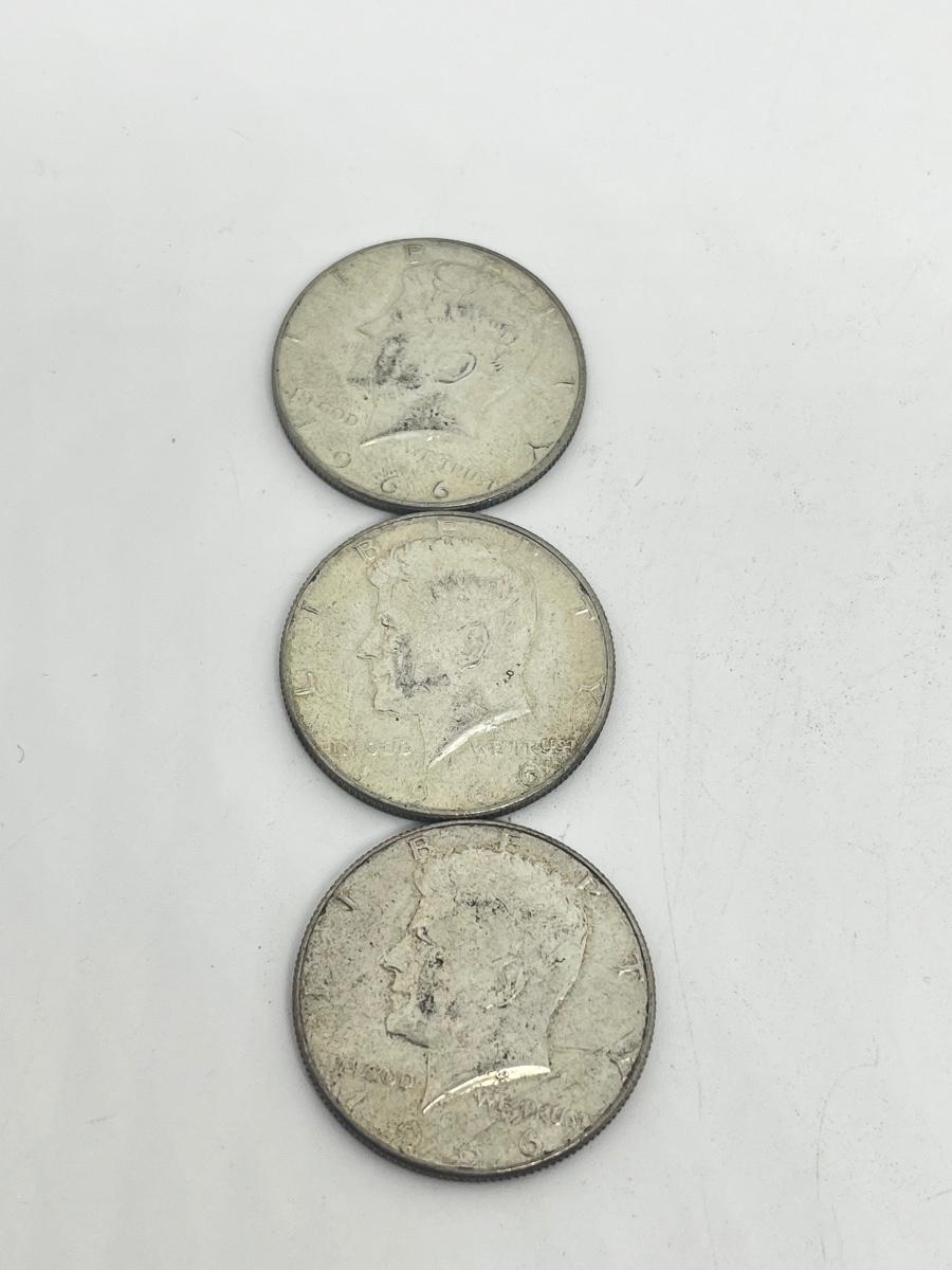 LOT 237J: Three 1966 40% Silver Kennedy Half Dollars