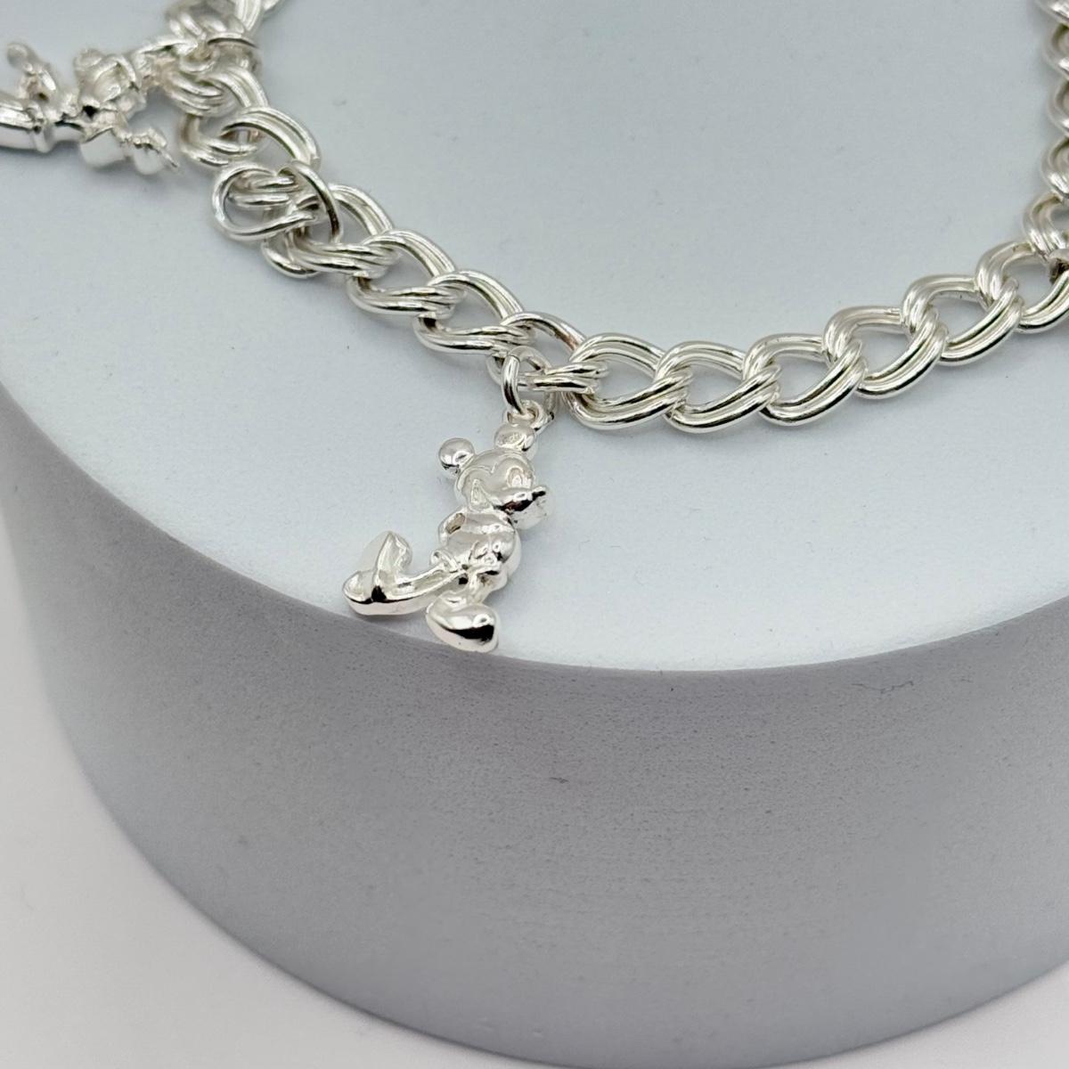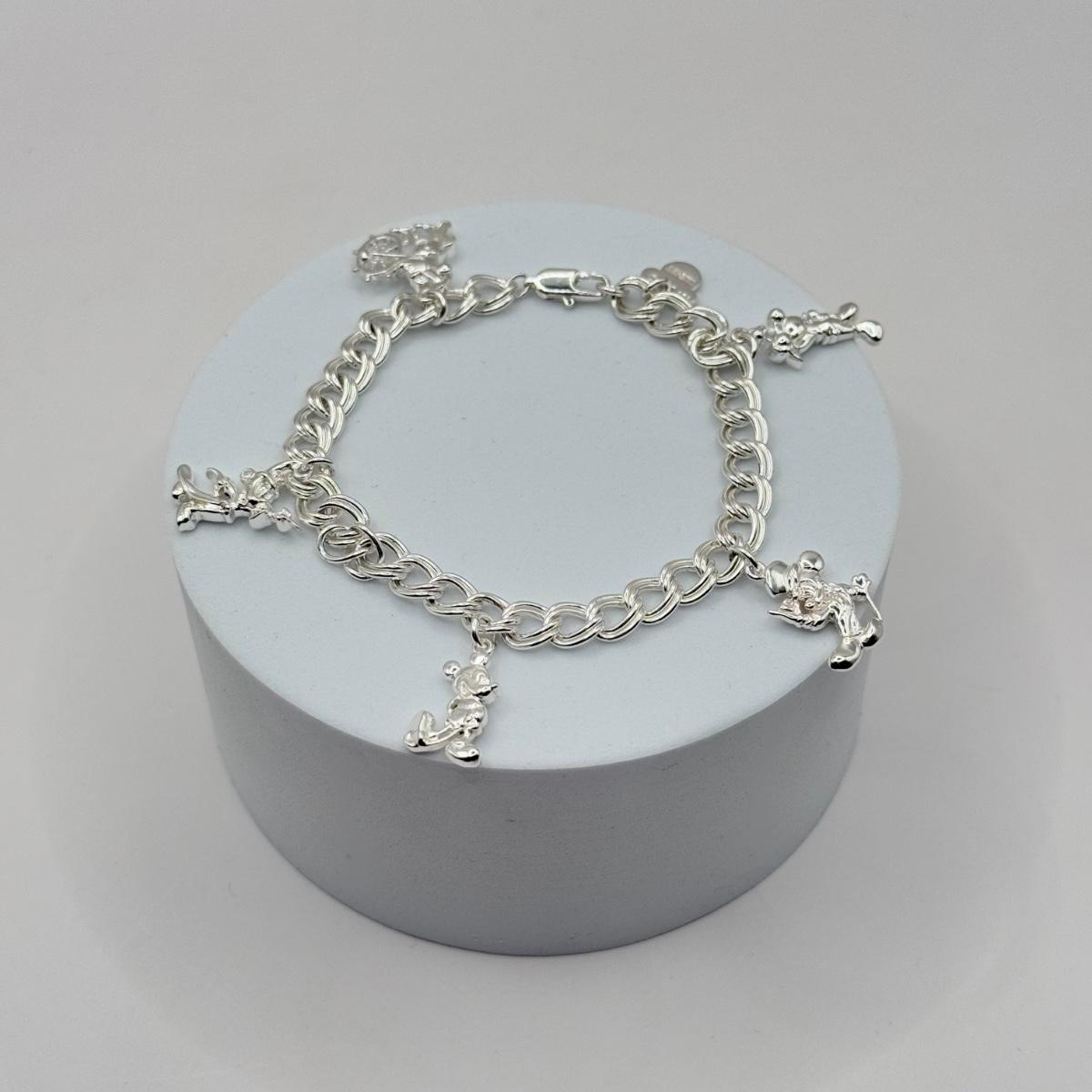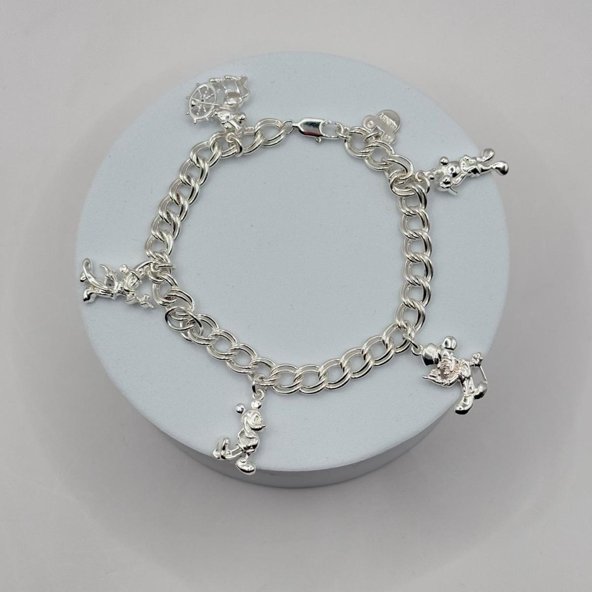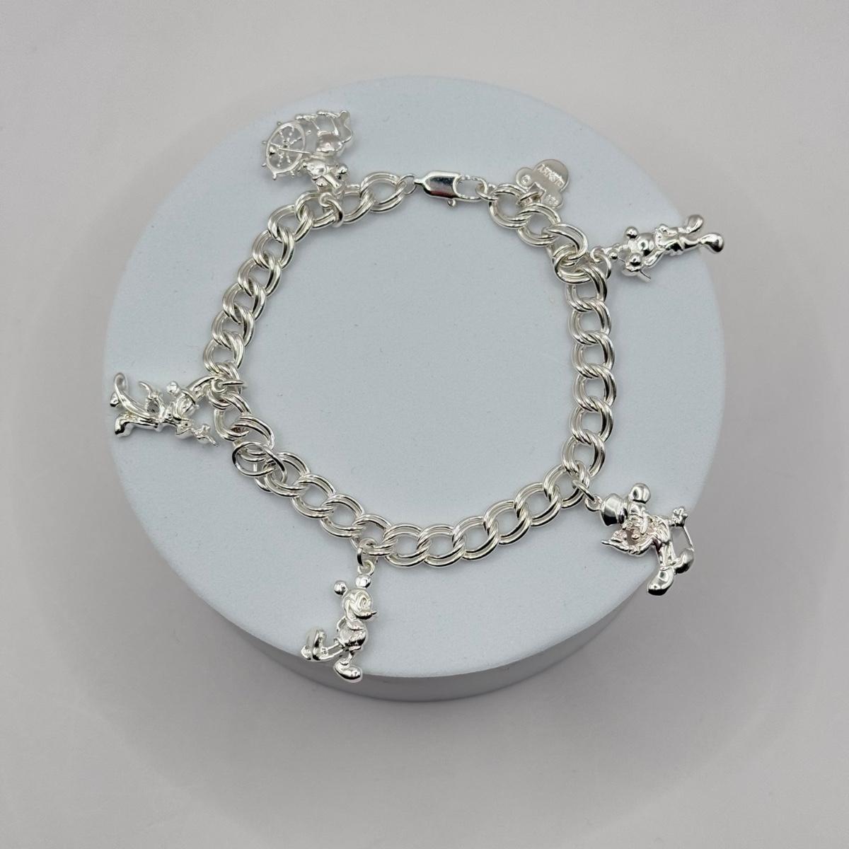 LOT 2J: Sterling Silver 925 Disney Mickey Mouse 7” Charm Bracelet (23.8g)