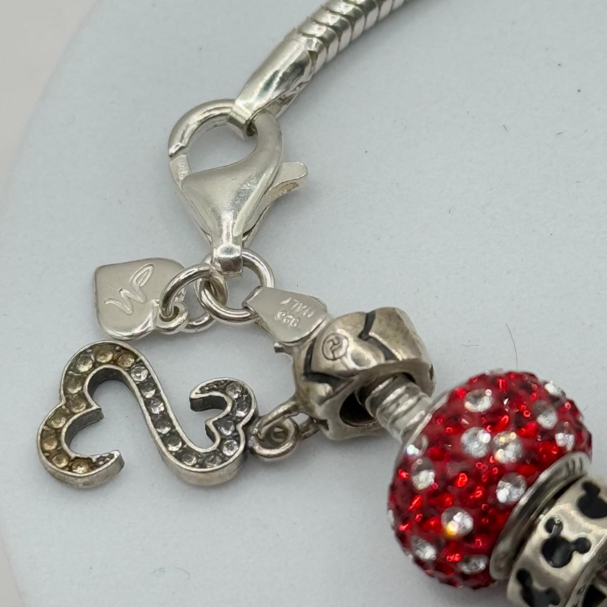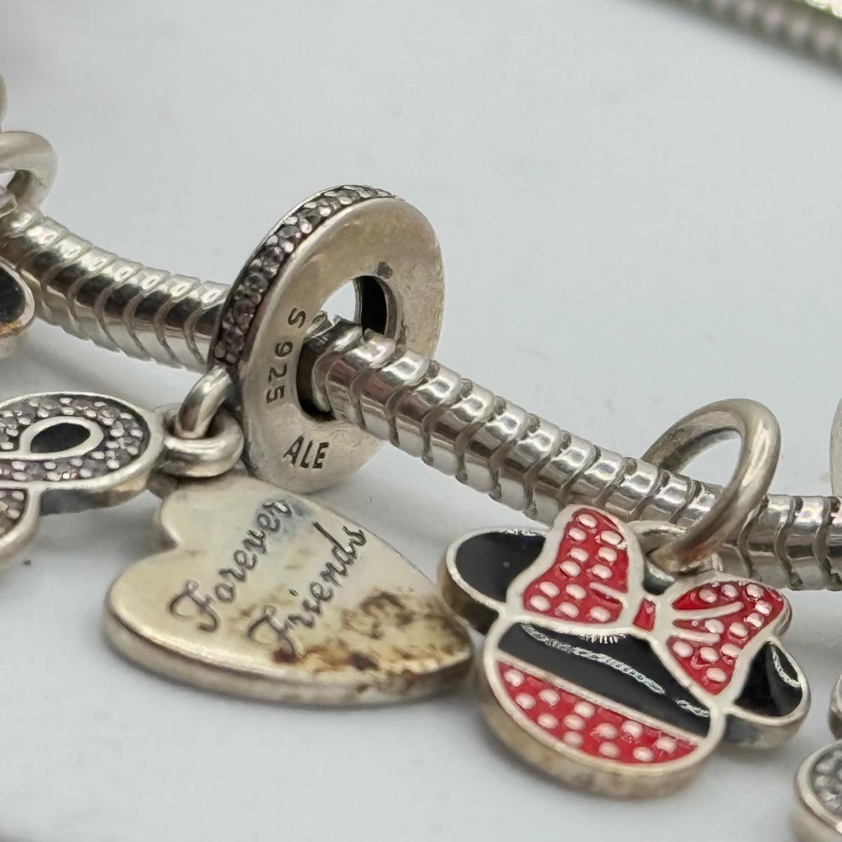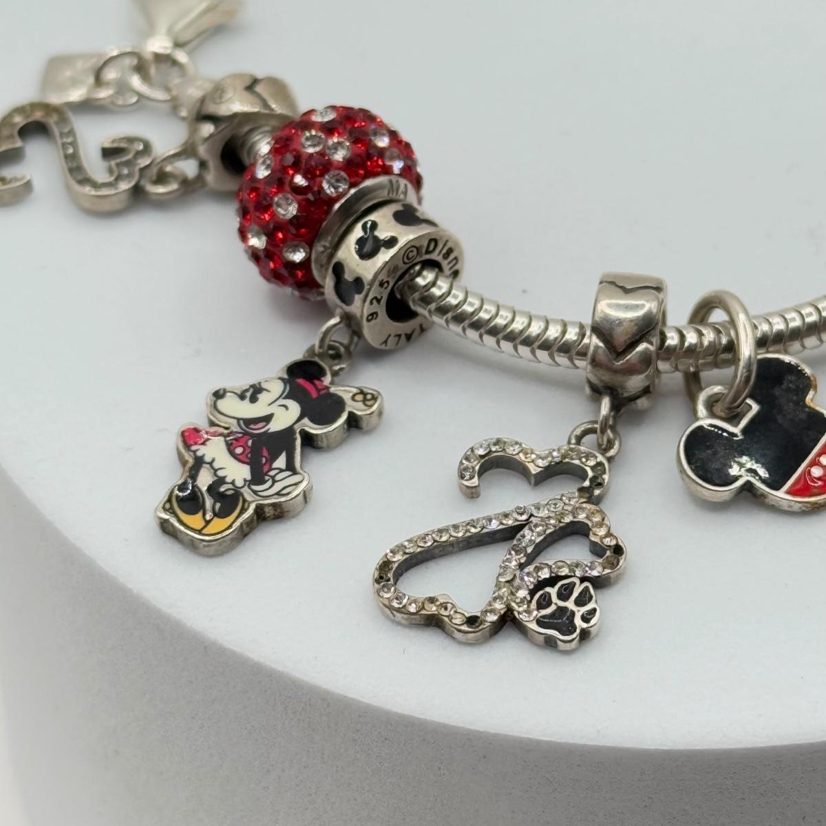 LOT 11J: 925 Sterling Silver Charm Bracelet w/ Disney Mickey & Minnie Charms (24.8g)