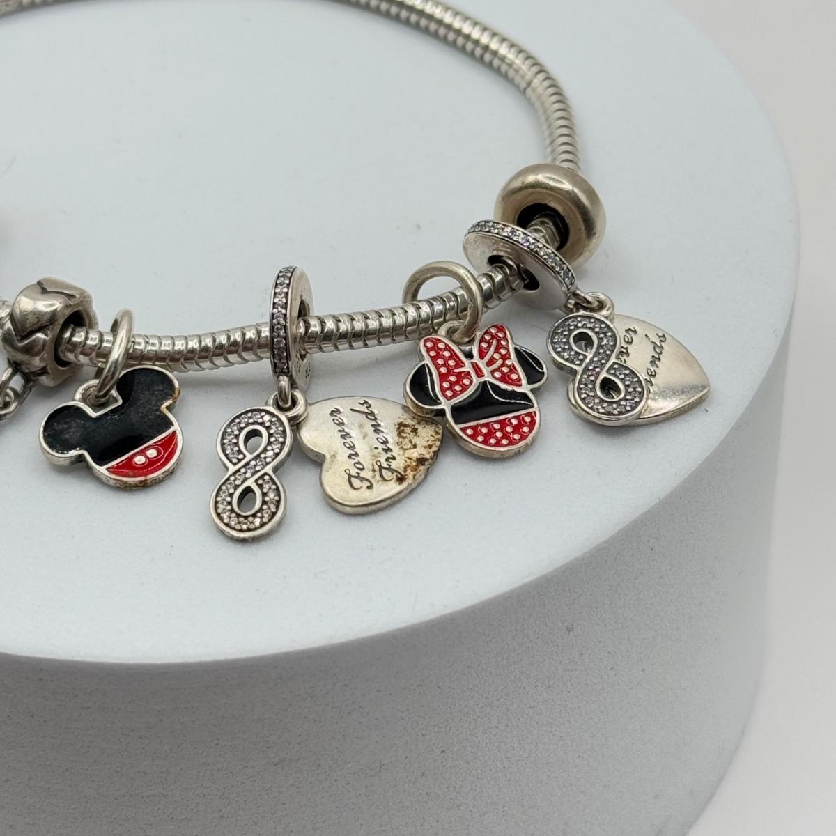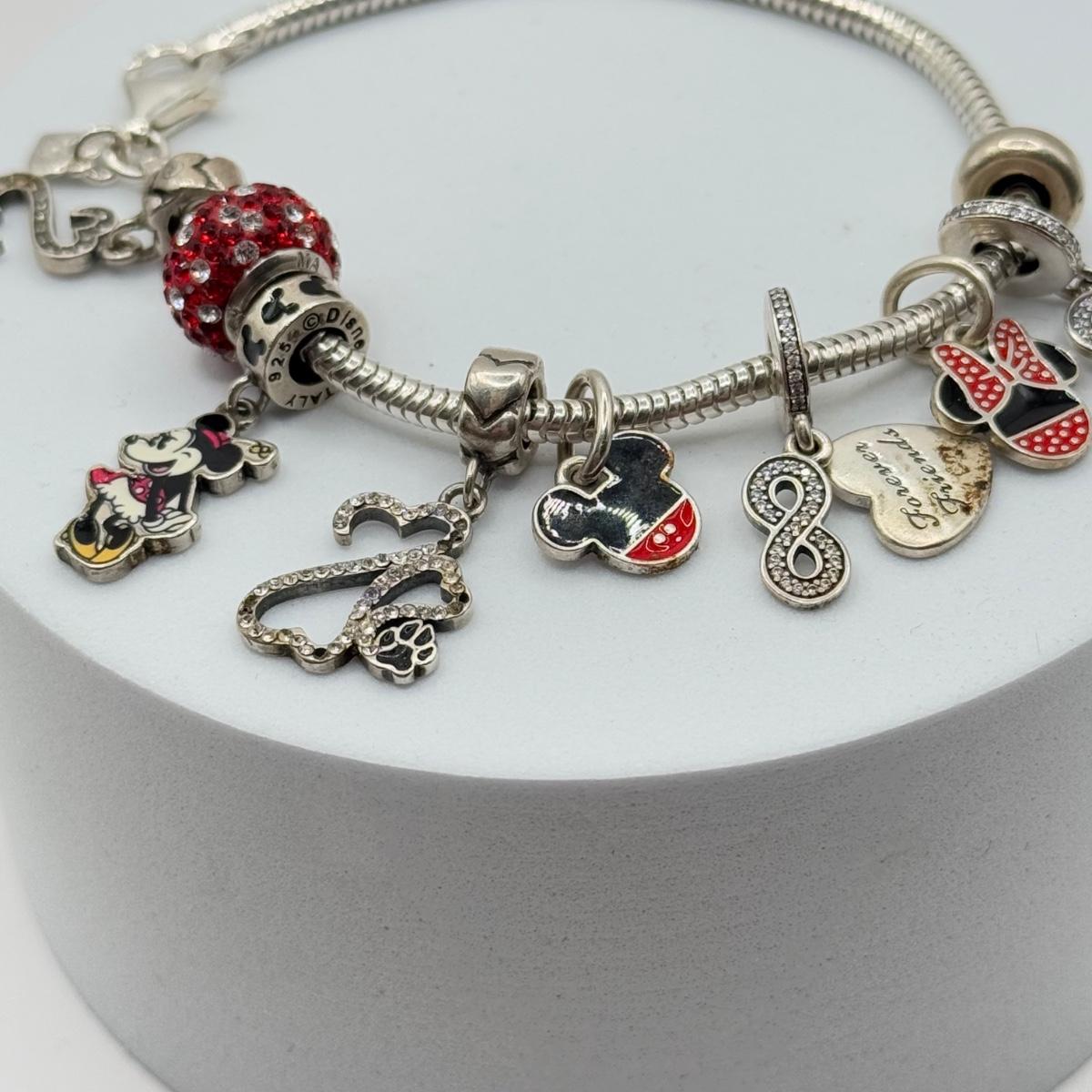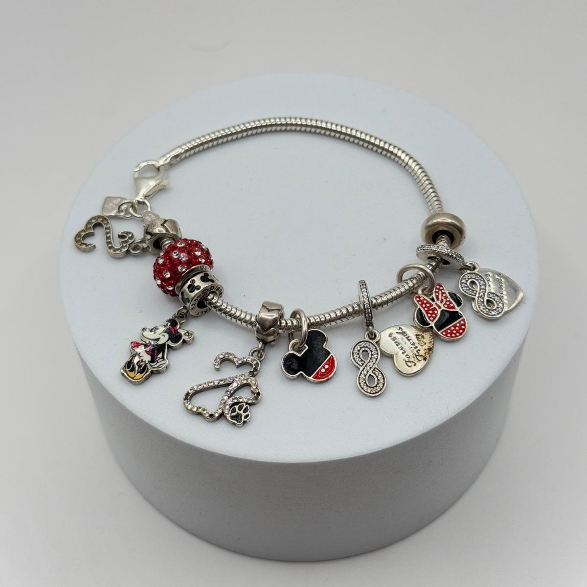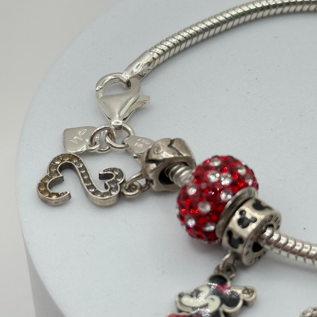 LOT 11J: 925 Sterling Silver Charm Bracelet w/ Disney Mickey & Minnie Charms (24.8g)