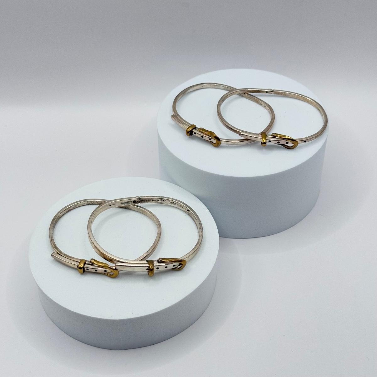 LOT 23J: 925 Taxco Mexico Sterling Silver Hinged Belt Buckle Bracelets (56.4g)