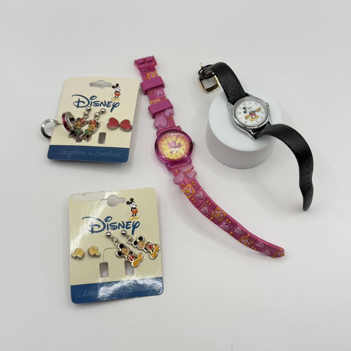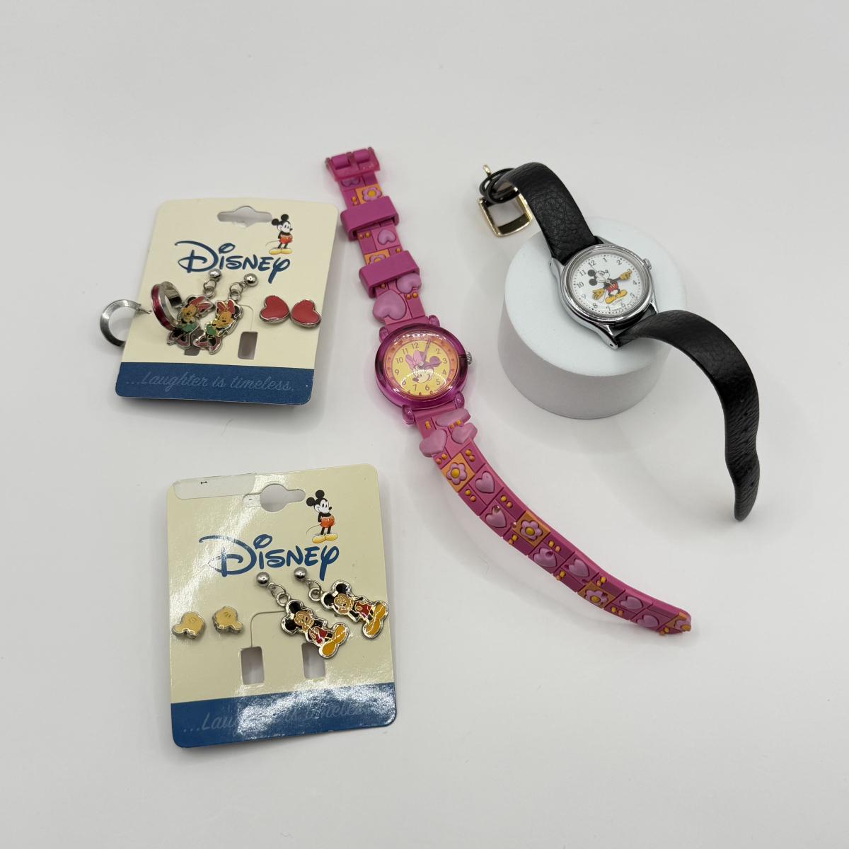 LOT 25J: Disney Jewelry - Vintage Mickey Mouse Watch, Kids’ Minnie Watch & Earrings