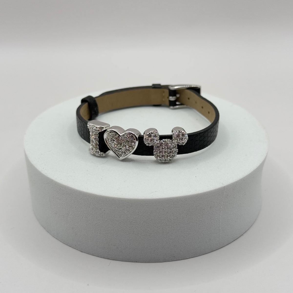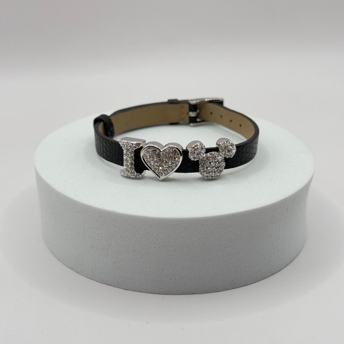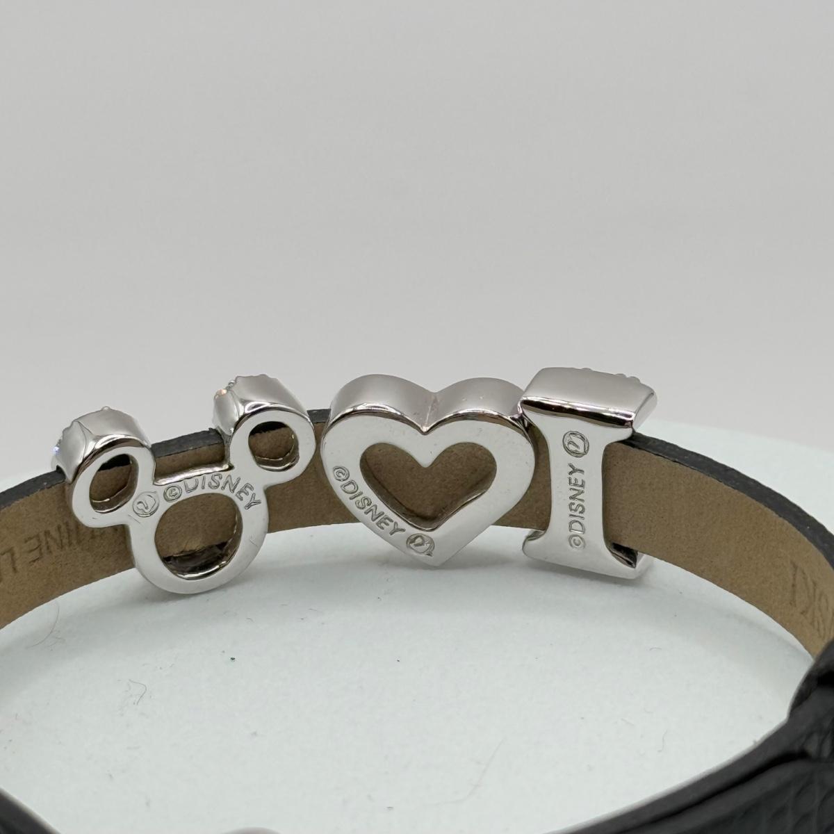 LOT 26J: Disney Swarovski Crystal I Heart Mickey Mouse Leather Bracelet