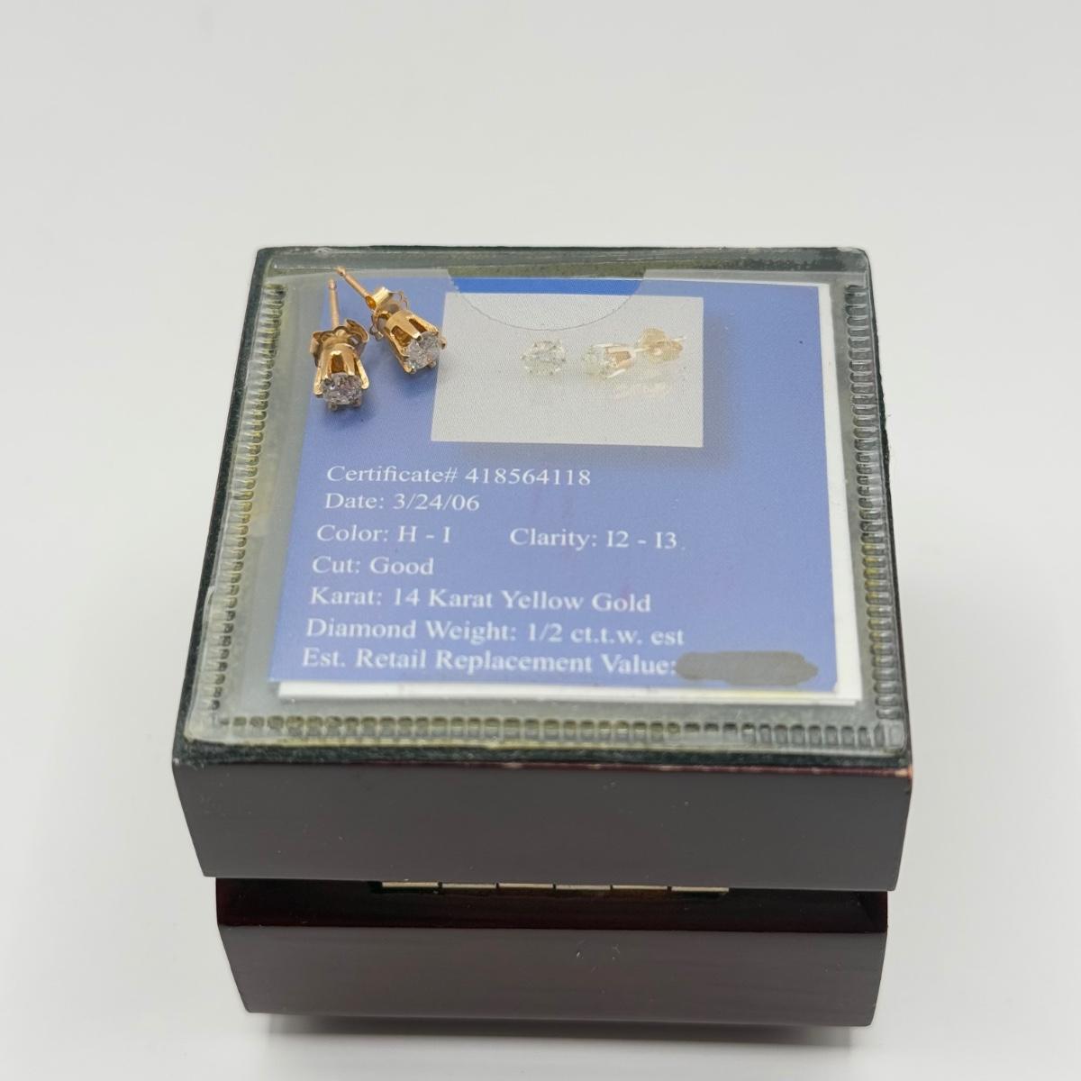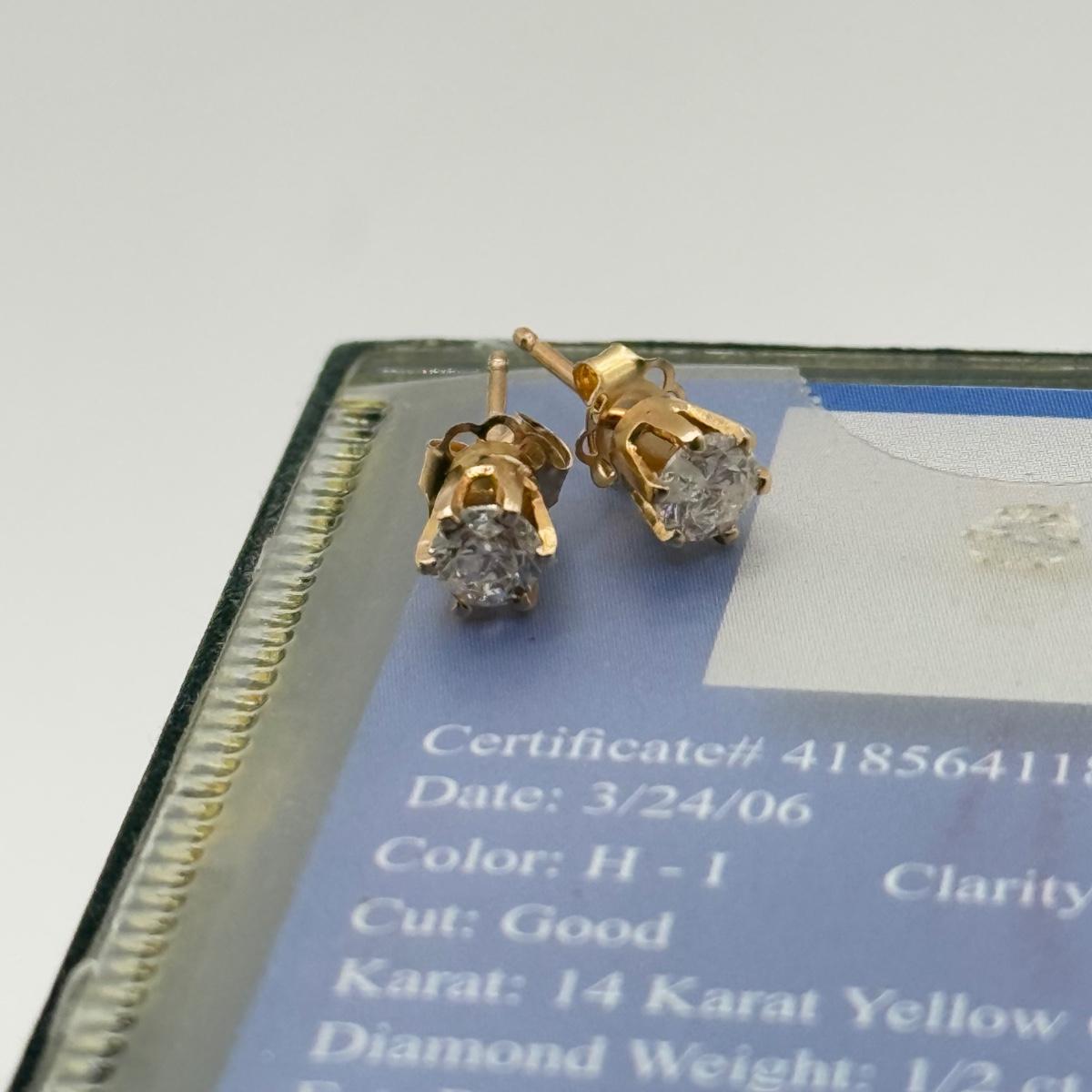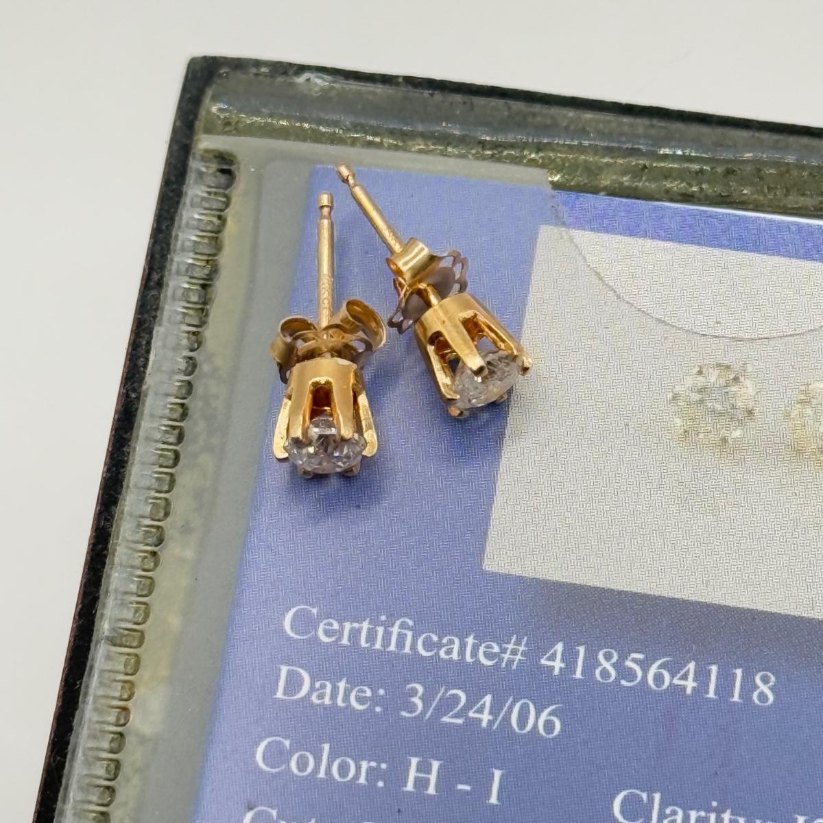 LOT 29J: RGI Select 1/2ct tw Diamond 14k Yellow Gold Stud Earrings w/ Certificate (0.7g)