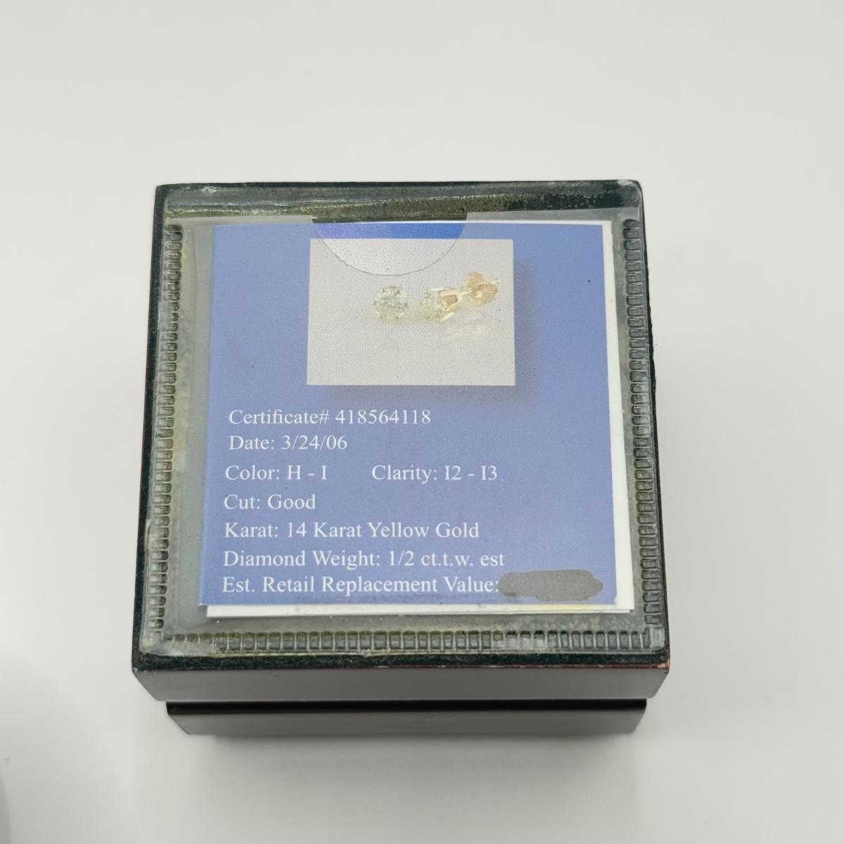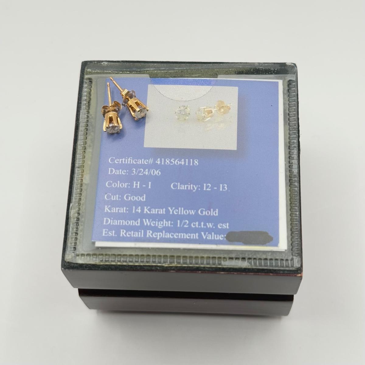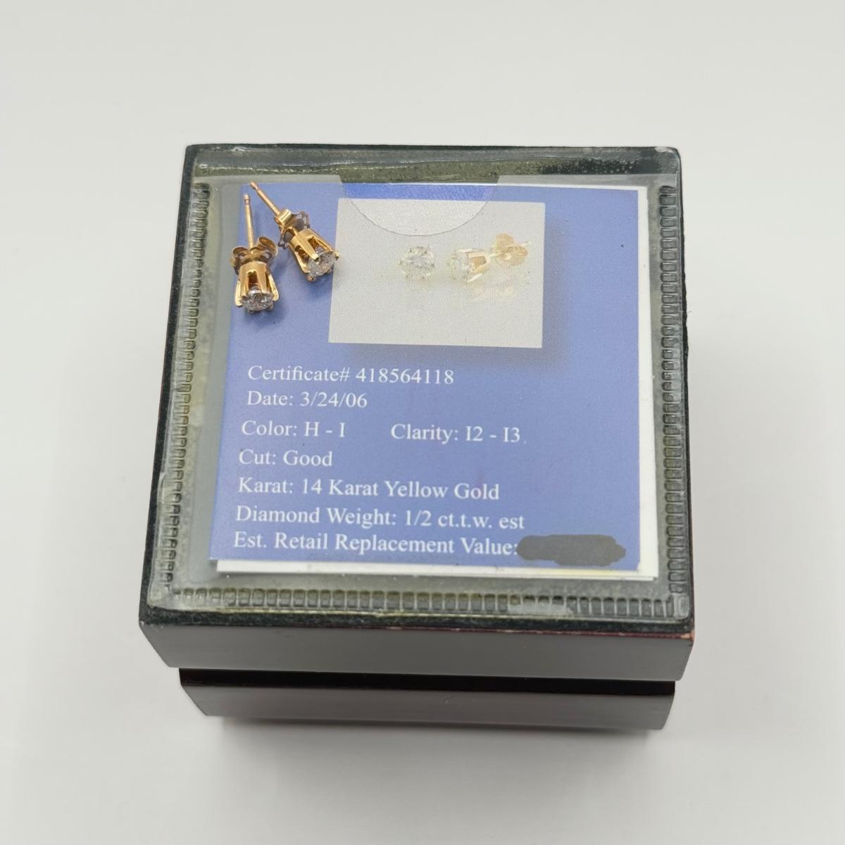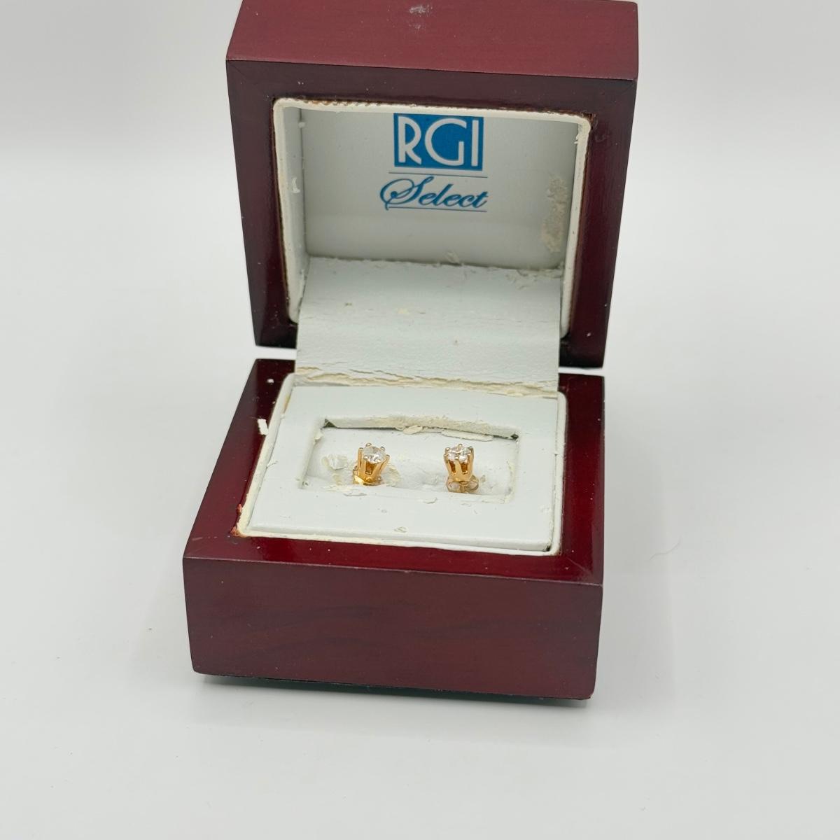 LOT 29J: RGI Select 1/2ct tw Diamond 14k Yellow Gold Stud Earrings w/ Certificate (0.7g)