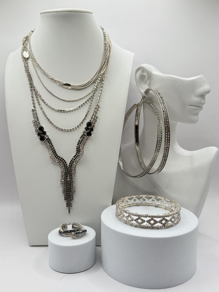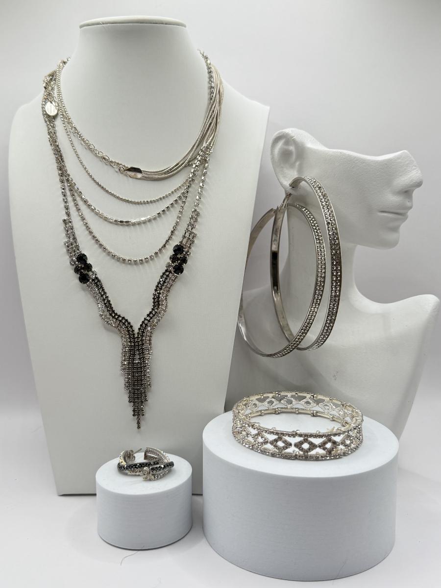 LOT 38J: Rhinestone Jewelry Collection - Large Hoop Earrings, Necklaces & More